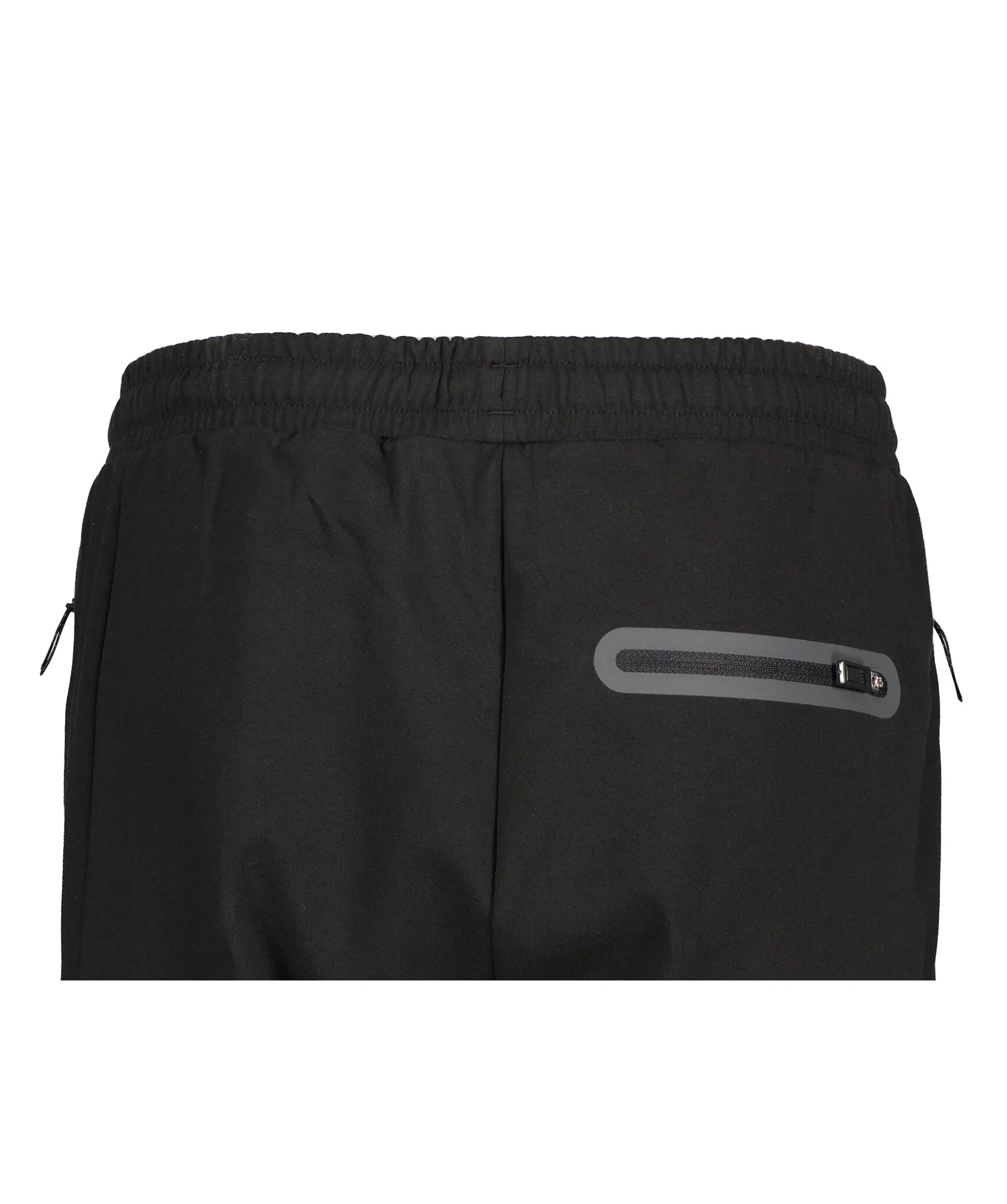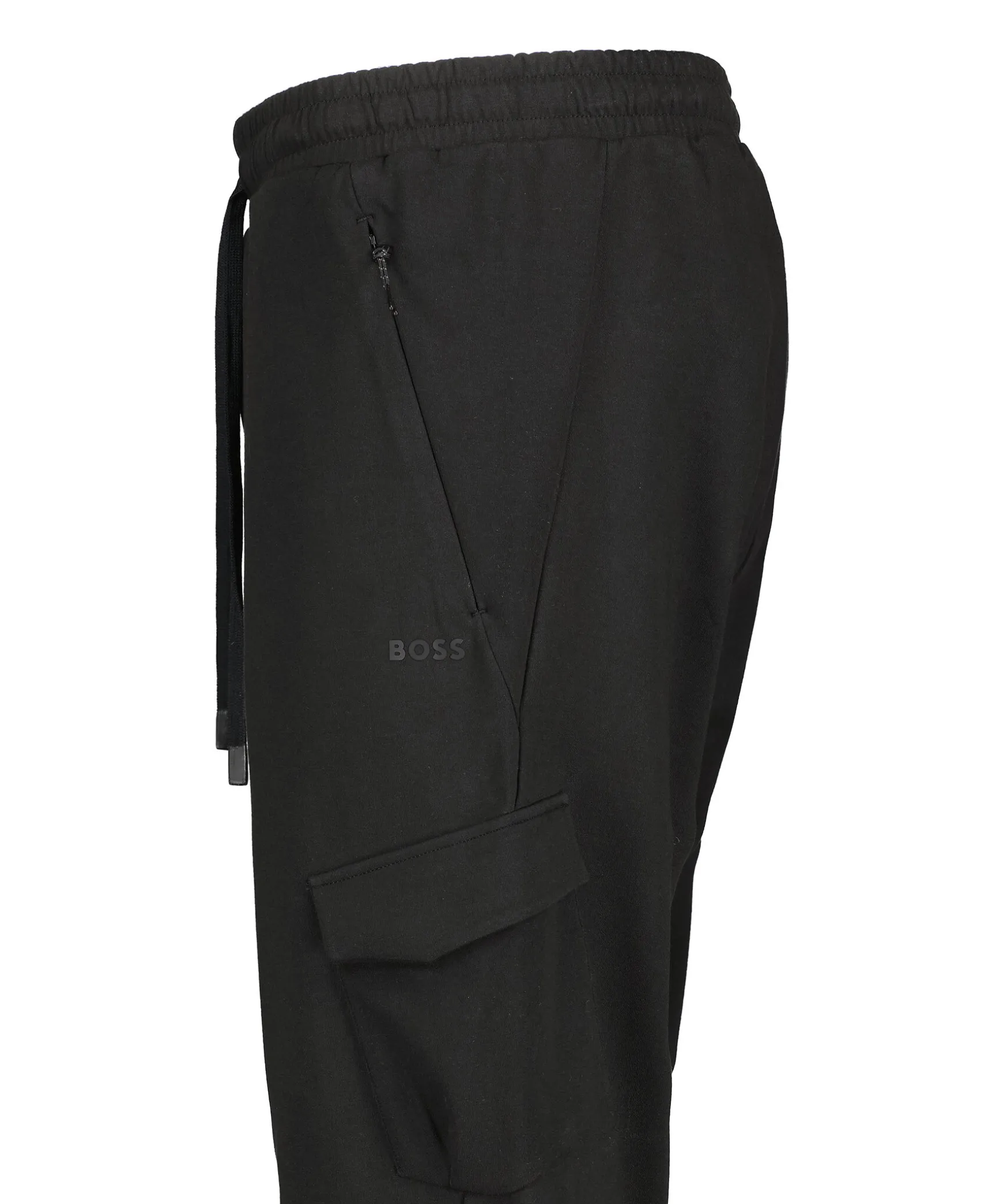 Svarta Mjukisbyxor Fran Boss Green. Resar Och Dragsko I Midjan. Tva Fickor Framtill Som Stangs Med Dragkedja. Gummerad Logotyp Pa Vanster Lar. Ficka Med Lock Pa Vanster Ben. Bakficka Pa Hogersida Som Stangs Med Dragkedja.