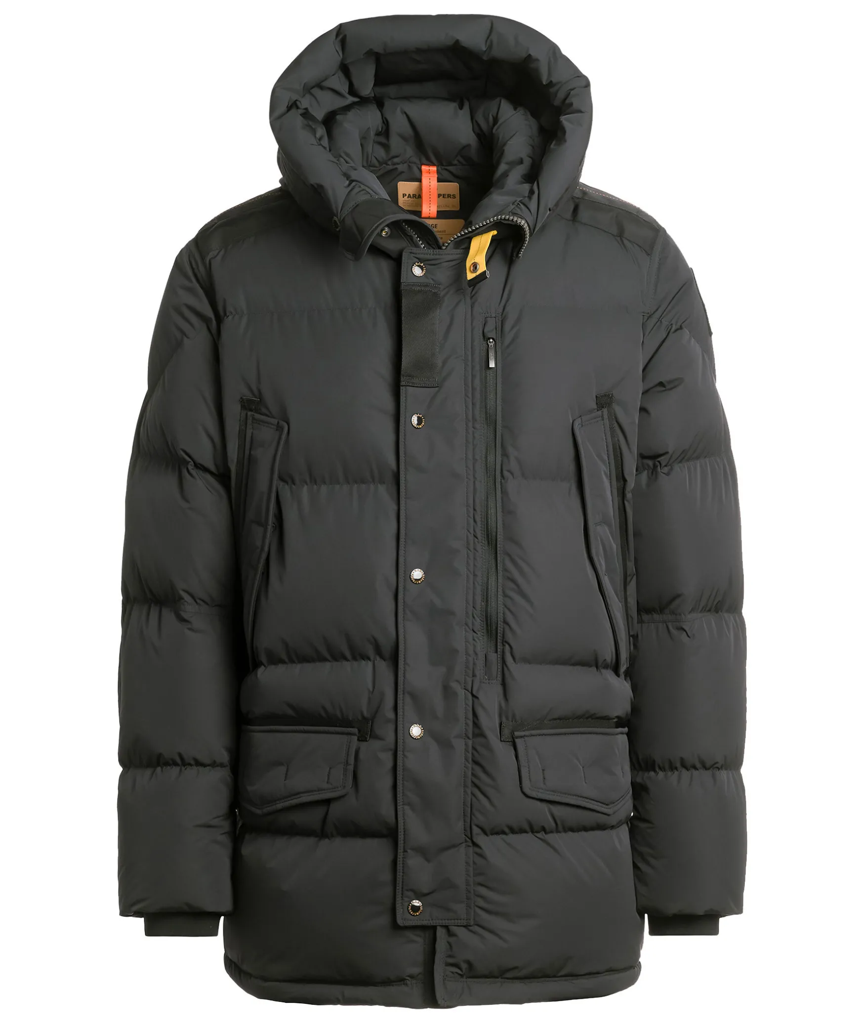 Svart Jacka Med Huva Fran Parajumpers. Den Ar Sa Mjuk Och Varm Och Ger Dig Tackeskansla Hela Dagen Lang. Harraseeket Ar En Vadderad Jacka Med En Oversize Passform Och En Urban Kant. Tva Brostfickor Med Knapp Samt En Brostficka Med Dragkedja. Tva Fickor Nedtill Pa Jackan Som Stangs Med Knapp. Kort Dragkedja Pa Sidan Av Jackan. Jackan Stangs Med Tvavagsdragkedja. Tillverkad I Polyester Och Polyamide.