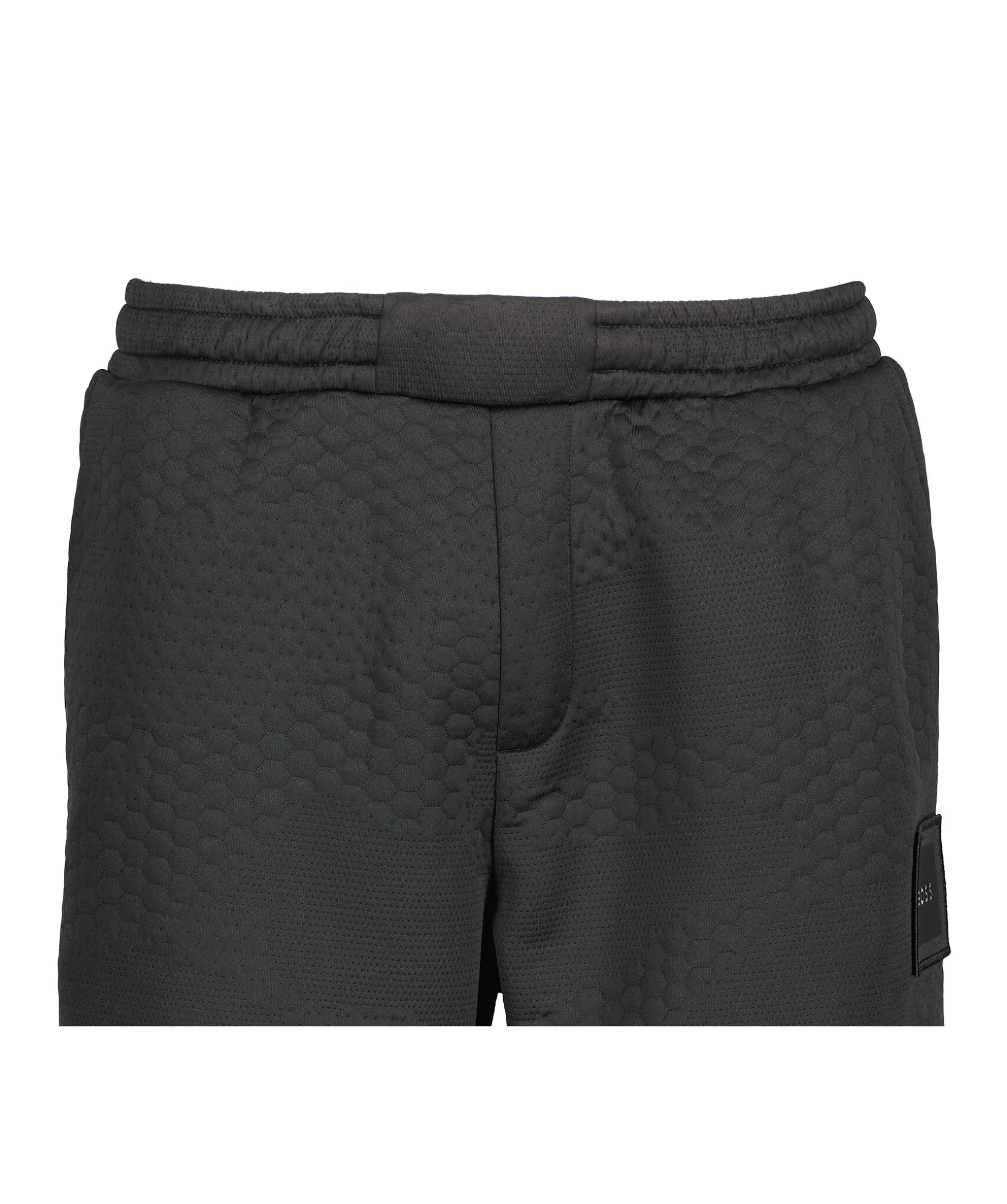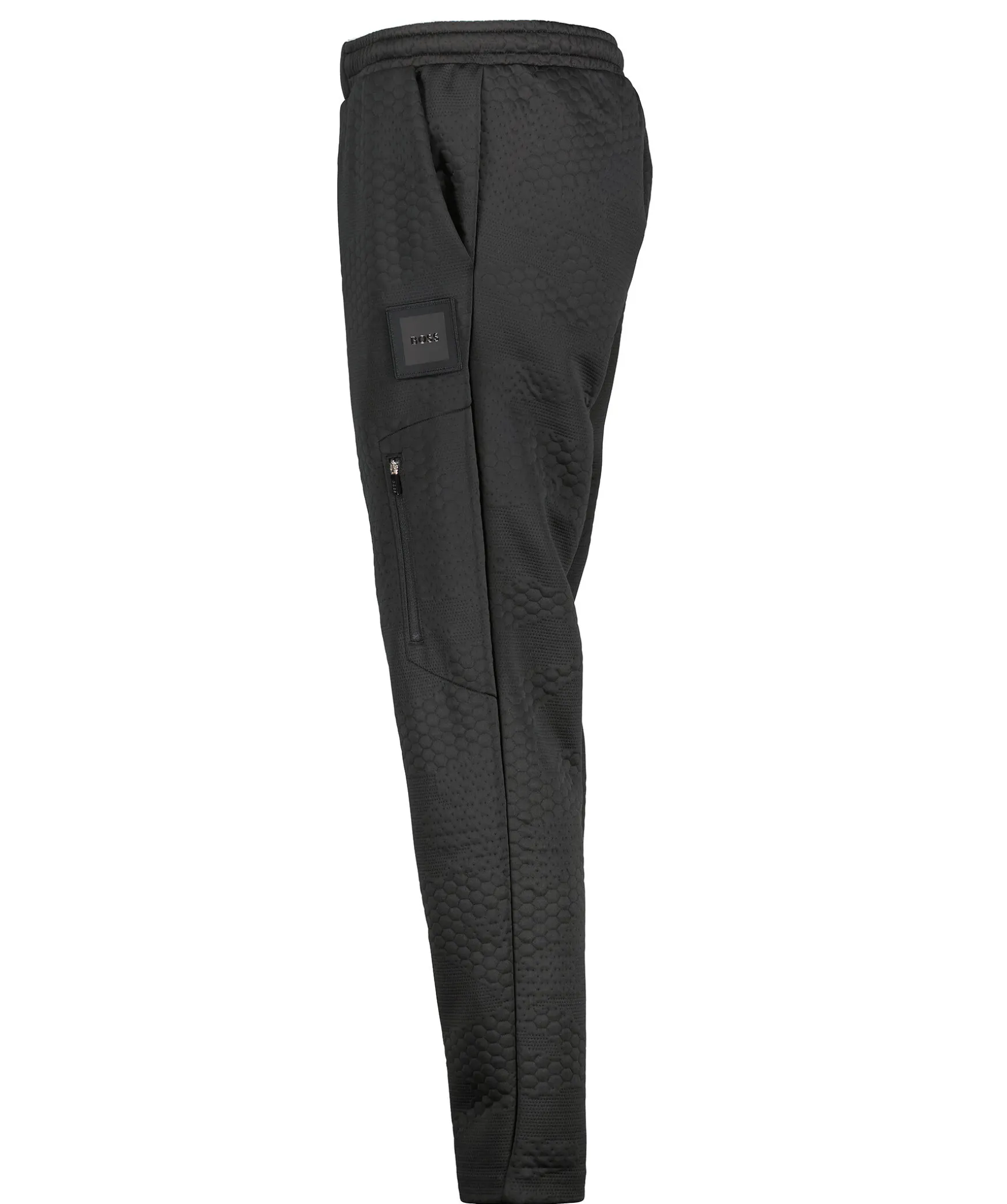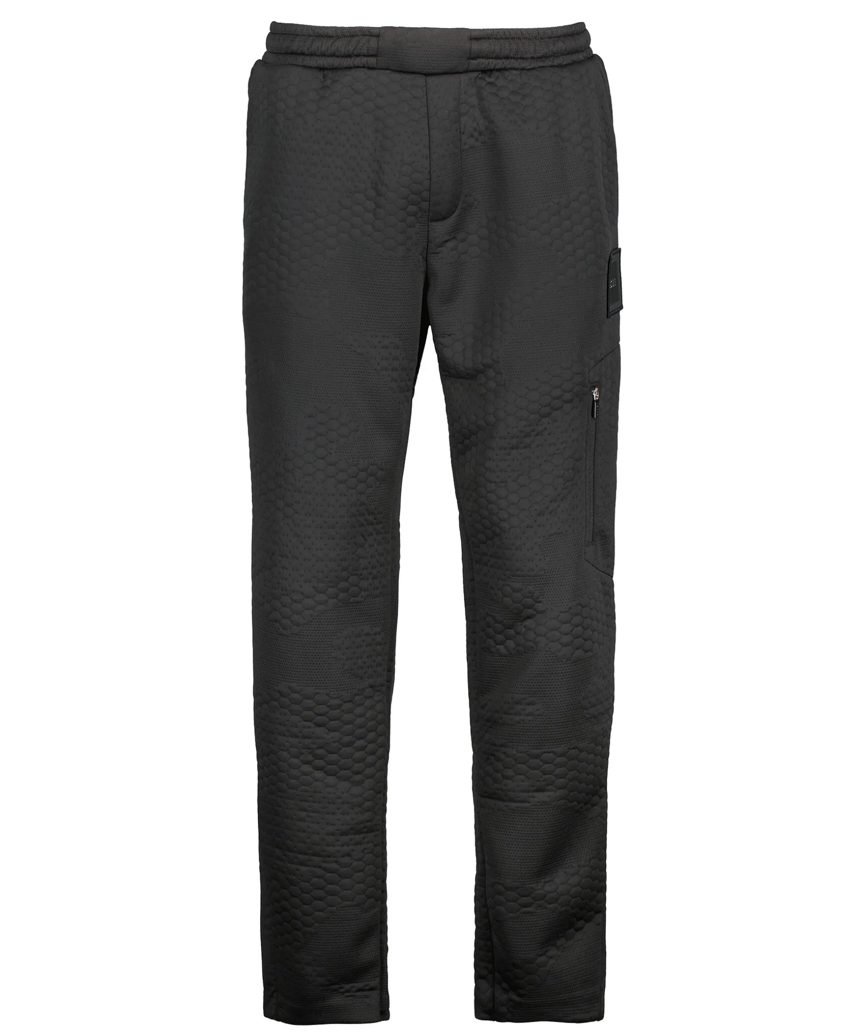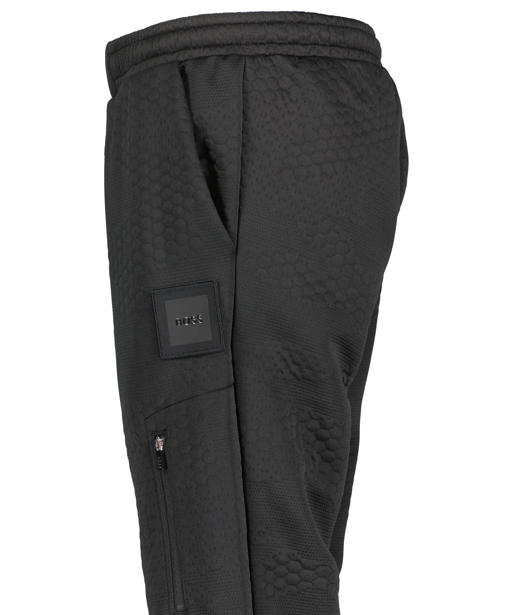 Strukturerade Svarta Mjukisbyxor Fran Boss Green. Resar Och Dragsko I Midjan. Tva Fickor Framtill, En Ficka Pa Vanster Ben Som Stangs Med Dragkedja. Bakficka Pa Hogersida Som Stangs Med Dragkedja. Patch Med Gummerad Logotyp Pa Vanster Ben.