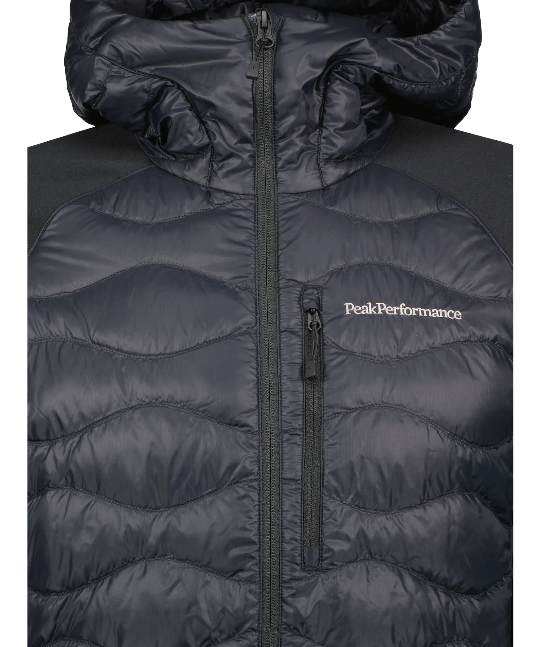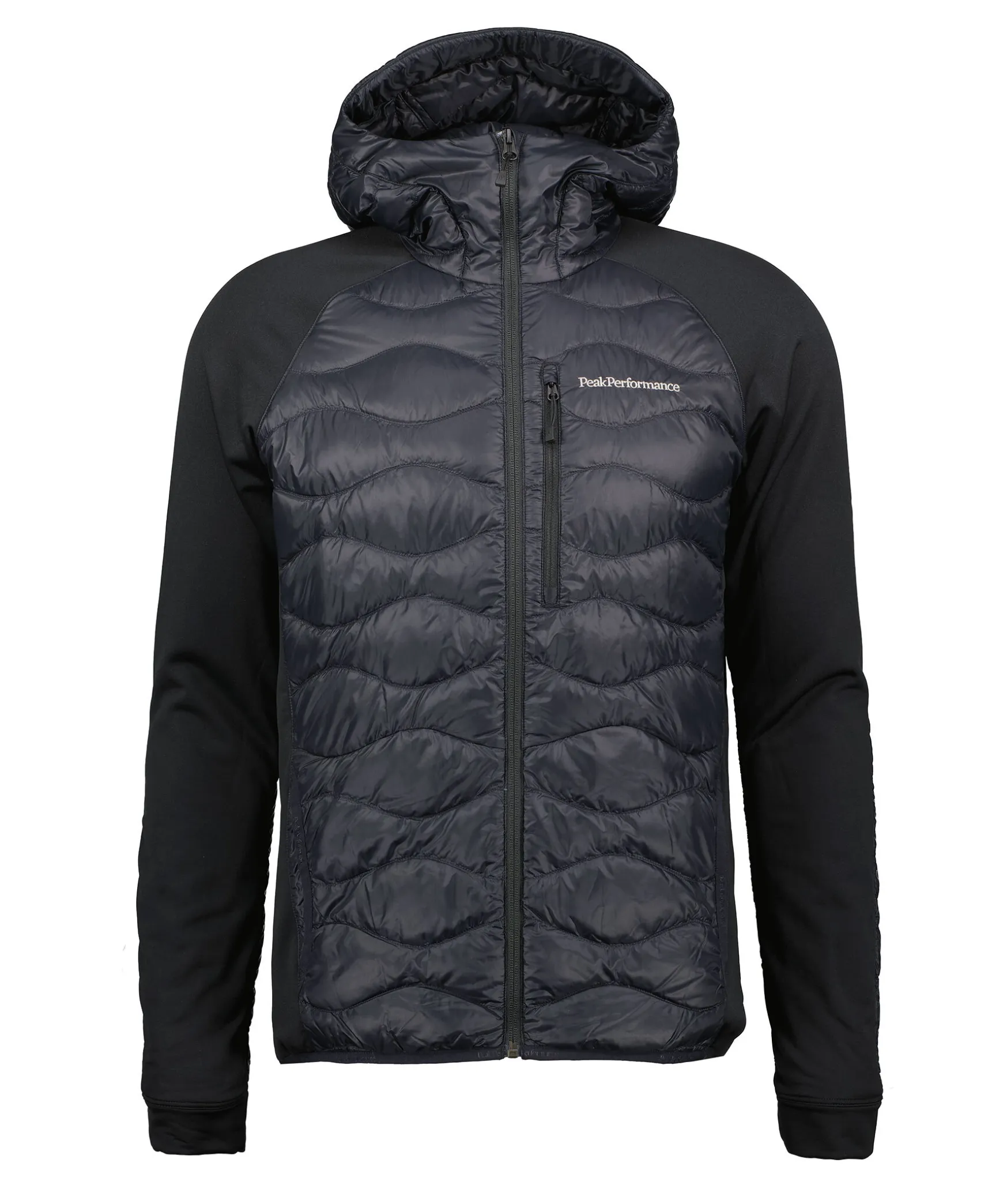 Svart Hybridjacka Fran Peak Performance. Stretchiga Jersey-Paneler Pa Sidorna Och Armarna Gor Den Har Hybridjackan Fran Deras Valkanda Helium-Serie Till Ett Annu Bekvamare Lager. Den Har Jackan Ar Latt Och Packningsbar Och Har Ett Vind- Och Vattenavvisande Skal, Samt Forstklassig 90/10-Dunvaddering, Som Gor Den Perfekt For Friluftsaktiviteter. Tillverkad Med Ansvarsfullt Producerat Dun Som Kan Sparas Via Programmet Track My Down®. Jackan Har Justerbar Huva, Brostficka Med Dragkedja, Oppna Sidfickor Samt Peak Performance-Brodyr Pa Brostet.