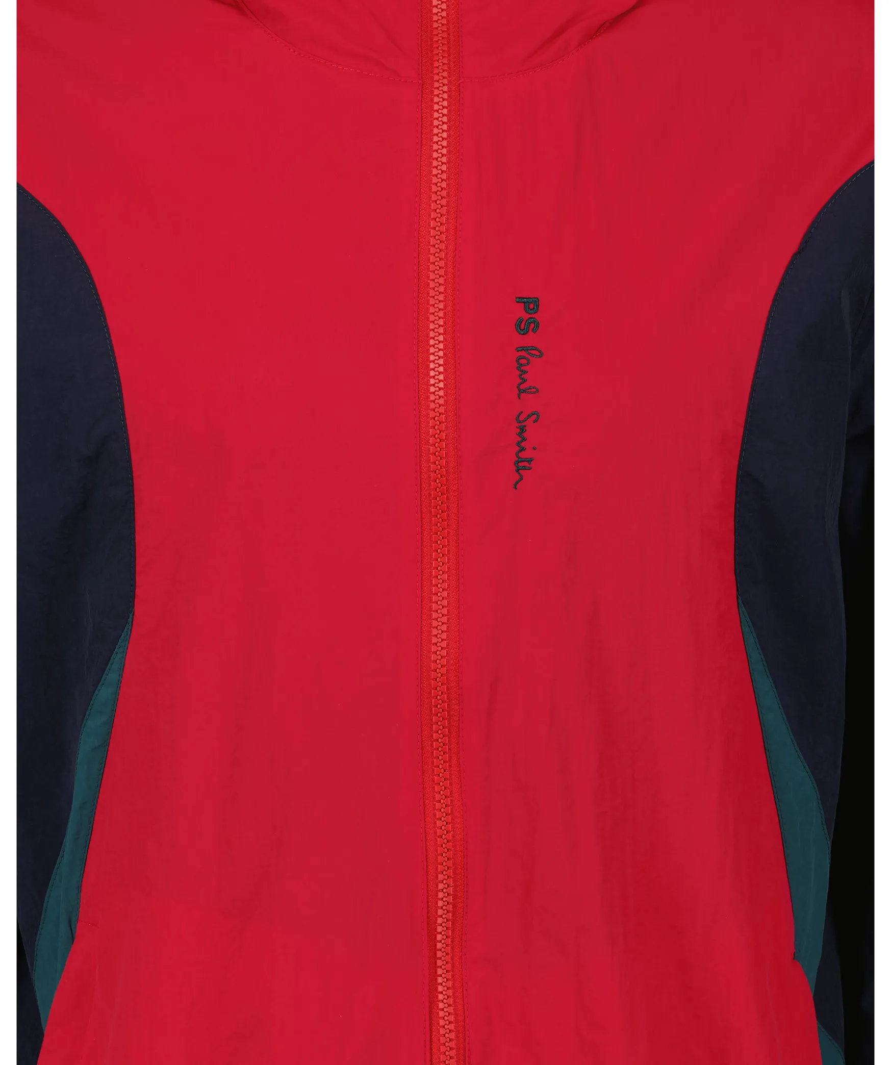 Rod, Beige Och Morkbla Jacka Fran Ps Paul Smith. Stangs Framtill Med Dragkedja. Broderad Logotyp Pa Vanster Brost. Tva Fickor Framtill Som Stangs Med Dragkedja. Justerbart Armslut Med Kardborre. Luva Med Resar.