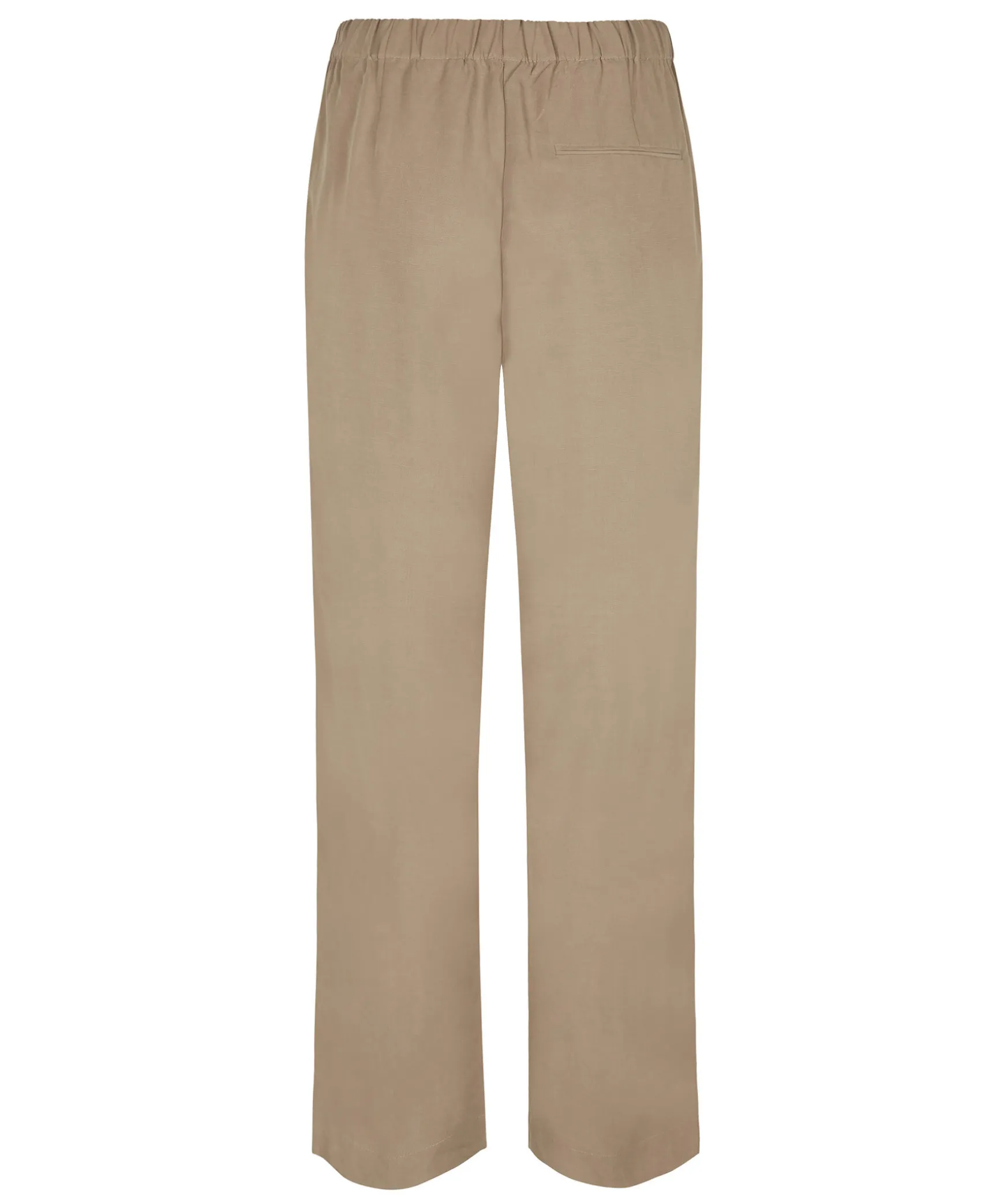 Beigea Kostymbyxor Med Raka Ben Med Normal Passform Fran Samsoe Samsoe. Resar I Midjan, Sidosomsfickor Och Falsk Gylf. Tillverkade I Tencel™ Lyocell- Och Linneblandningstyg. Innerbenslangd I Storlek Small Ar 83 Cm.