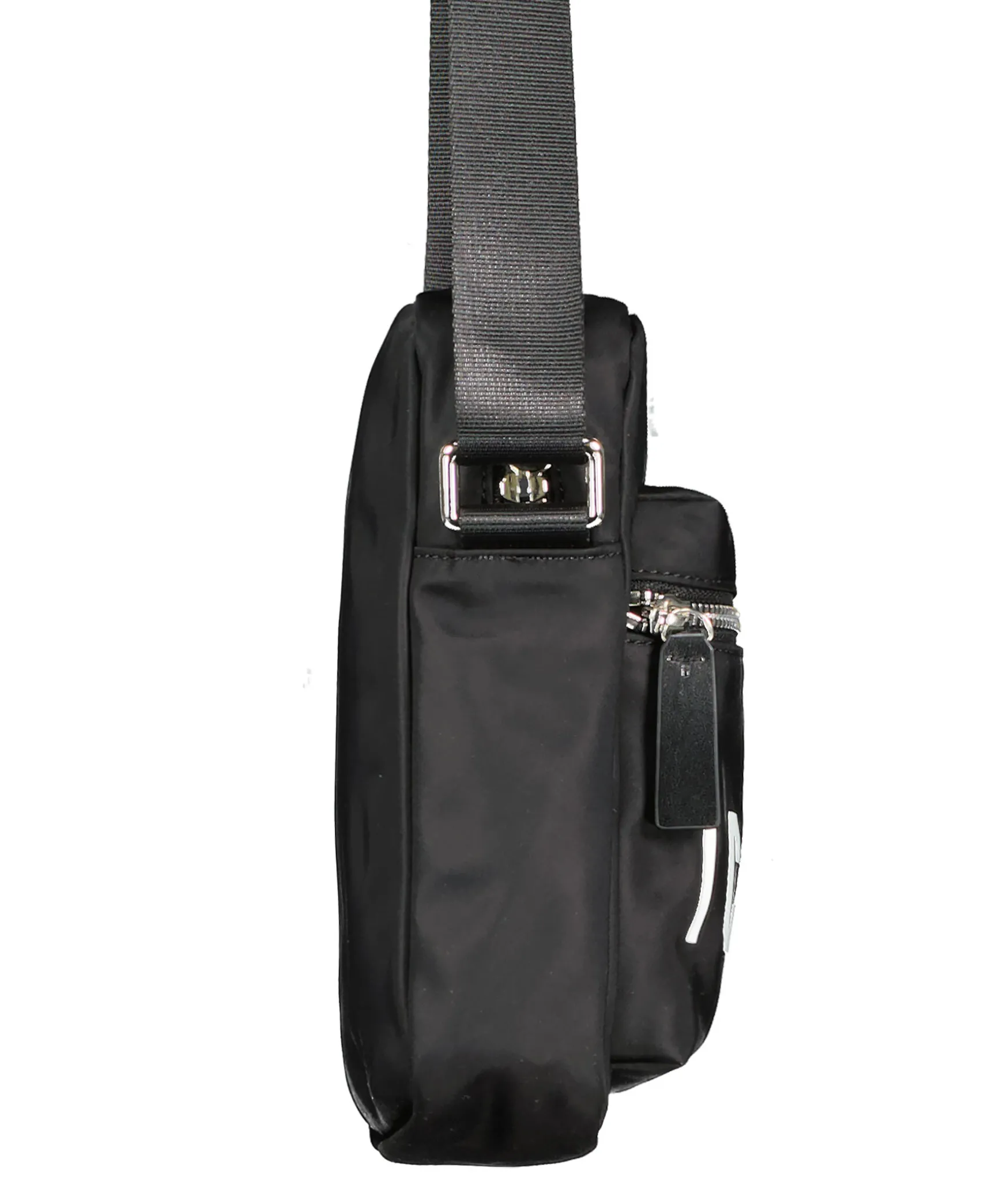 Svart Crossbody Bag Fran Dsquared2. Vit Logga Fram, Fack Med Dragkedjor. Reglerbart Spanne, Tillverkad I Textil Och Har Detaljer I Lader. Djup 5 Cm, Hojd 20 Cm, Bredd 15 Cm.