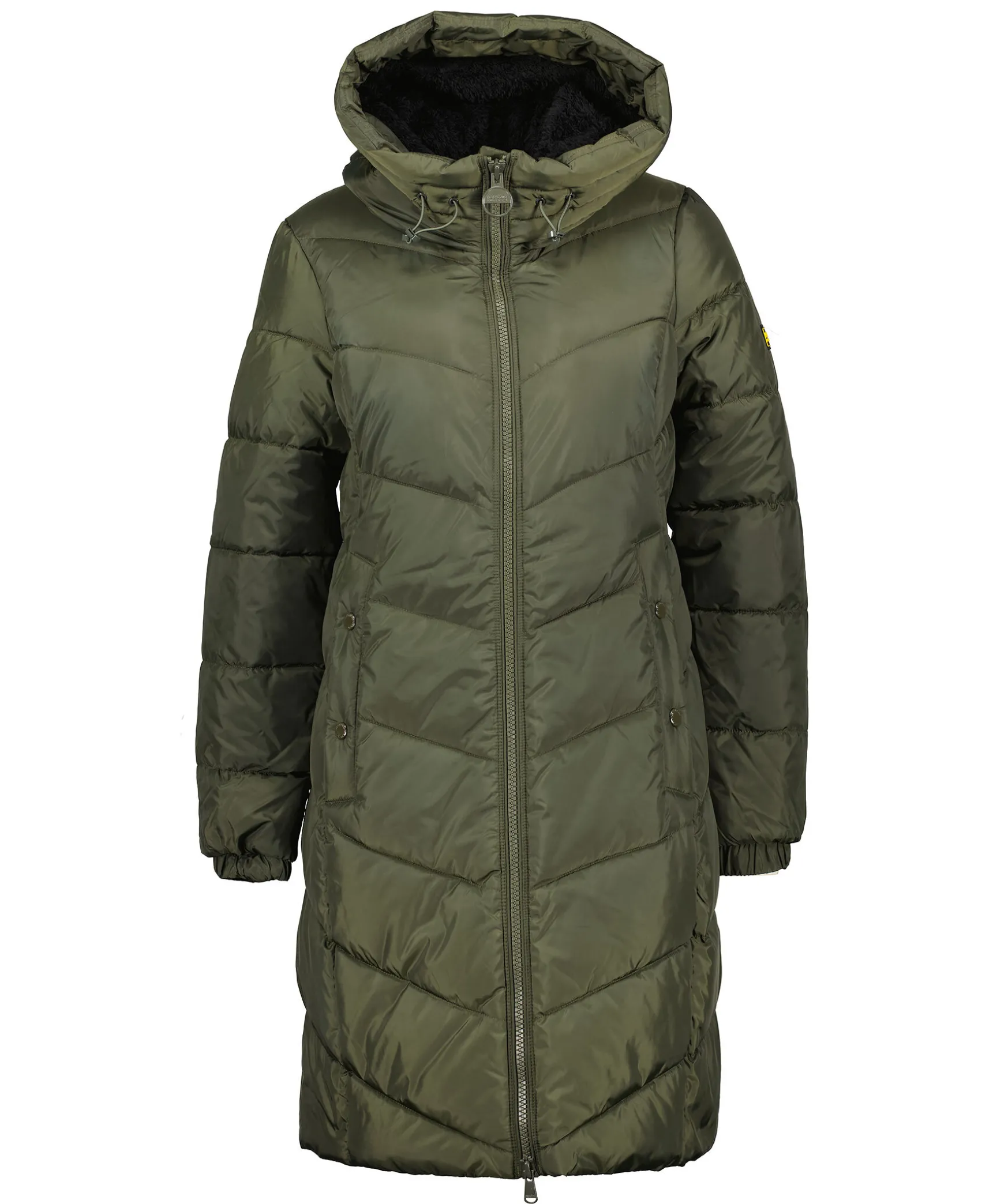Olivgron, Lang Quiltad Jacka Fran Barbour International. Tillverkad I 100% Polyester. Jackan Har Huva Med Dragsko Och Fuskpals Pa Insidan. Tva Snedstallda Sidfickor Som Stangs Med Knapp, En Innerficka Som Stangs Med Dragkedja. Dragsko I Midjan For En Mer Fitted Passform. Jackan Stangs Med Dragkedja.
