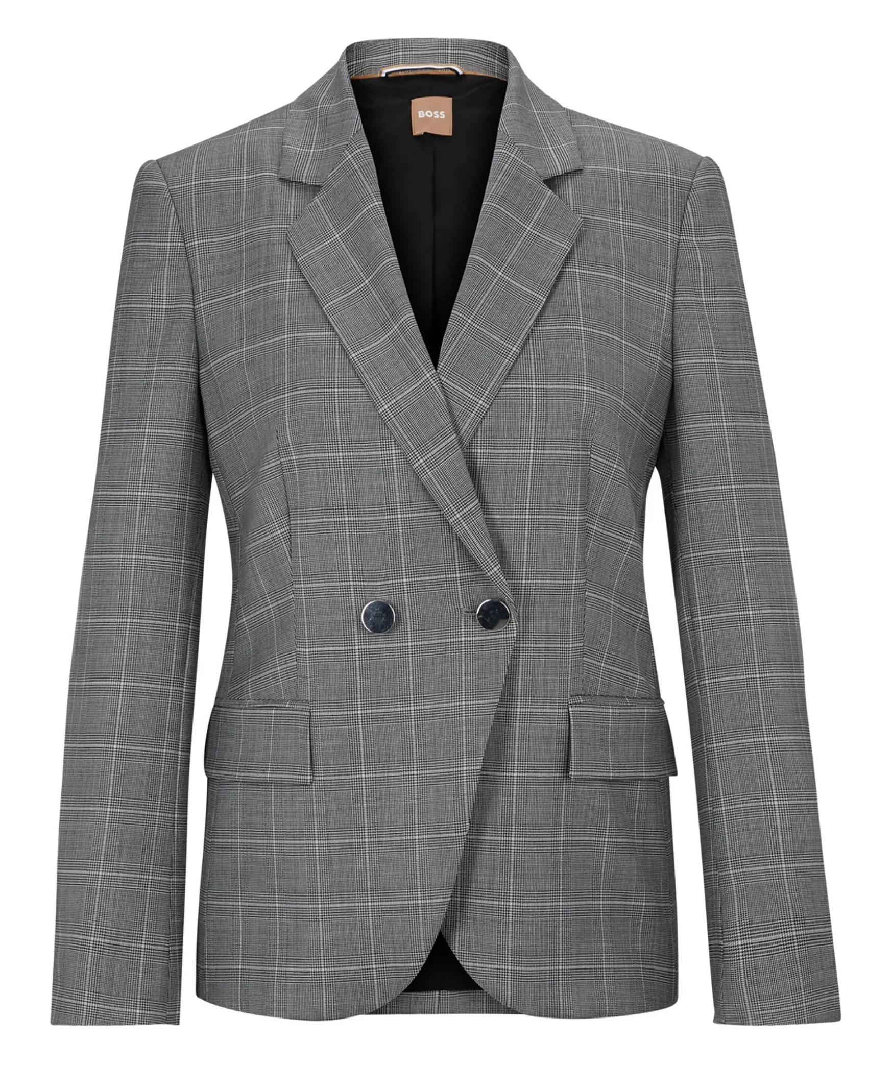 Gra Kostymjacka Med Normal Passform Fran Boss Black. Designad I Rutig Jungfruull Med En Dubbelknappt Stangning Med Hardvaruknappar. Tva Fickor Med Lock. Manschetter.