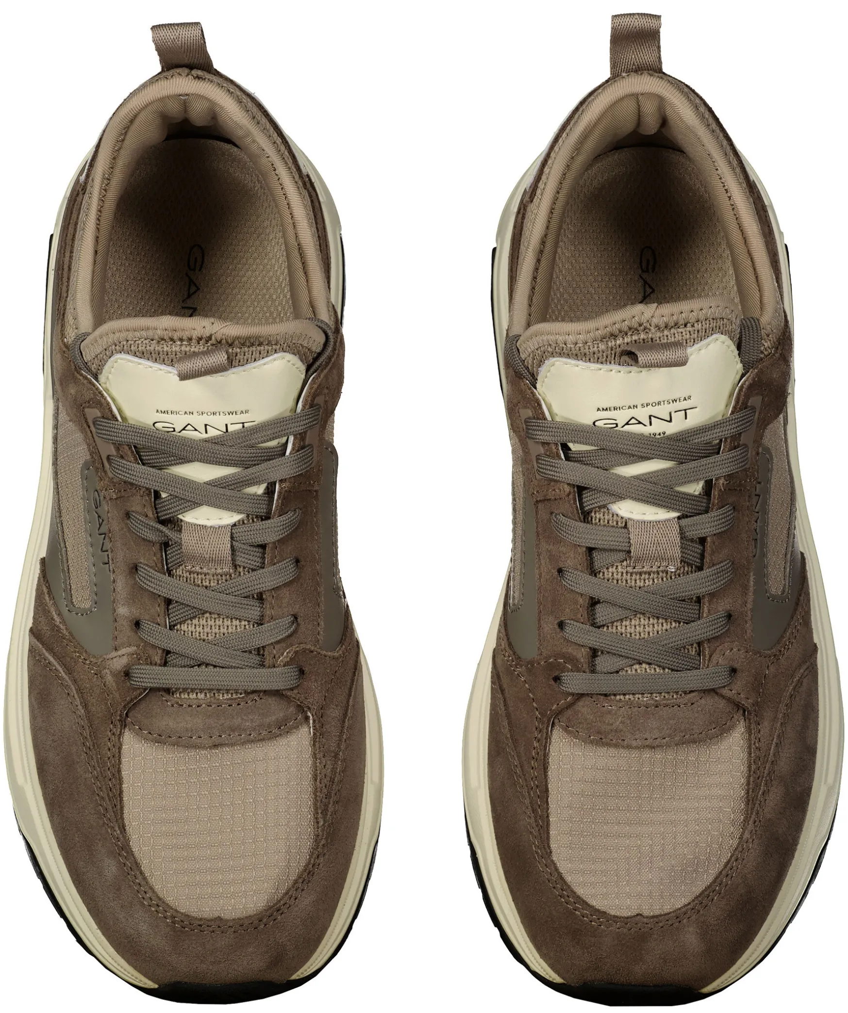 Beiga Och Bruna Sneakers Fran Gant Med Vintagestil. Logotyp Pa Plosen, Platta Skosnoren. Ogla I Halen Och Fram Pa Plosen For Enkel Patagning. Tillverkade I Lader Och Textil, Sula I Gummi.