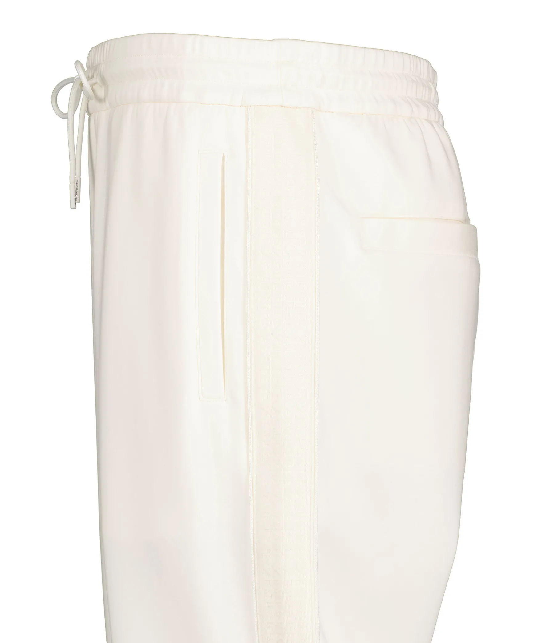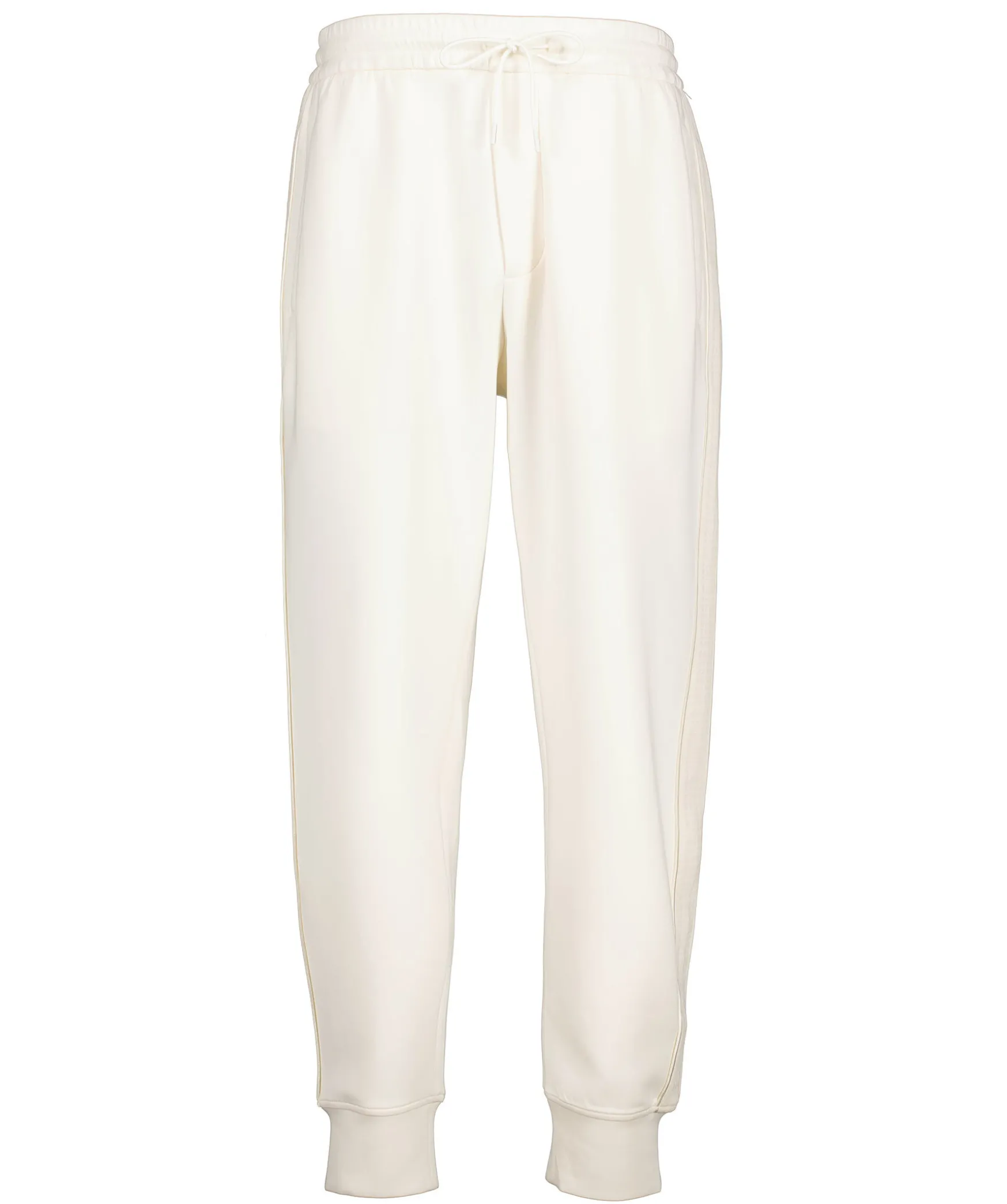 Kramvita Mjukisbyxor Fran Emporio Armani. Tillverkade I En Bomulls- Och Polyesterblandning. Tva Sidfickor Och Tva Bakfickor. Gummerade, Ton-I-Ton Revarer Med Logotyp Langs Med Benen. Stretchig Midja Med Snorning Samt Resar Vid Benslut.