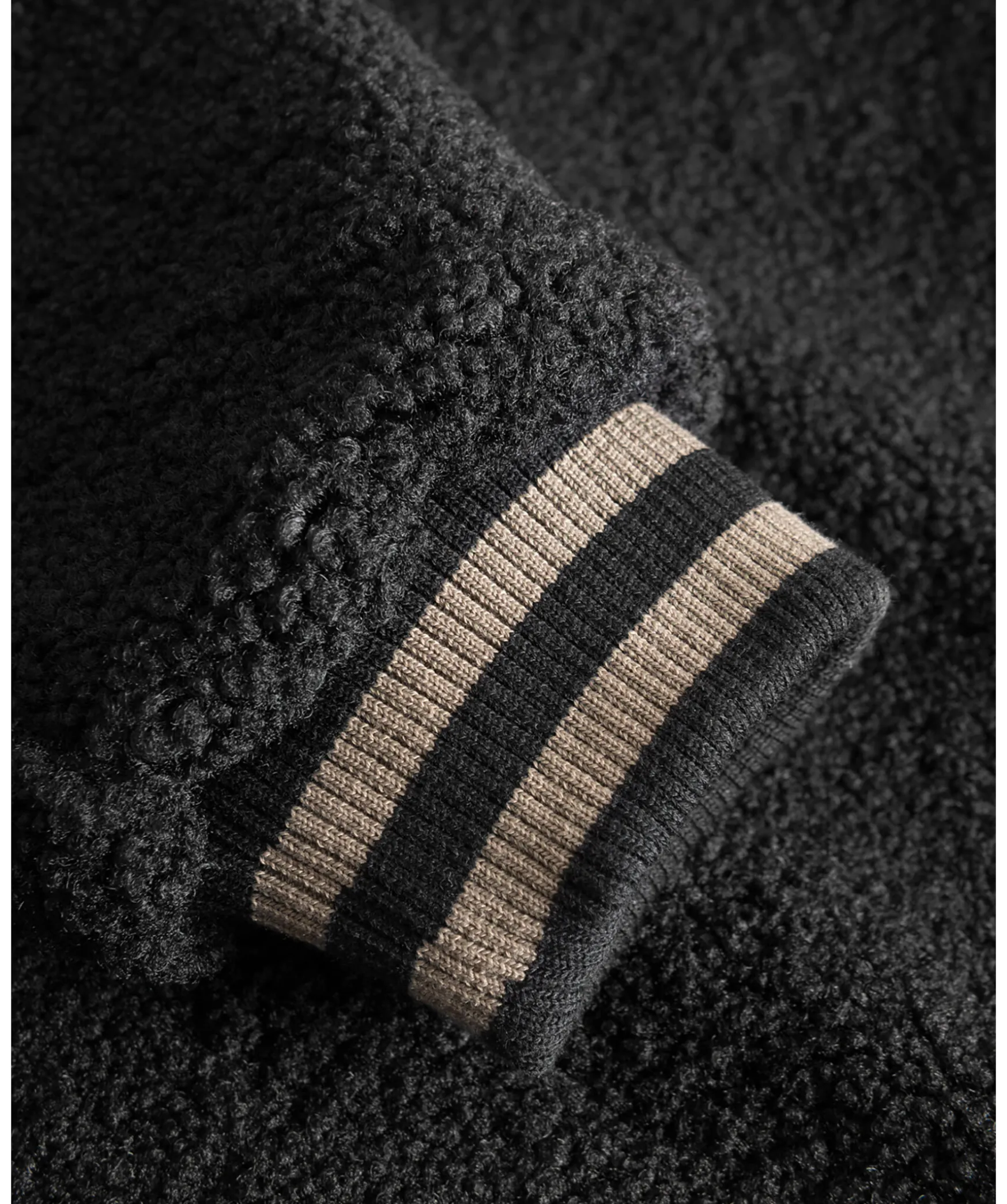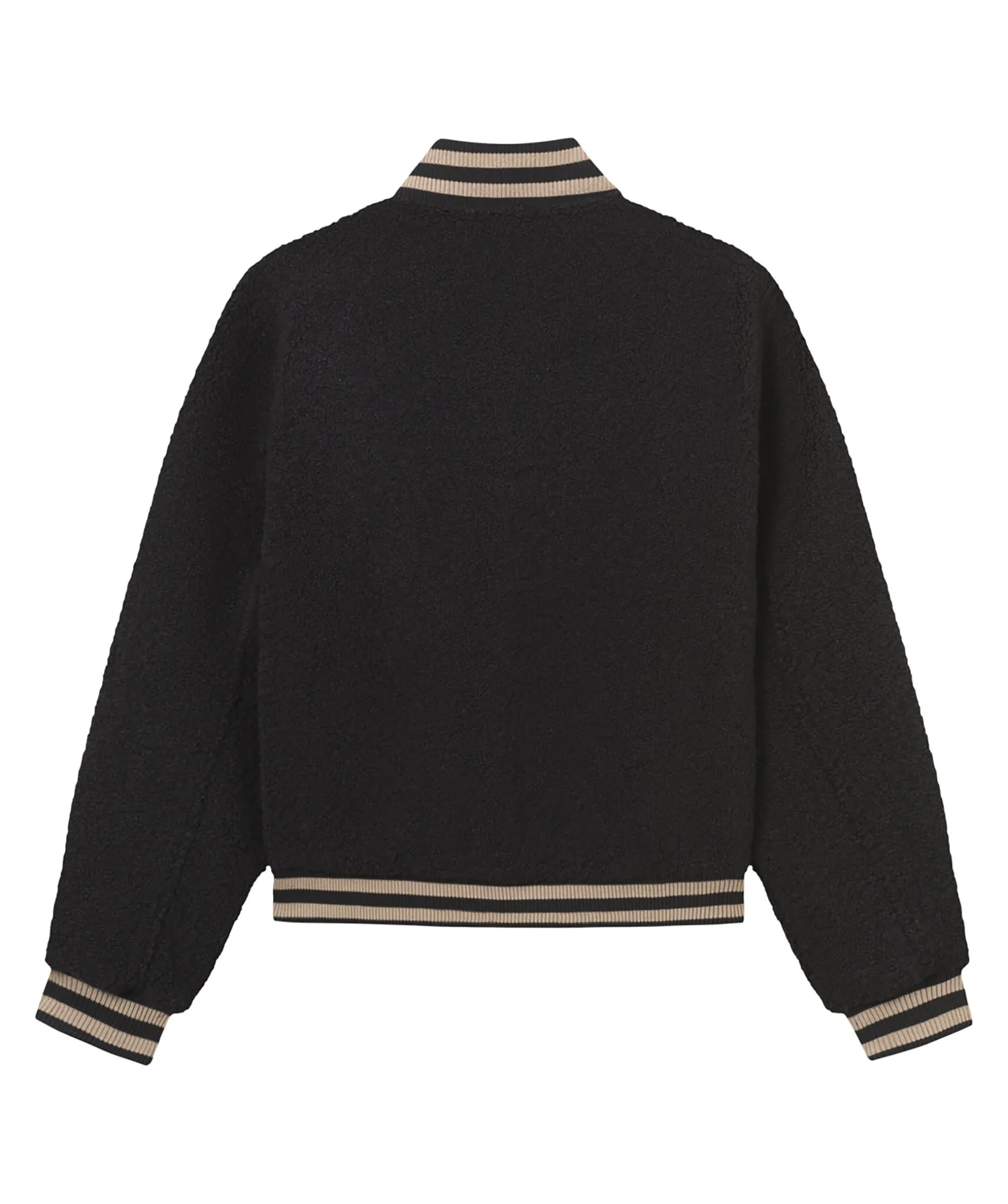 Svart Collegejacka I En Mjuk Fleecefinish Fran Les Deux. Jackan Har Traditionell Rander I Brunt Langs Armarna, Kragen Och Fallen. Tva Sidfickor, En Innerficka, Ribbstickade Fallar Och Armar, Catalina Krage Och Stangs Med Tryckknappar Fram.