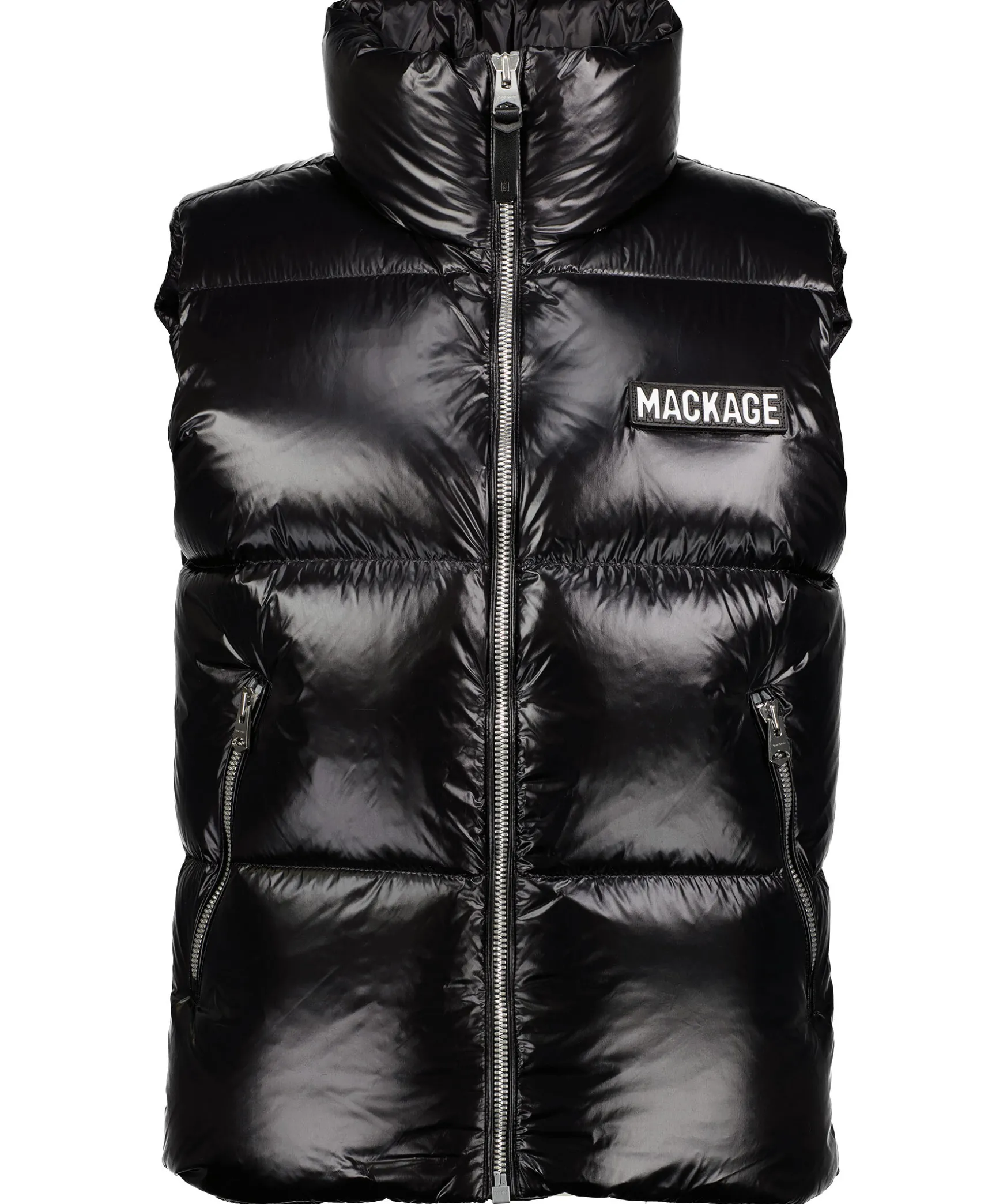 Svart Quiltad Dunvast Fran Mackage I Glansigt Tyg. Stangs Med Dragkedja Framtill. Tva Snedstallda Fickor Fram Som Stangs Med Dragkedja. Patch Med Logotyp Pa Vanster Brost. Dragsko I Midjan.Modellen Ar 185Cm Lang Och Har Pa Sig Storlek 48.