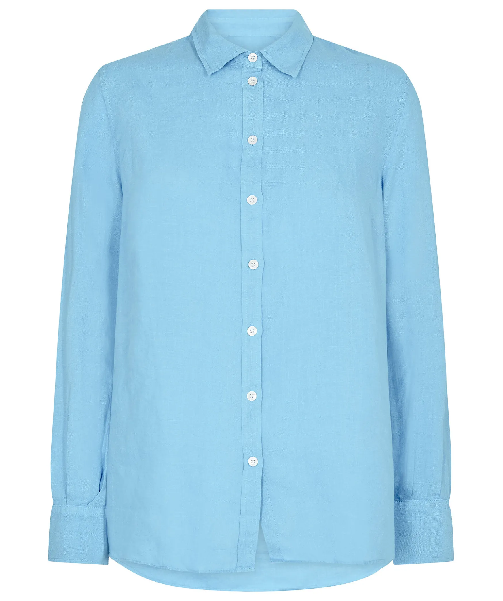 Ljusbla Linneskjorta Fran Mos Mosh. Klassisk Krage, Ljusa Knappar. Tillverkad I 100% Linne.