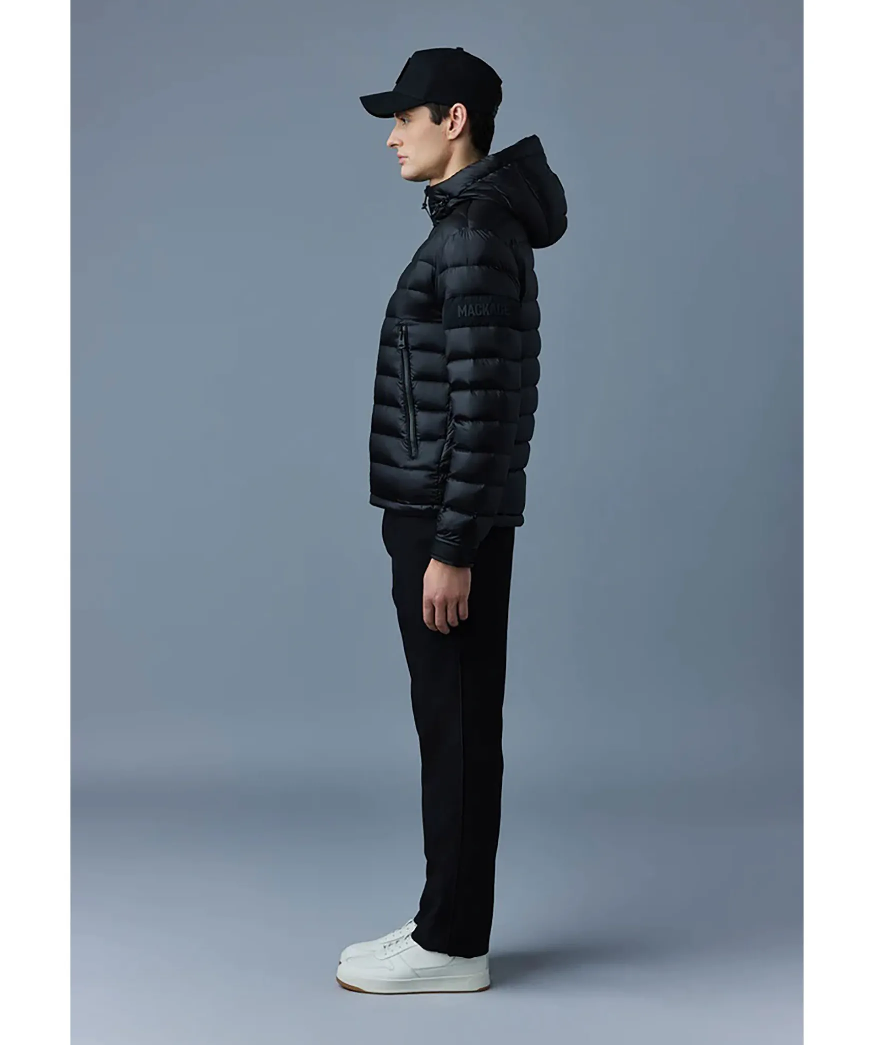 Svart, Lattvikts Jacka Med Dunfyllning Fran Mackage. Tillverkad Med 100% Atervunnet Re-Stop-Tyg Som Ar Vattenavvisande Samt Ar Packbar. Luva Med Justerbart Stormvisir Med Dragsko, Man Kan Justera Armsluten Med Kardborrband Samt Och Den Har En Fall Med Dragsko Som Ger Ytterligare Varme. Kanalquiltning Och Stangs Med Dragkedja Mitt Fram. Langa Fickor I Midjan Med Dragkedja, Logotyp I Svart Silikon Pa Vanster Arm.Modellen Ar 187 Cm Och Bar Storlek 40. Langd Fran Axel Till Nederkant: 71,12 Cm.