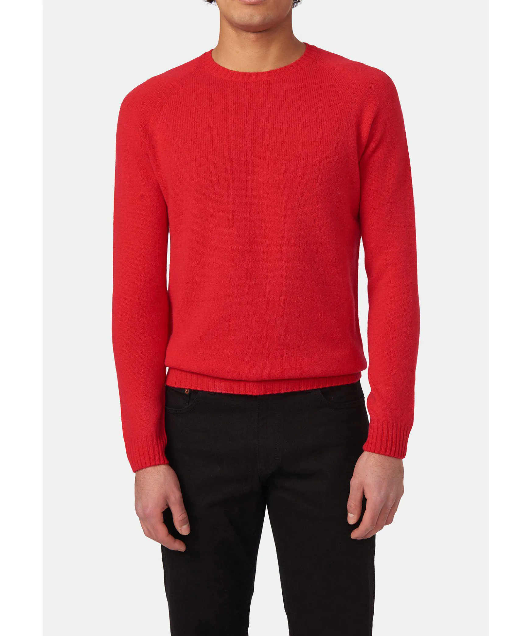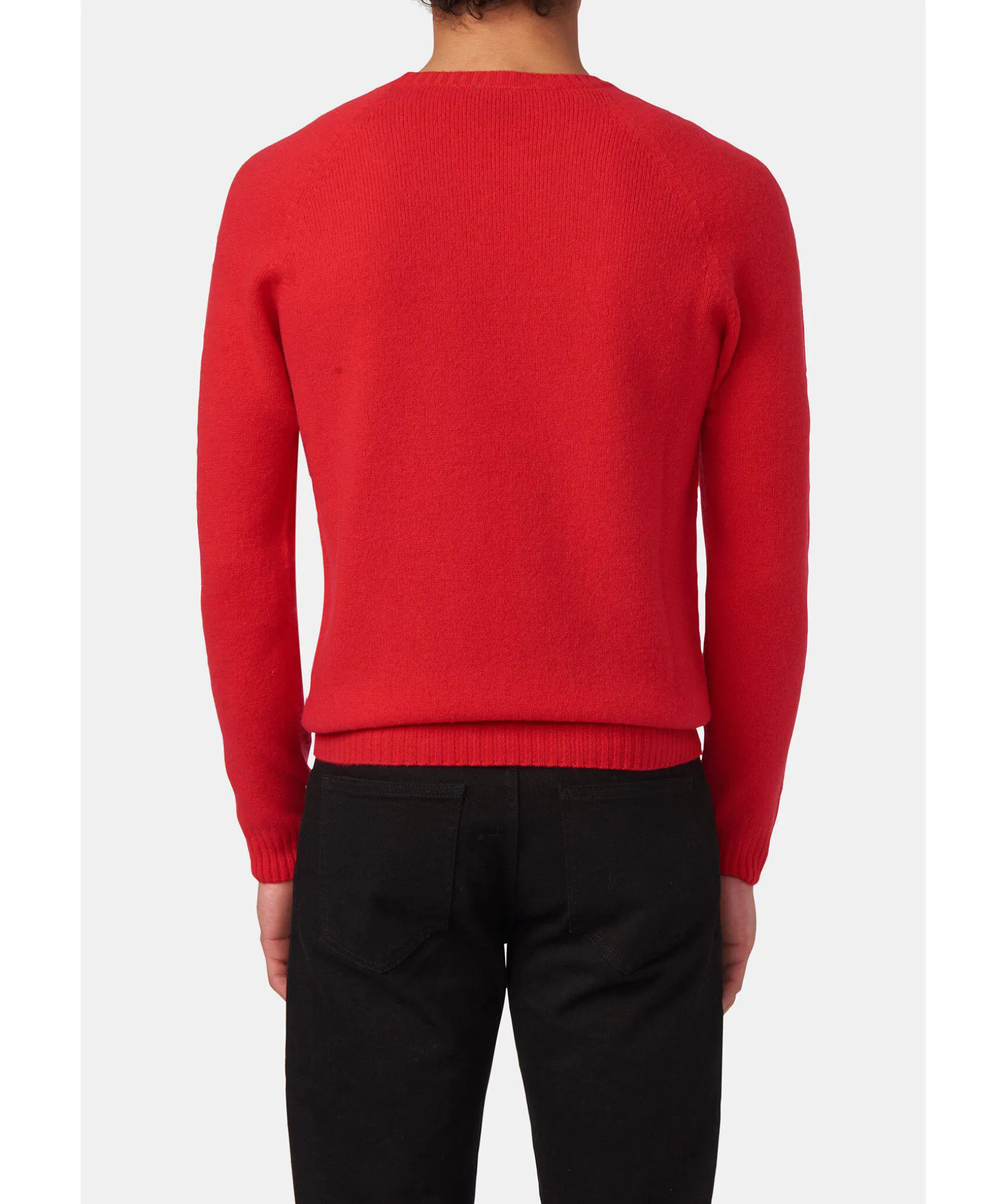 Stickad Rundhalsad Ulltroja Med Raglanarm. Ribbstickad Krage Och Muddar.