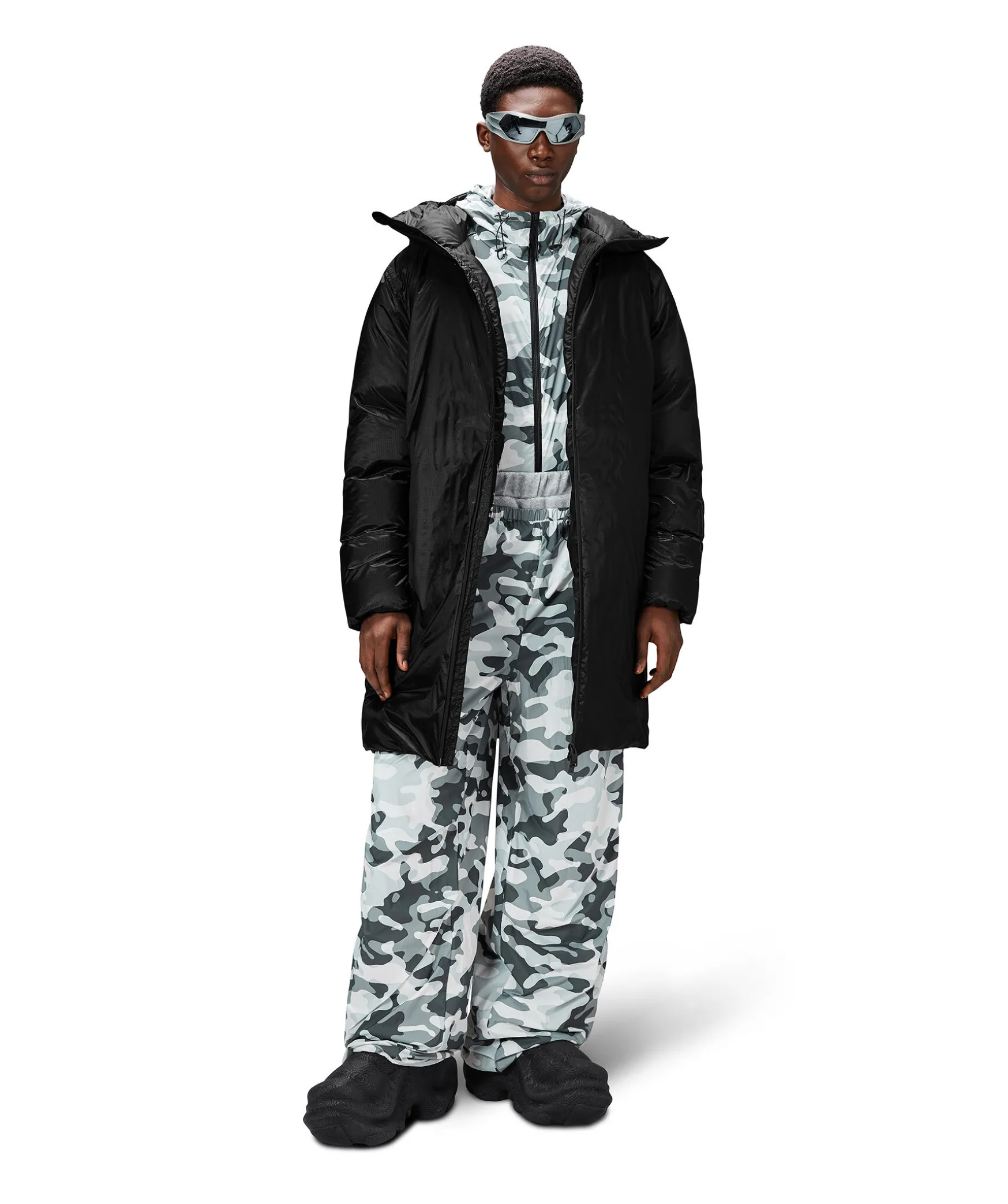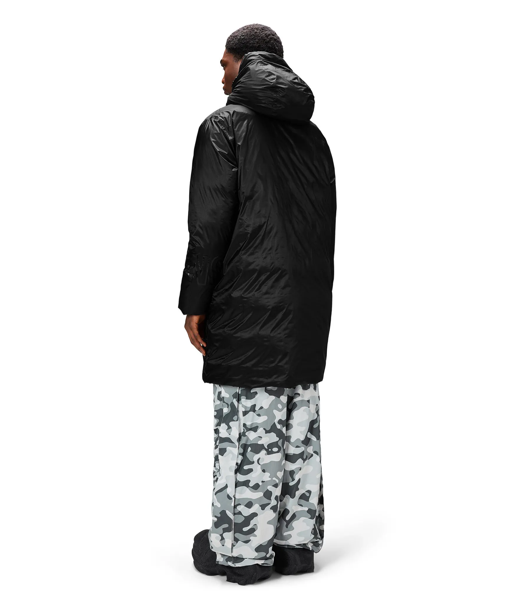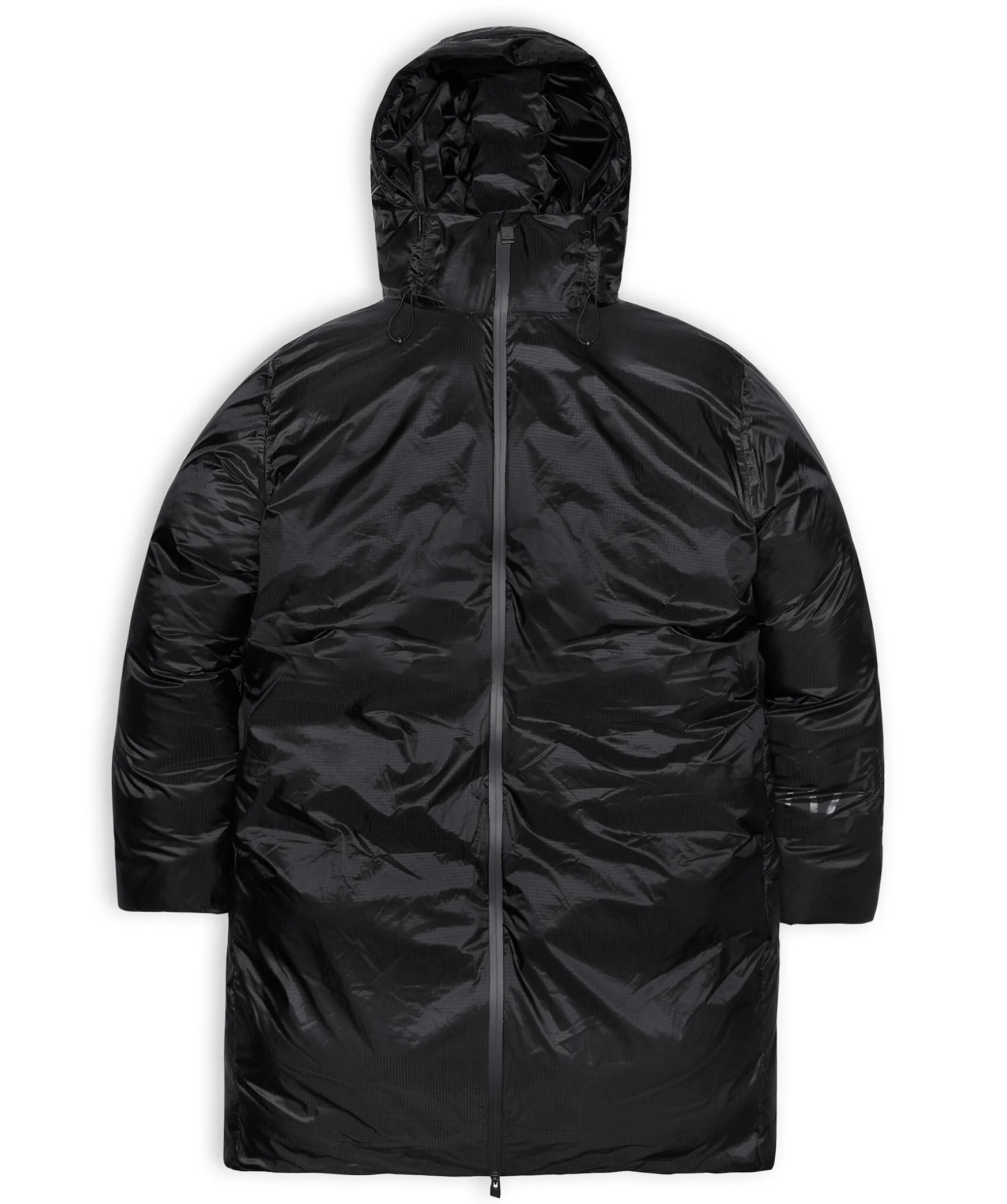 Svart Lang Puffer Jacka Fran Rains. En Vattentat Vinterjacka Med En Lyxigt Sportig Estetik. For Kevo-Serien Svanger Rains Pa Den Klassiska Puffer-Looken. Pa Utsidan Hittar Du Halvgenomskinlig Vattentat Nylon Med Belaggning Pa Baksidan. Oppna Jackan For Att Avsloja Fjaderlosa Pufferkamrar Pa Insidan. Plagget Ar Vattentatt Och Andas, Vilket Haller Dig Varm Och Bekvam I De Kallaste Vadren. Jackan Har Gummerat Tvavagsblixtlas, Tejpade Sommar, Dolda Sidsomsfickor Och Dolda Stormmanschetter I Jersey. Silhuetten Fullandas Av En Isolerad Huva Med Ett Flertal Elastiska Dragskor.