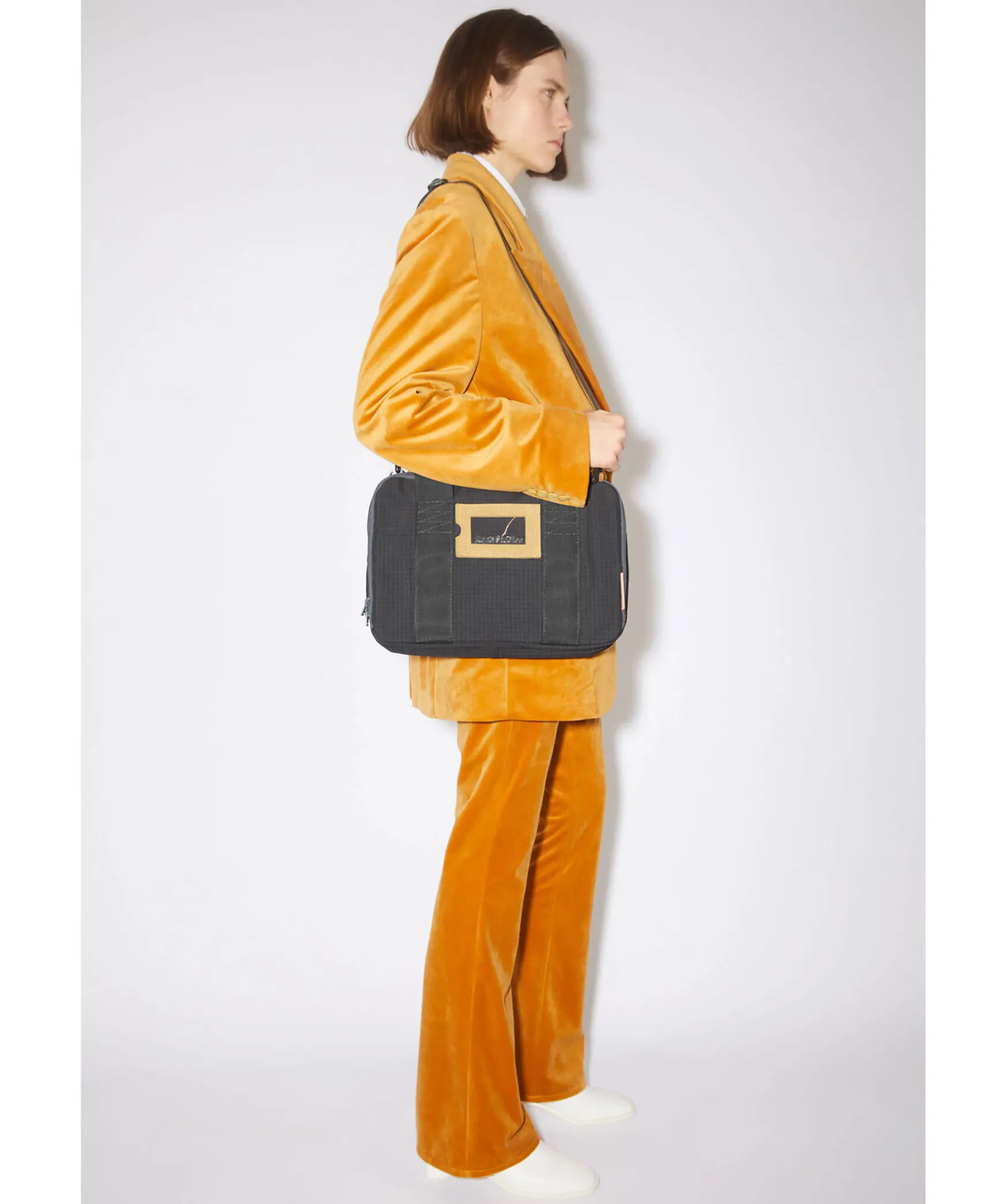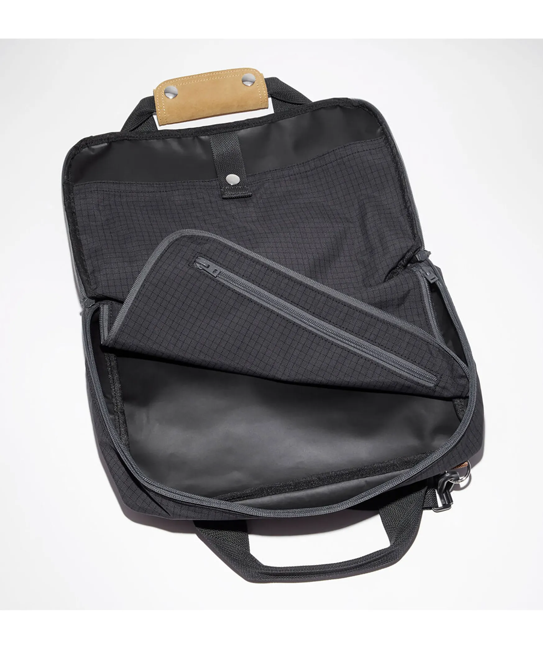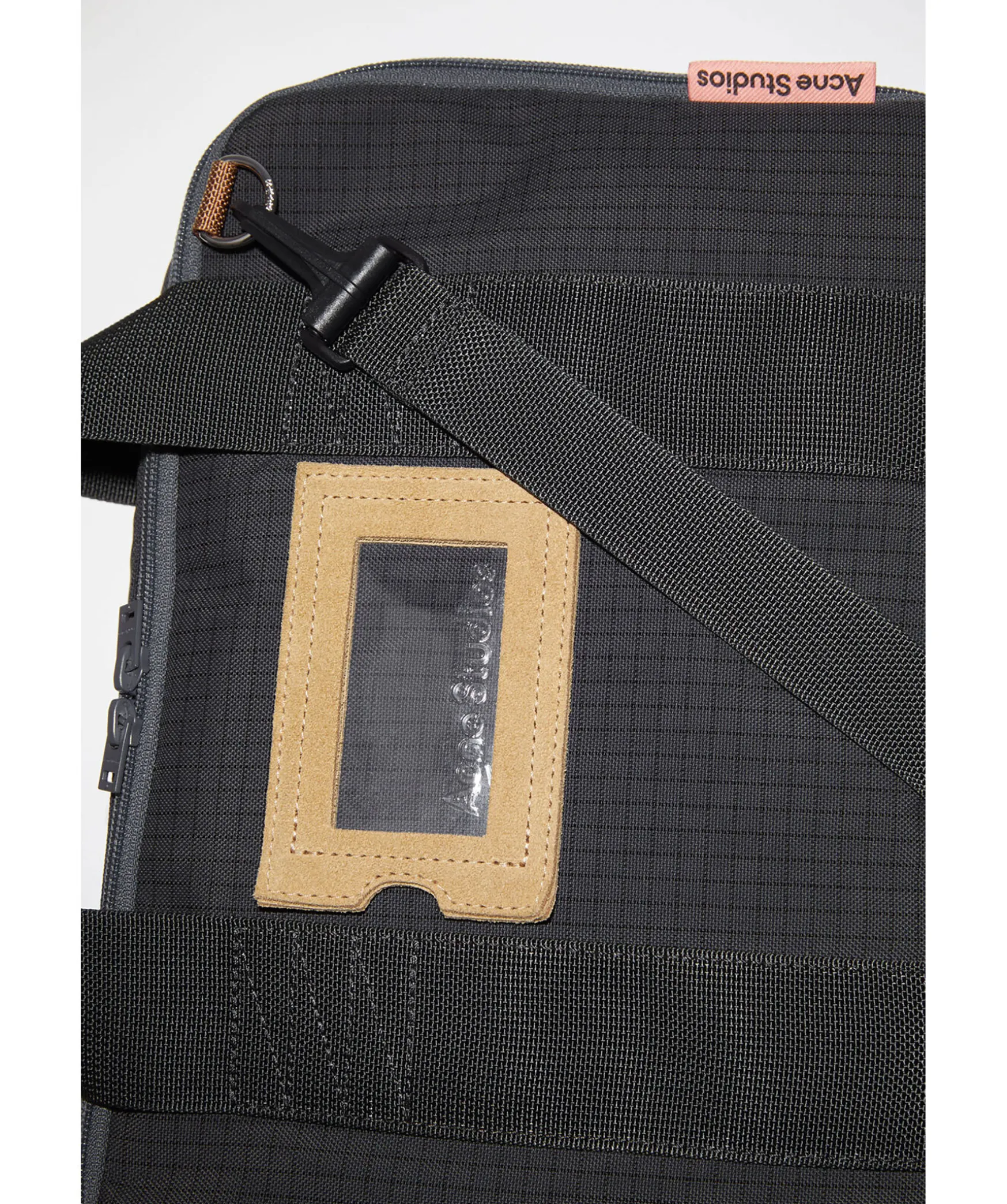 Svart, Datorvaska Gjord Av Nylon Fran Acne Studio. Detaljerad Med En Adressetikett I Mocka Pa Framsidan Och Tva Handtag Upptill. Crossbody-Rem, Ett Yttre Fack Och En Acne Studios-Logotyp Pa Sidan Vid Dragkedjan. Stangs Med Dragkejda Och Har Invandiga Fack Med Dragkedja. Matt: 34 Cm X 23,5 Cm X 6,5 Cm. Remmatt: 118 Cm Full Langd.