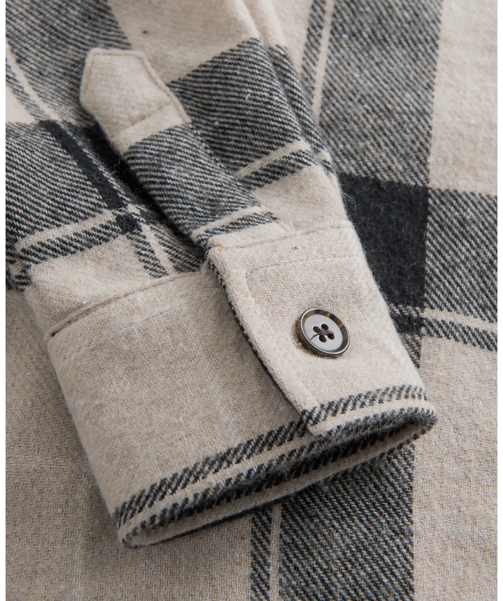 Rutig Skjorta Fran Les Deux I Svart Och Beiget, Gjort I Ett Mjukt Material. Tillverkad I En Bomulls- Och Polyesterblandning. Button Down Krage, Tva Brostfickor Med Knapp.