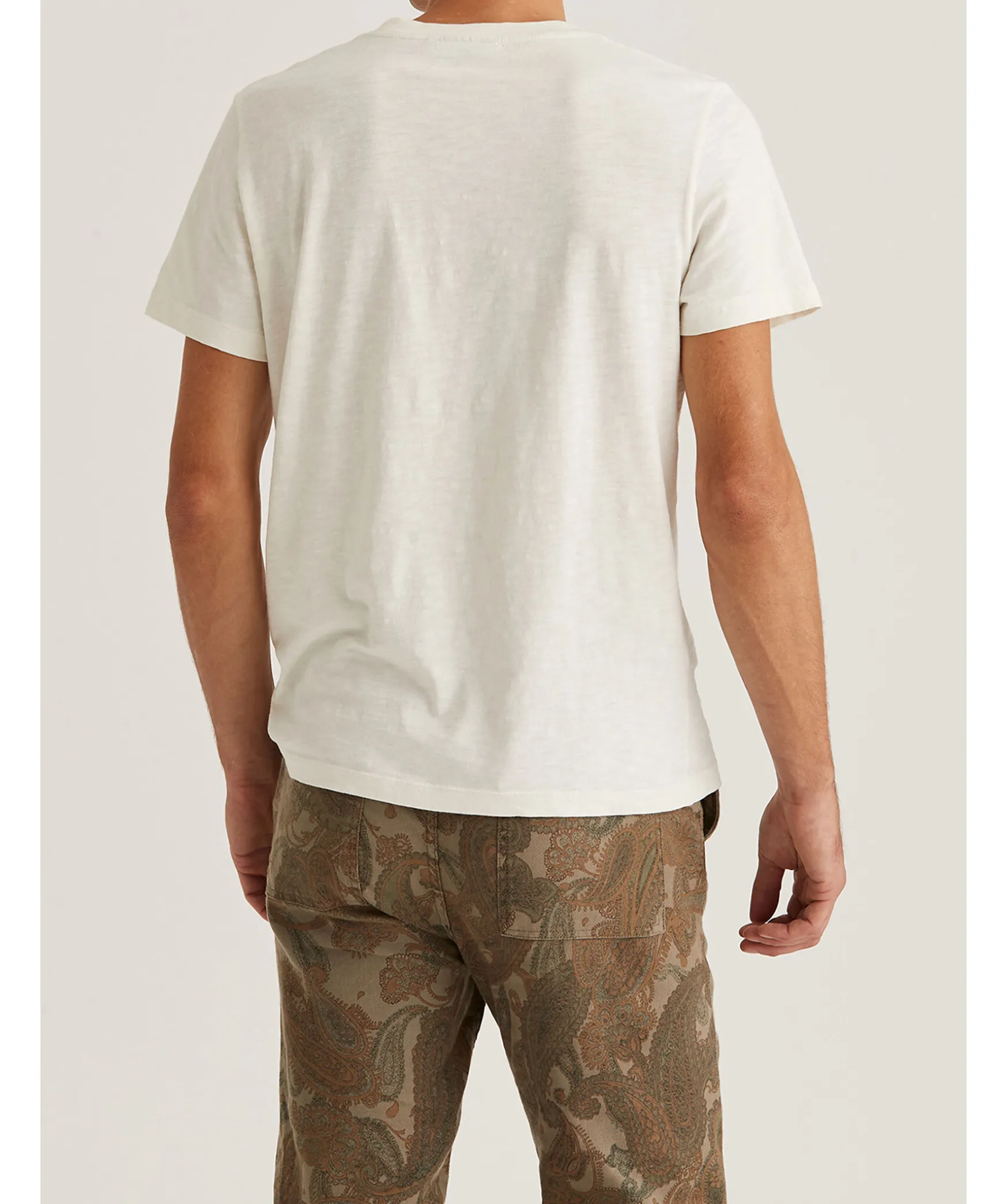 Vit Melerad T-Shirt Fran Morris. Rundad Halsringning Med Ribbstickad Mudd. Brostficka Pa Vanster Sida Med Broderad Logotyp. Tillverkad I 100% Bomull.