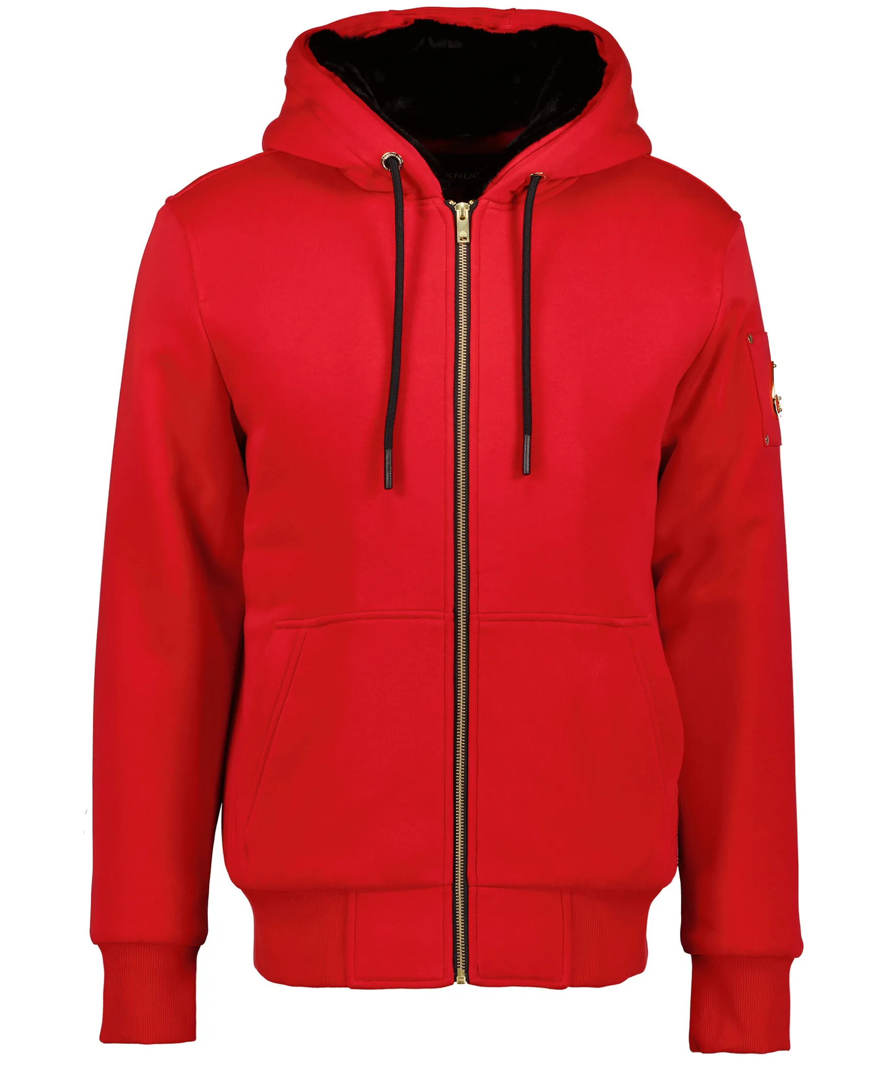Rod Vadderad Hoodie Fran Moose Knuckles. Stangs Framtill Med Dragkedja. Luva Med Dragsko. Ficka Pa Magen. Ribbstickad Mudd Vid Arm- Och Plaggslut. Patch Med Logotyp I Metall Pa Vanster Arm. Fodrad Luva I Konstpals. Guldfargade Detaljer.