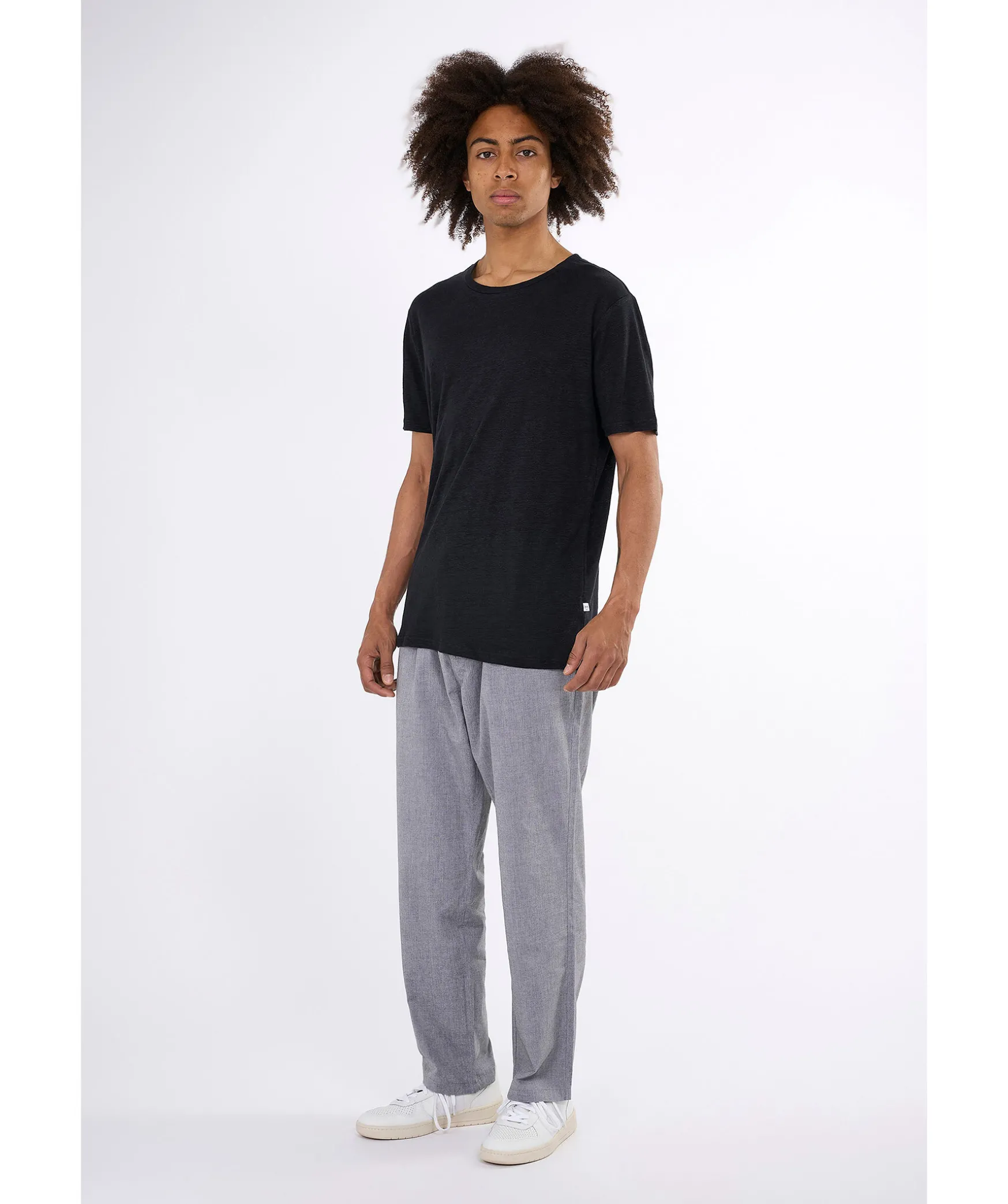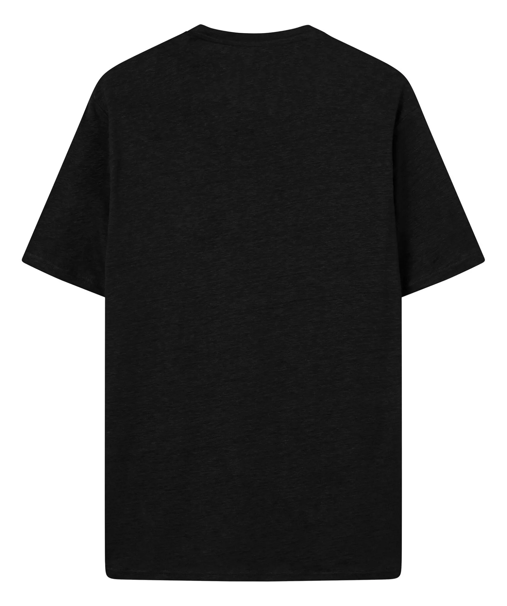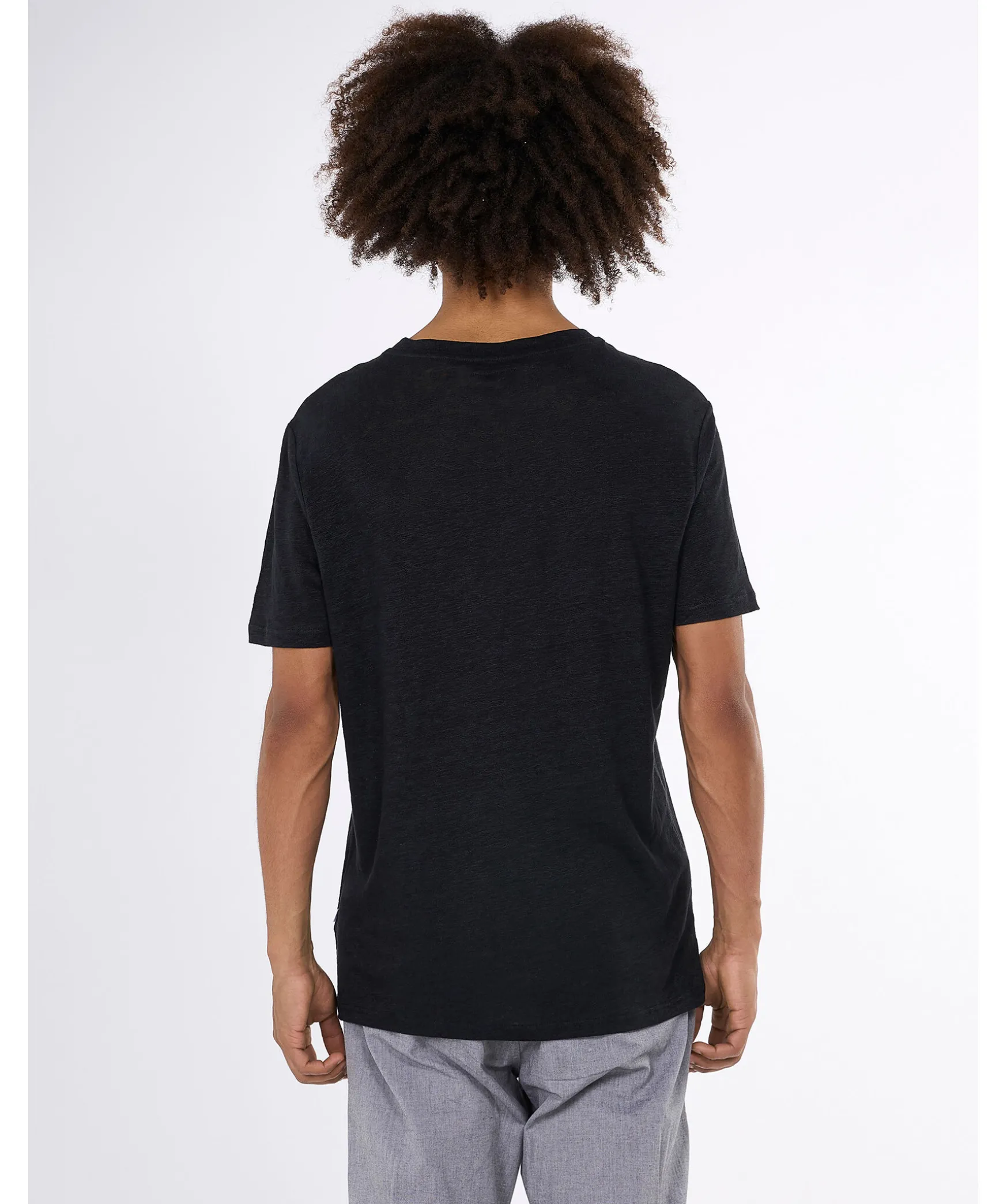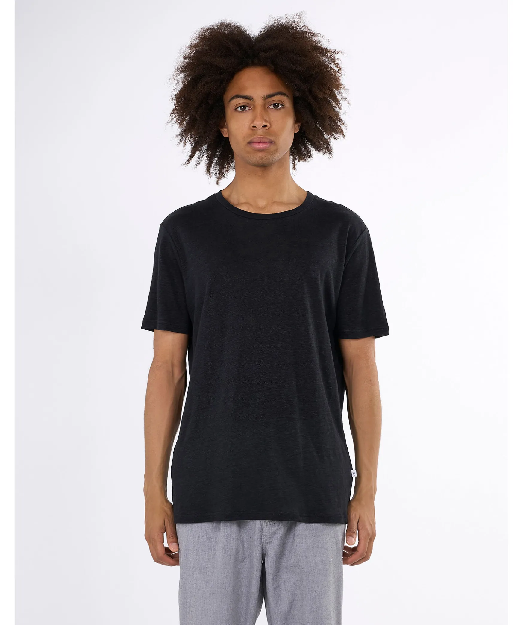 Svart Mjuk T-Shirt Fran Knowledge Cotton. Tillverkad I 100% Ekologisk Linne. Avslappnad Passform Med Nagot Tappade Axlar. Rundad Halsring.