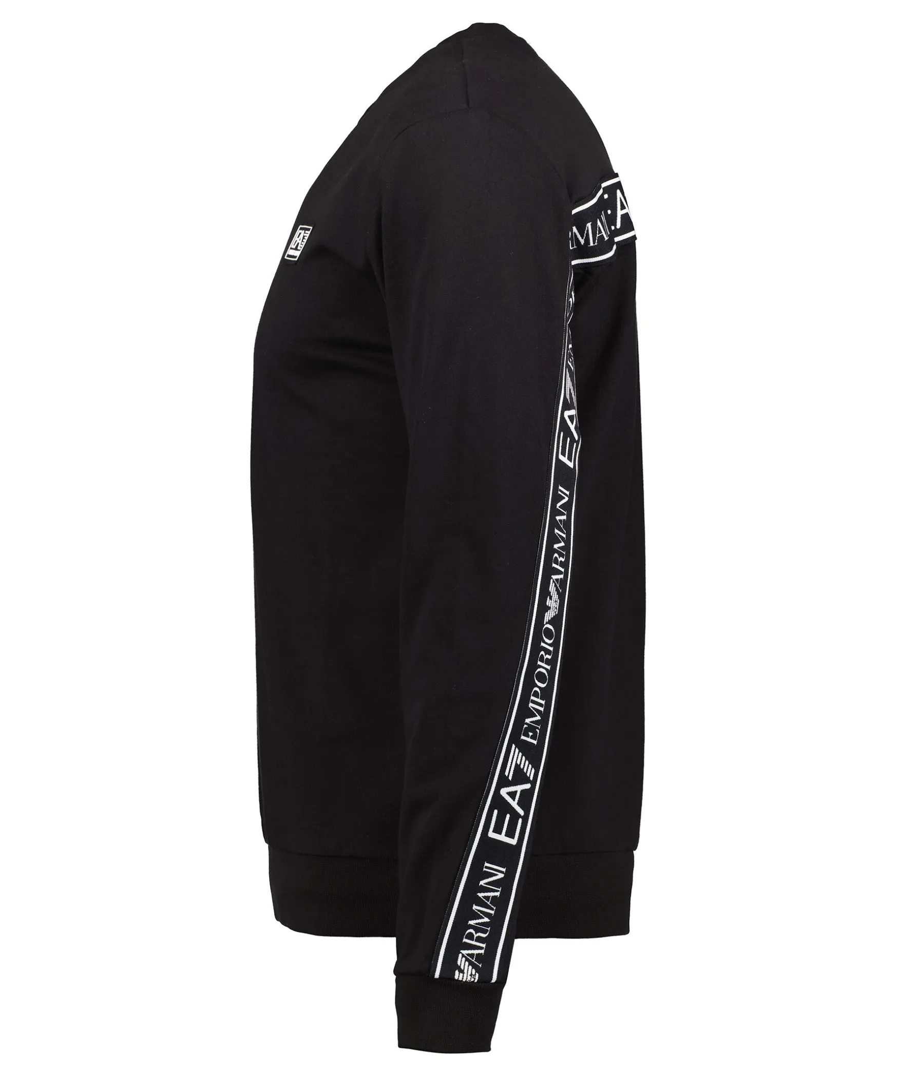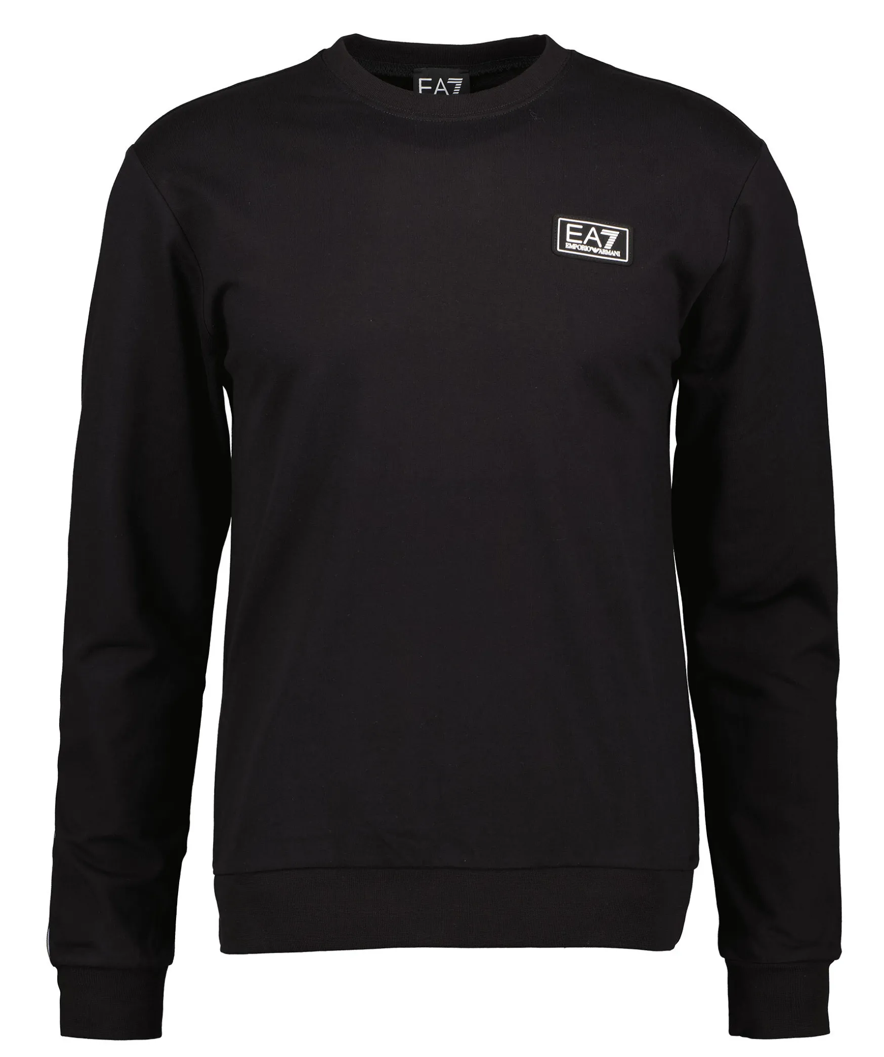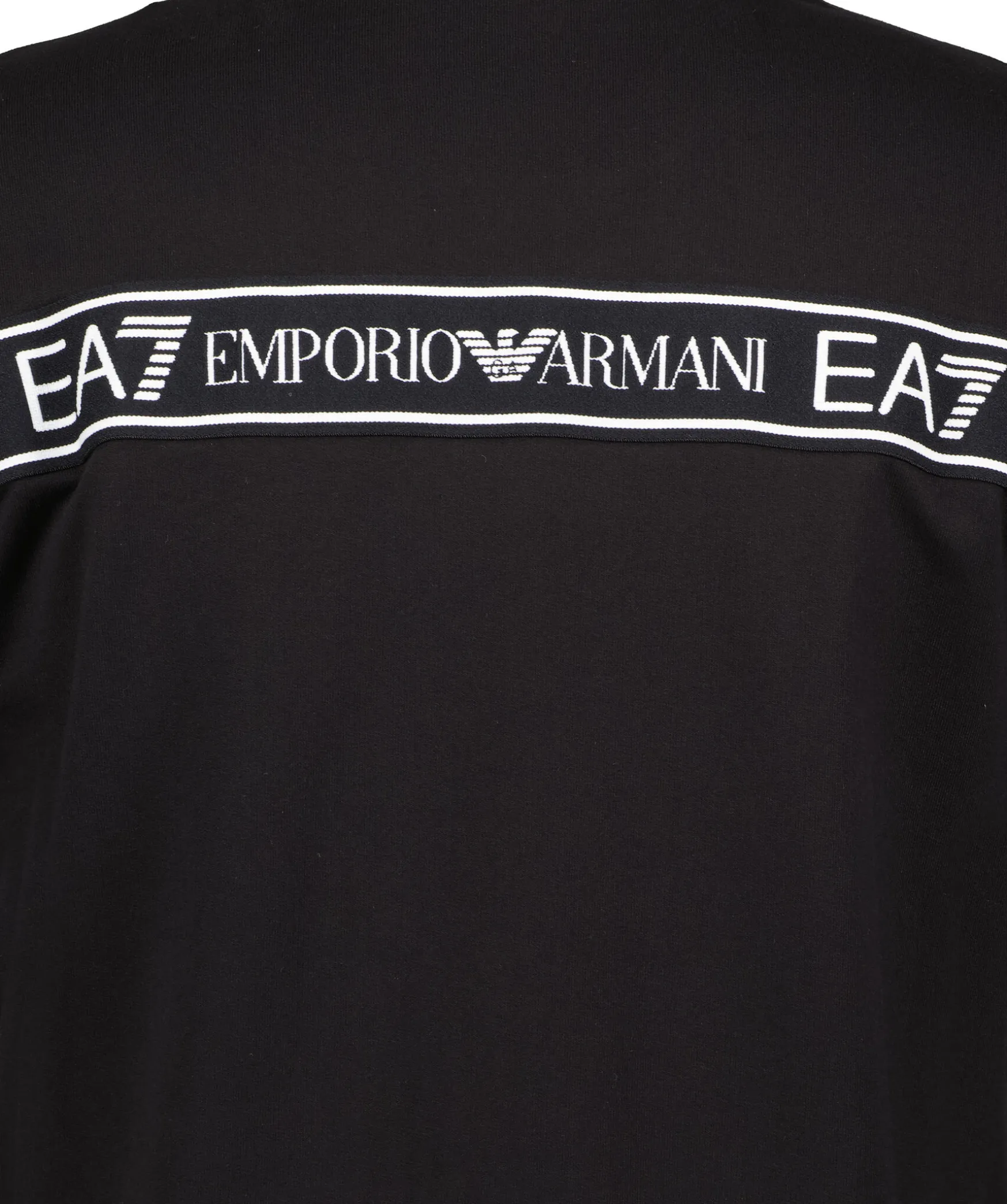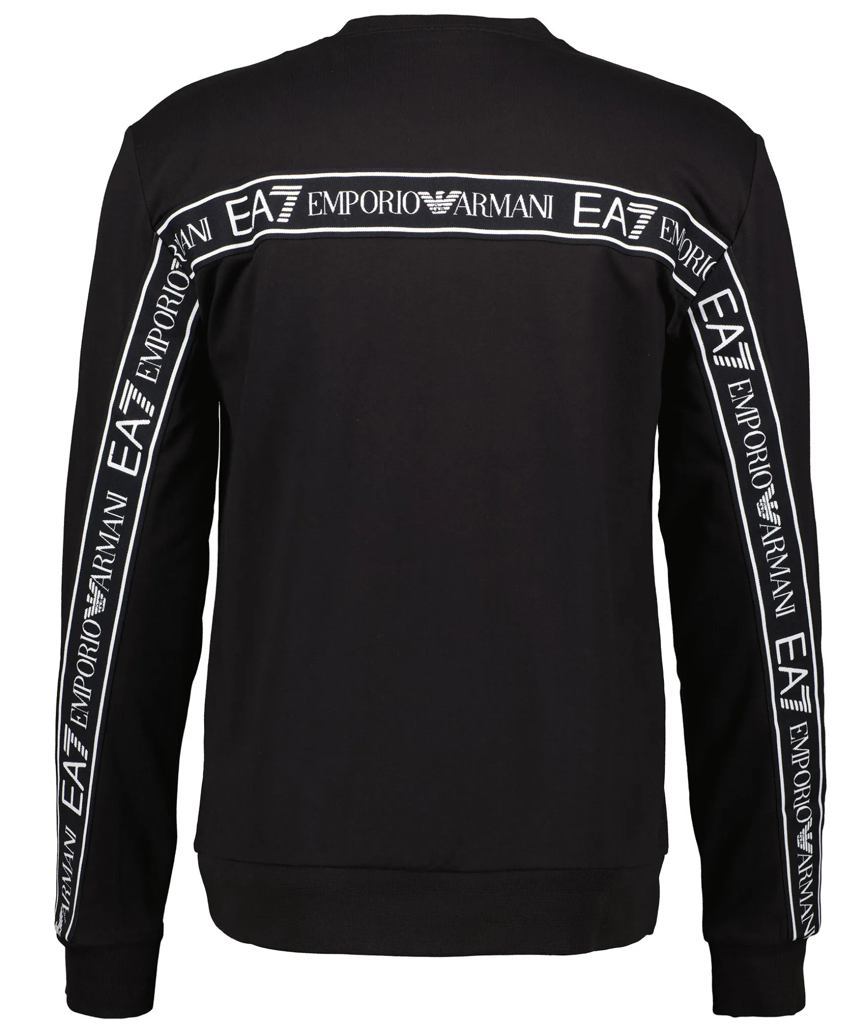 Svart Sweatshirt Fran Armani Ea7. Tillverkad Av 100% Bomull. Trojan Har Vita Logotyp-Revarer Pa Armarna Och Over Ryggen Samt Gummerad Logotyp Pa Brostet. Ribbstickad Halsringning Samt Arm-Och Plaggslut.