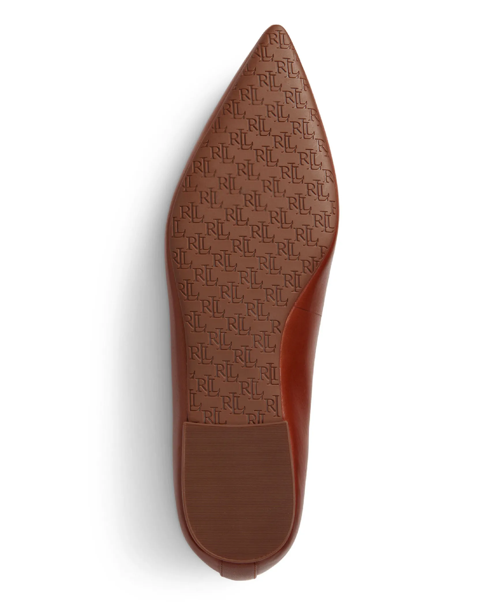 Bruna Ballerinaskor Med Spetsig Ta Fran Lauren Ralph Lauren. Tillverkad Av Polerat Lader Och Har En Lrl-Metallogga Vid Halen. Slip-On Modell Och Vadderad Innersula Samt Yttersula I Gummi.