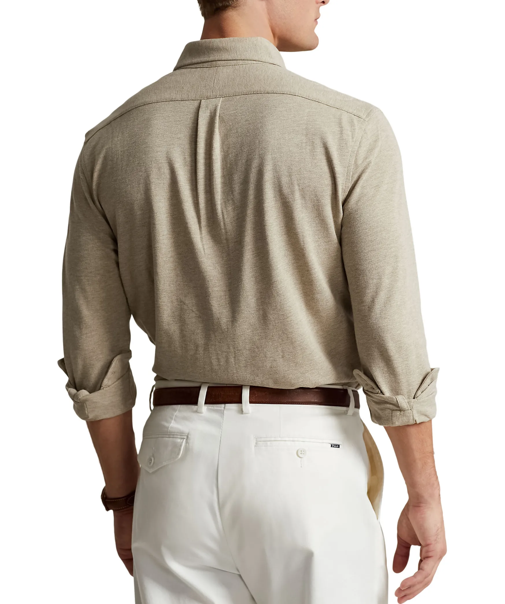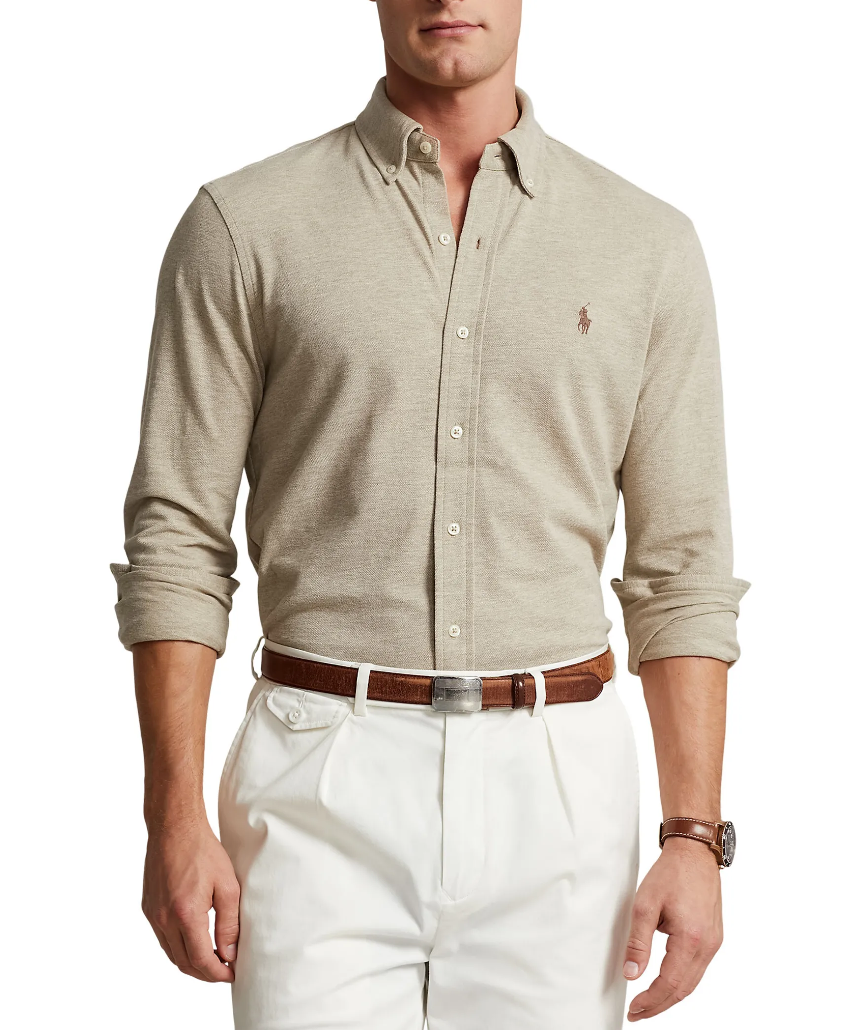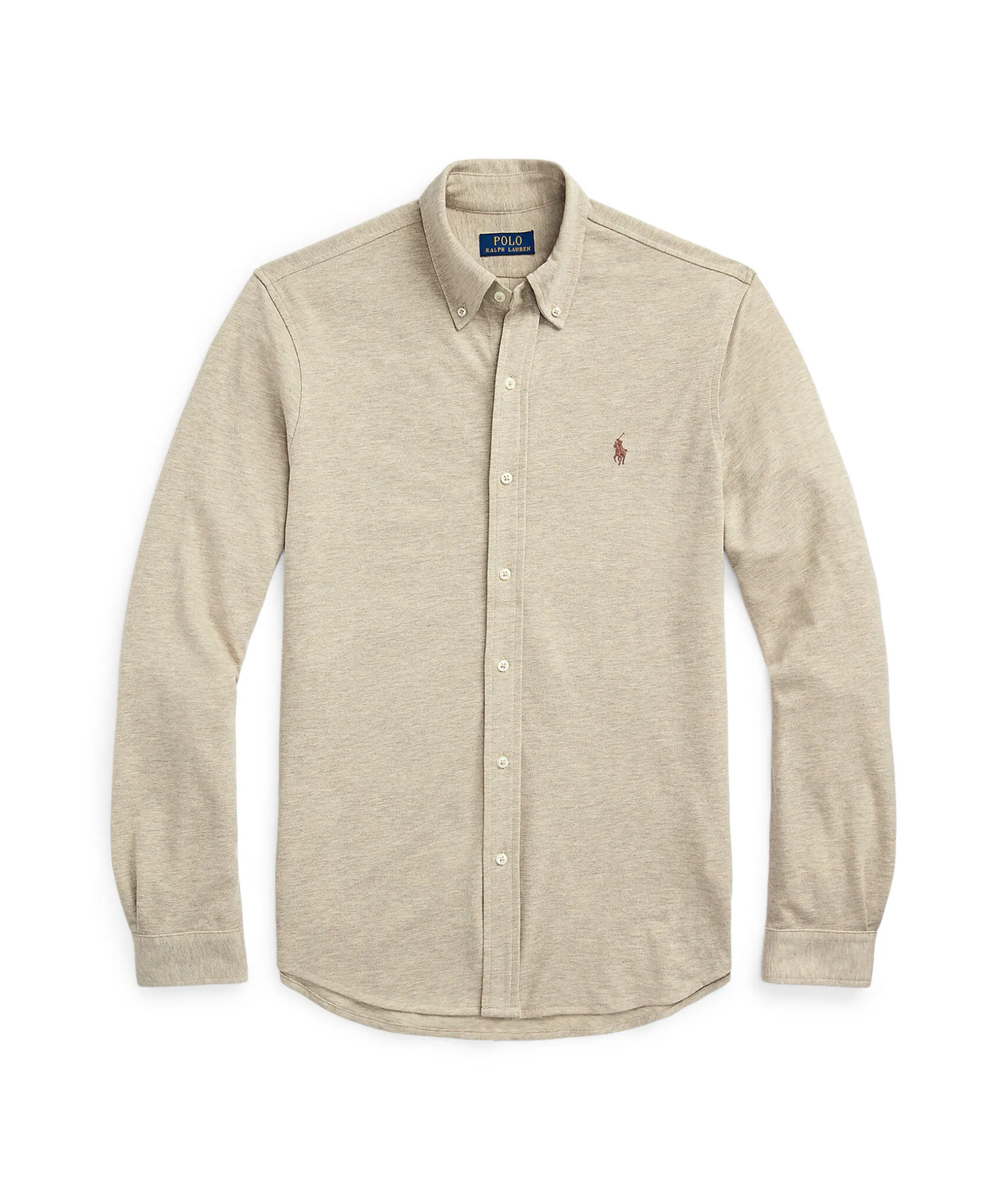 Sandfargad Bomullsskjorta Med Button-Down Krage Fran Polo Ralph Lauren. Knappsla, Langa Armar Med Manschetter. Broderad Logotyp Pa Brostet.