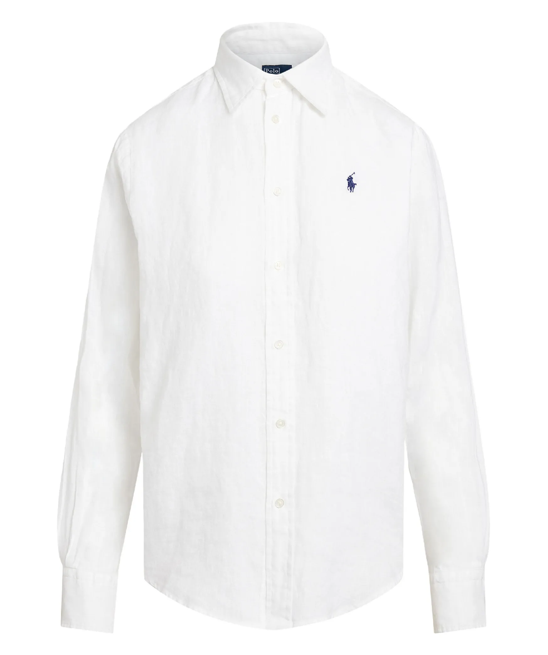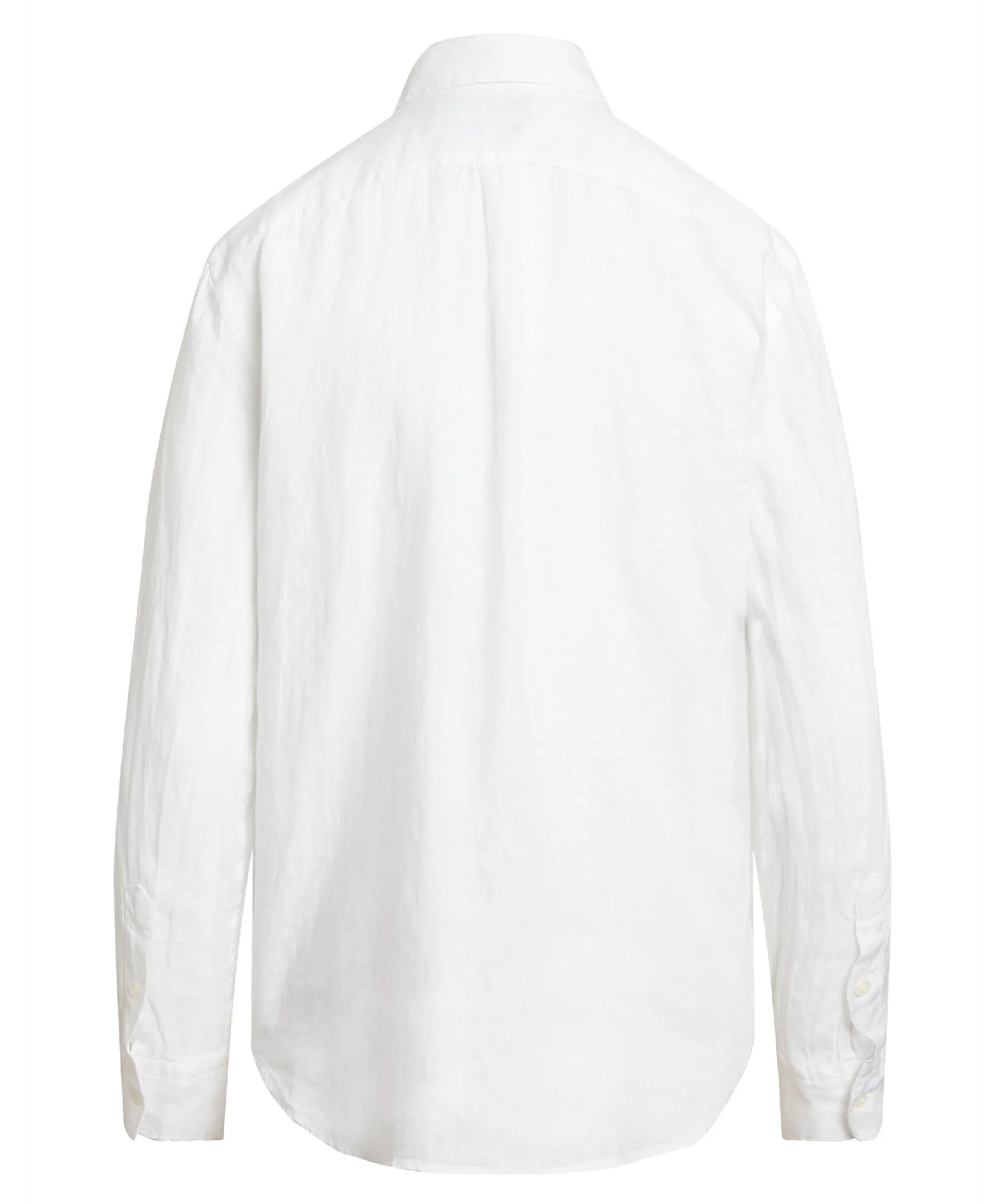 Vit Oversized Linneskjorta Fran Polo Ralph Lauren. Klassisk Krage, Vita Knappar Hela Vagen Fram, Knappar I Armslut Och Rundad Fall. Broderad Logotyp Pa Brostet.