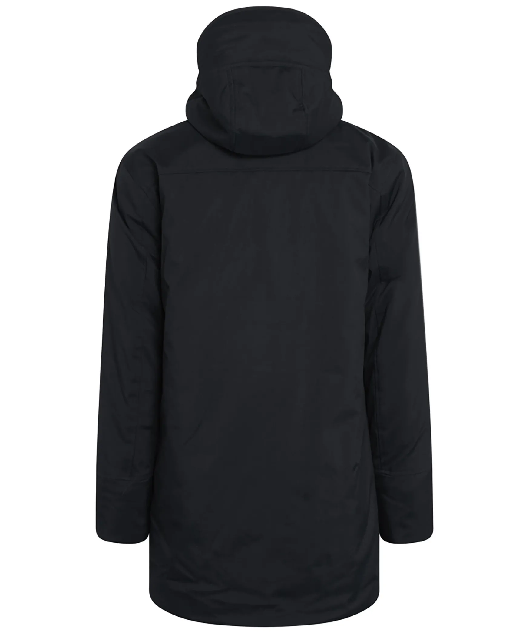 Svart Parkas Fran Knowledge Cotton Apparel. Tillverkad I En Teknisk Organisk Bomull Blandad Med Atervunnen Polyester. Hallbar Softshell-Konstruktion, Med En Vattentat Och Ogenomtranglig Fuktbarriar Sa Att Du Kan Halla Dig Helt Torr. De Latta Materialen Hjalper Till Att Reglera Kroppstemperaturen Och Halla Dig Bekvam. Tvavags Dragkedja Och Dold Magnetisk Knappstangning Framtill. Tva Framfickor Med Tvavagsdragkedja, En Brostficka Med Dragkedja Och Tre Innerfickor Med Dragkedja Och Tryckknapp. Vattentat (5000 Mm), Andas (5000/Gr/M2 24H) Och Vindtat. Tryckt, Svart Logotyp Pa Vanster Arm.