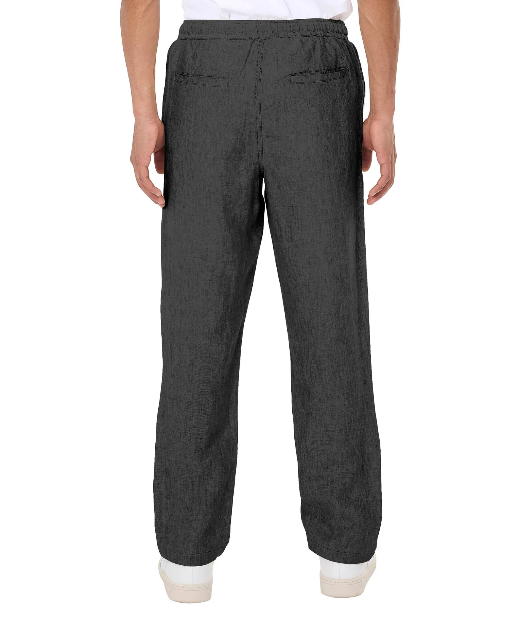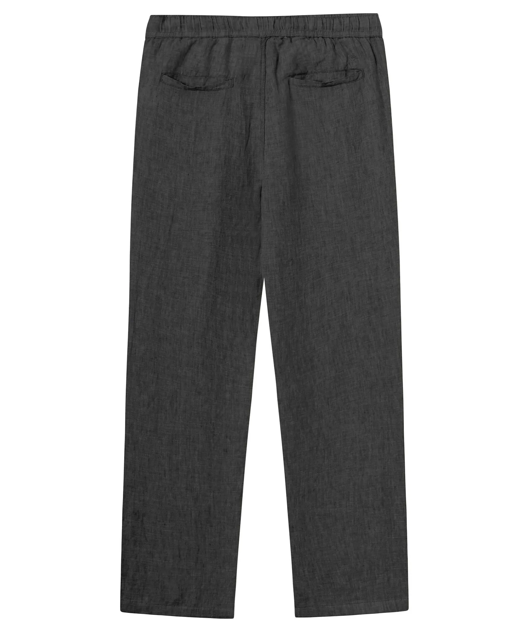 Svarta Linnebyxor Fran Knowledge Cotton. Tillverkad I 100% Ekologisk Linne. Rak Passform Med Elastisk Midja Samt Snorning I Midjan. Tva Sidofickor Och Diskreta Bakfickor.