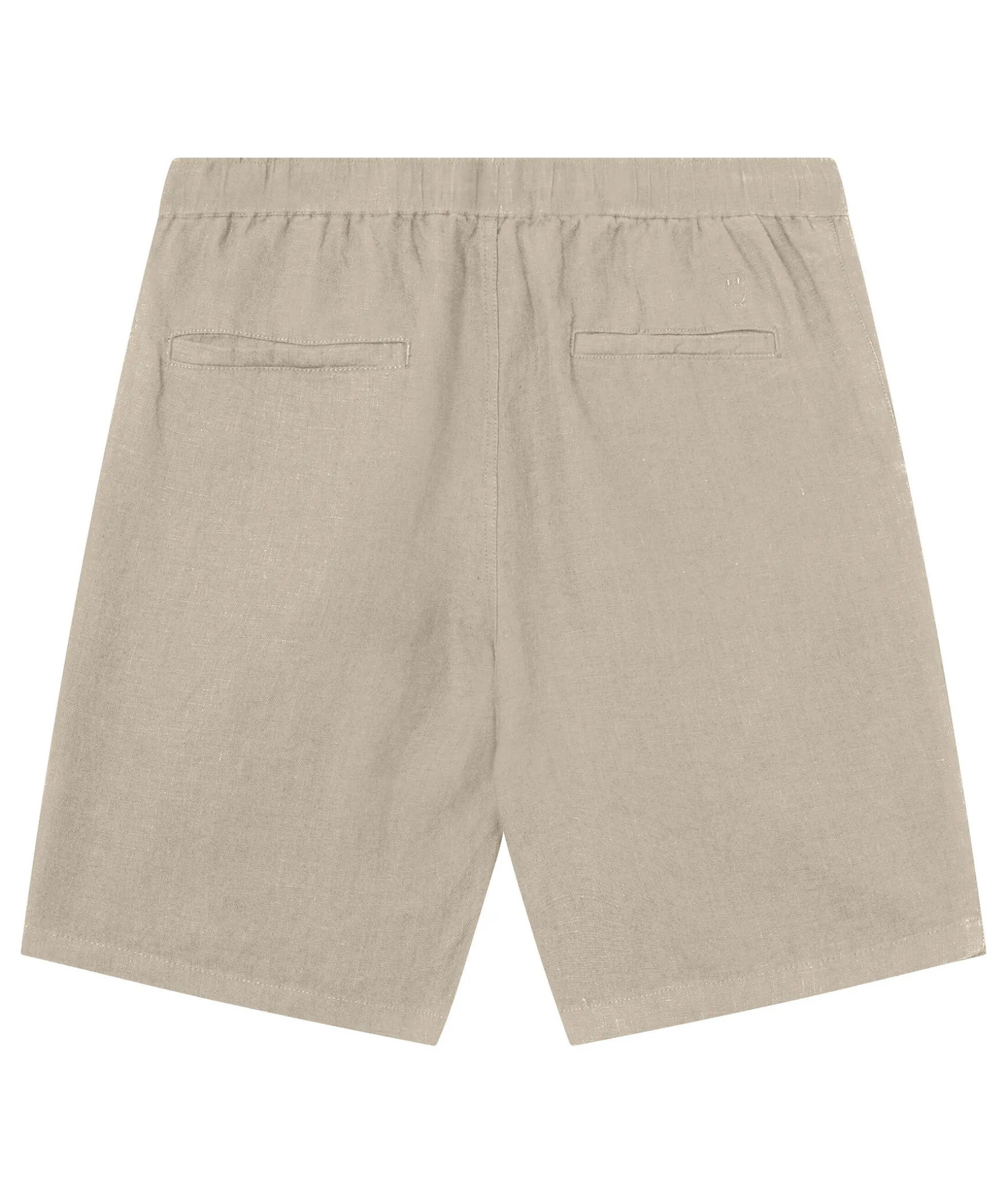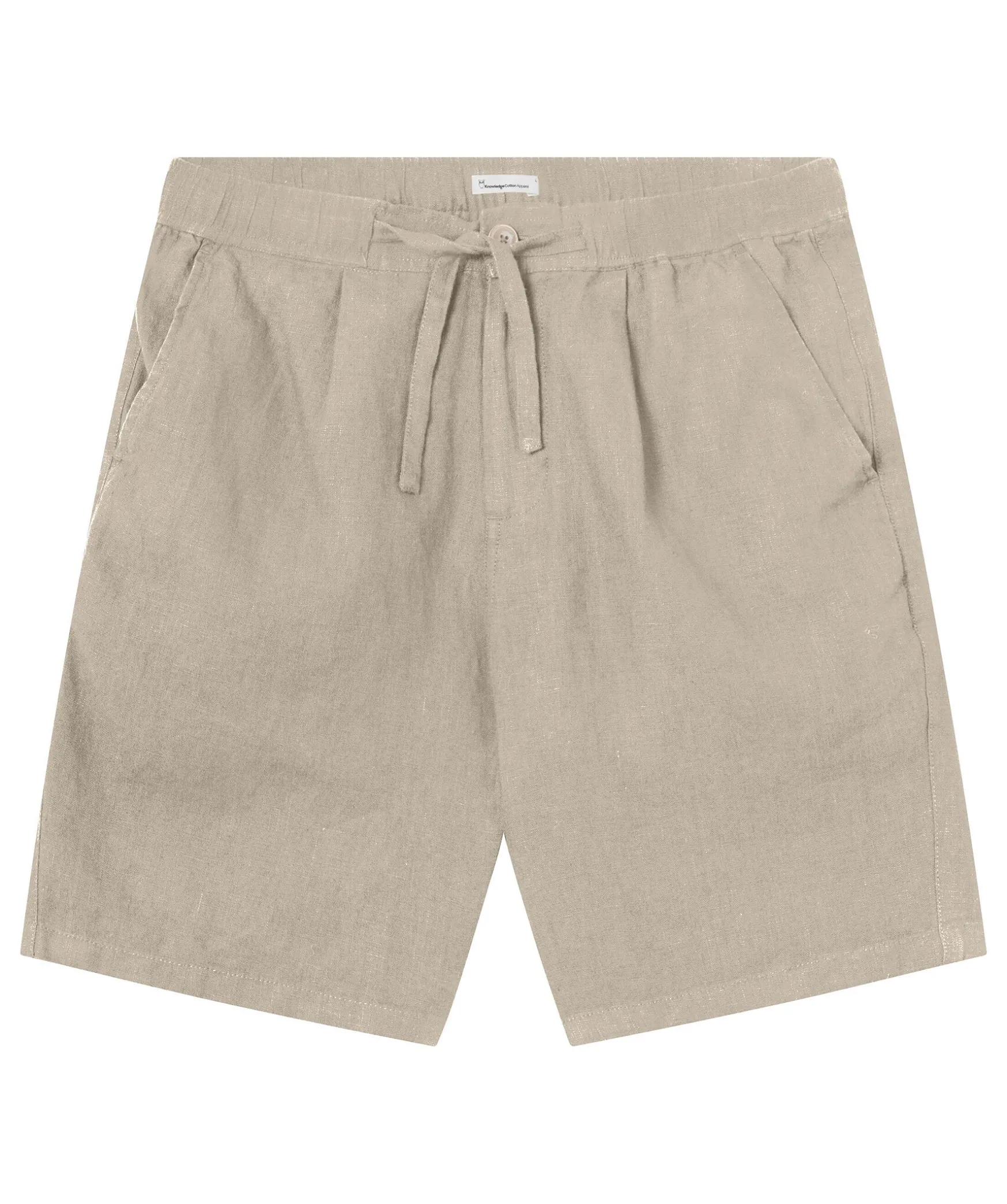 Sandfargade Linneshorts Fran Knowledge Cotton. Tillverkad I 100% Ekologisk Linne. Rak Passform Med Elastisk Midja Samt Snorning I Midjan. Tva Sidofickor Och Diskreta Bakfickor.