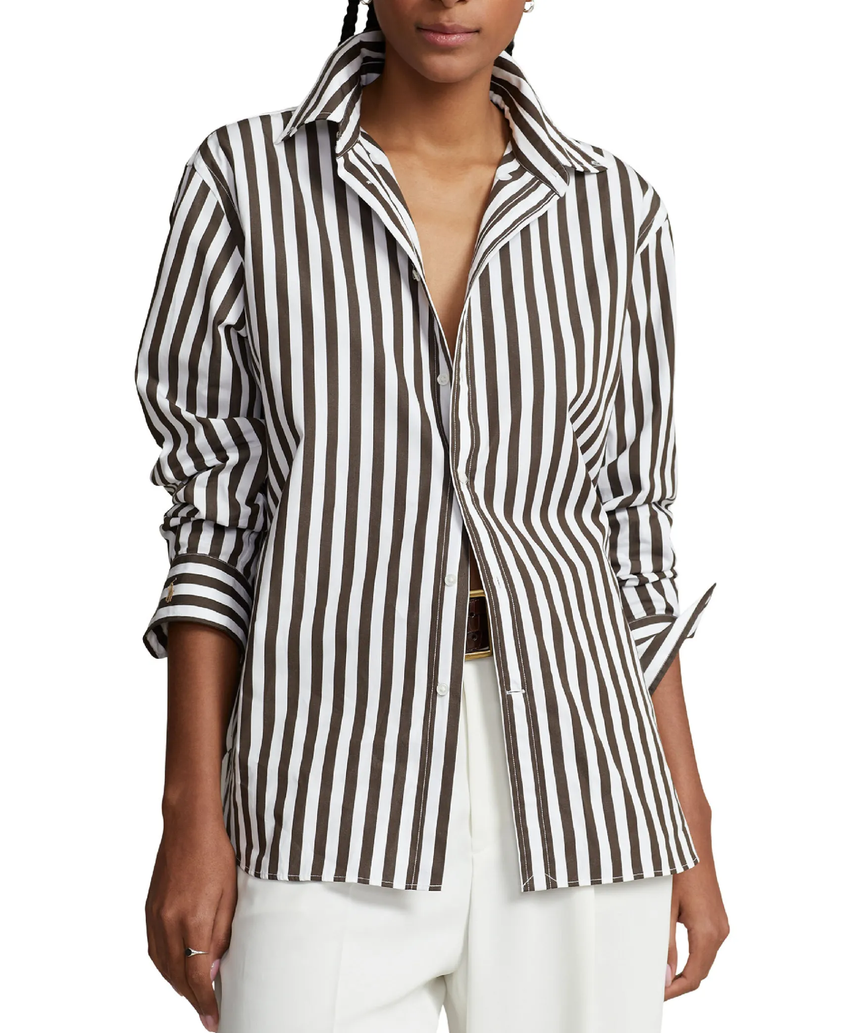 Brun Och Vitrandig Bomullsskjorta Fran Polo Ralph Lauren. Skuren For En Avslappnad Siluett Och Accentueras Av Deras Signaturbroderade Ponny Pa Hoger Mudd. Button-Down Krage. Knappsla. Tillverkad I Bomull.