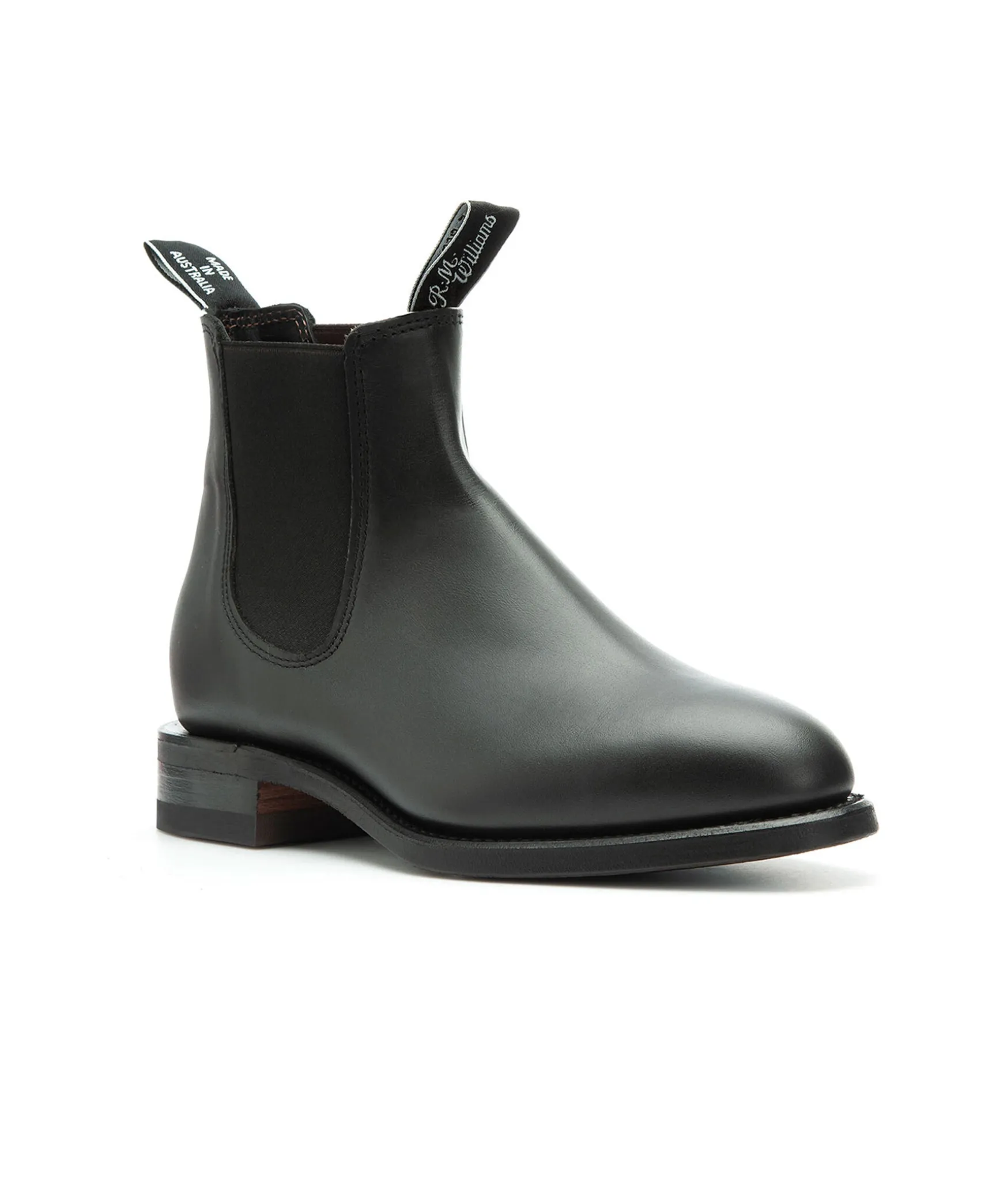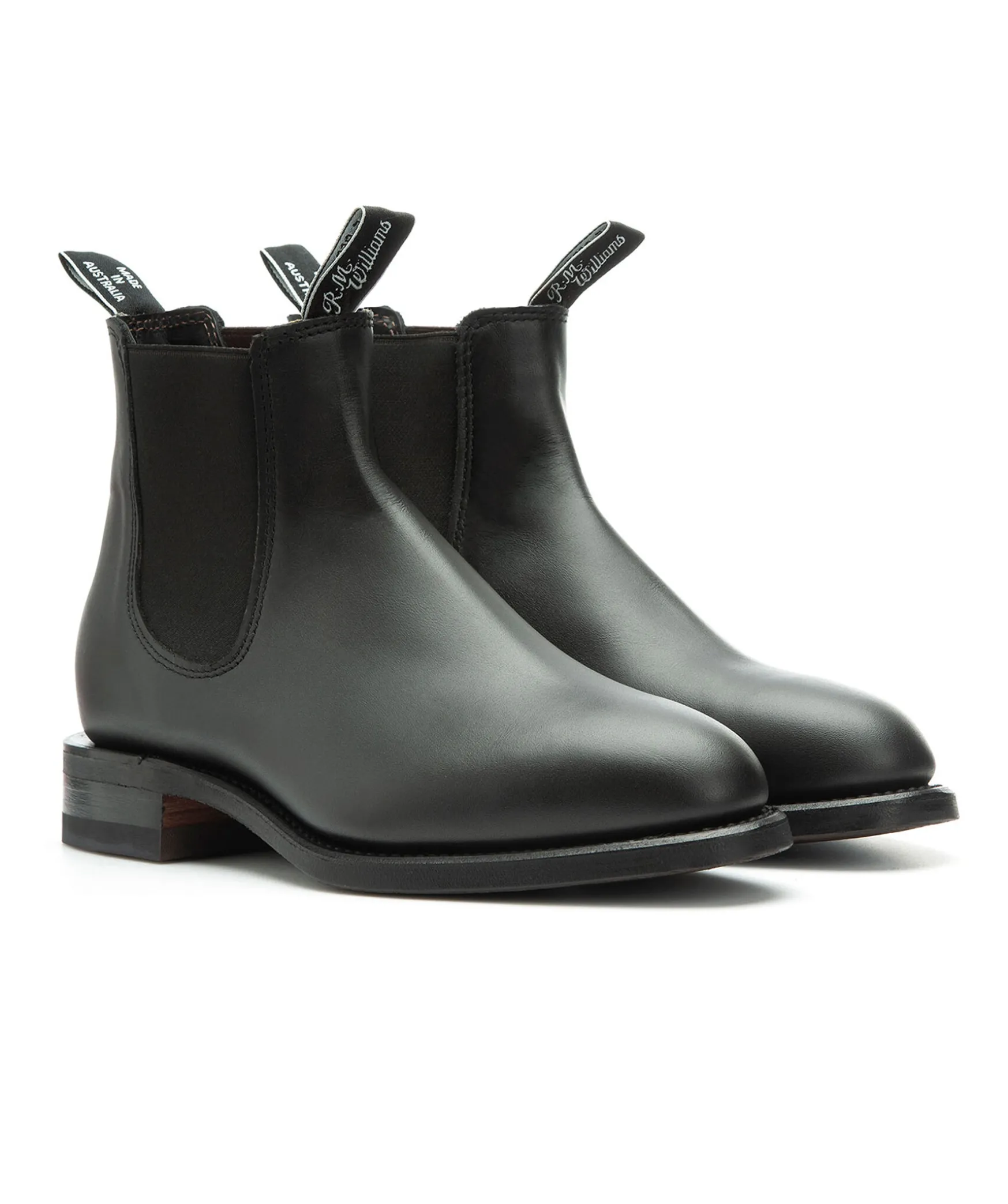 Handgjorda Boots Fran R.M. Williams Med Elastiska Sidopaneler. Elegant Silhuett Med Avsmalnande Framdel. Tillverkade Av Ett Stycke Yearling-Lader.