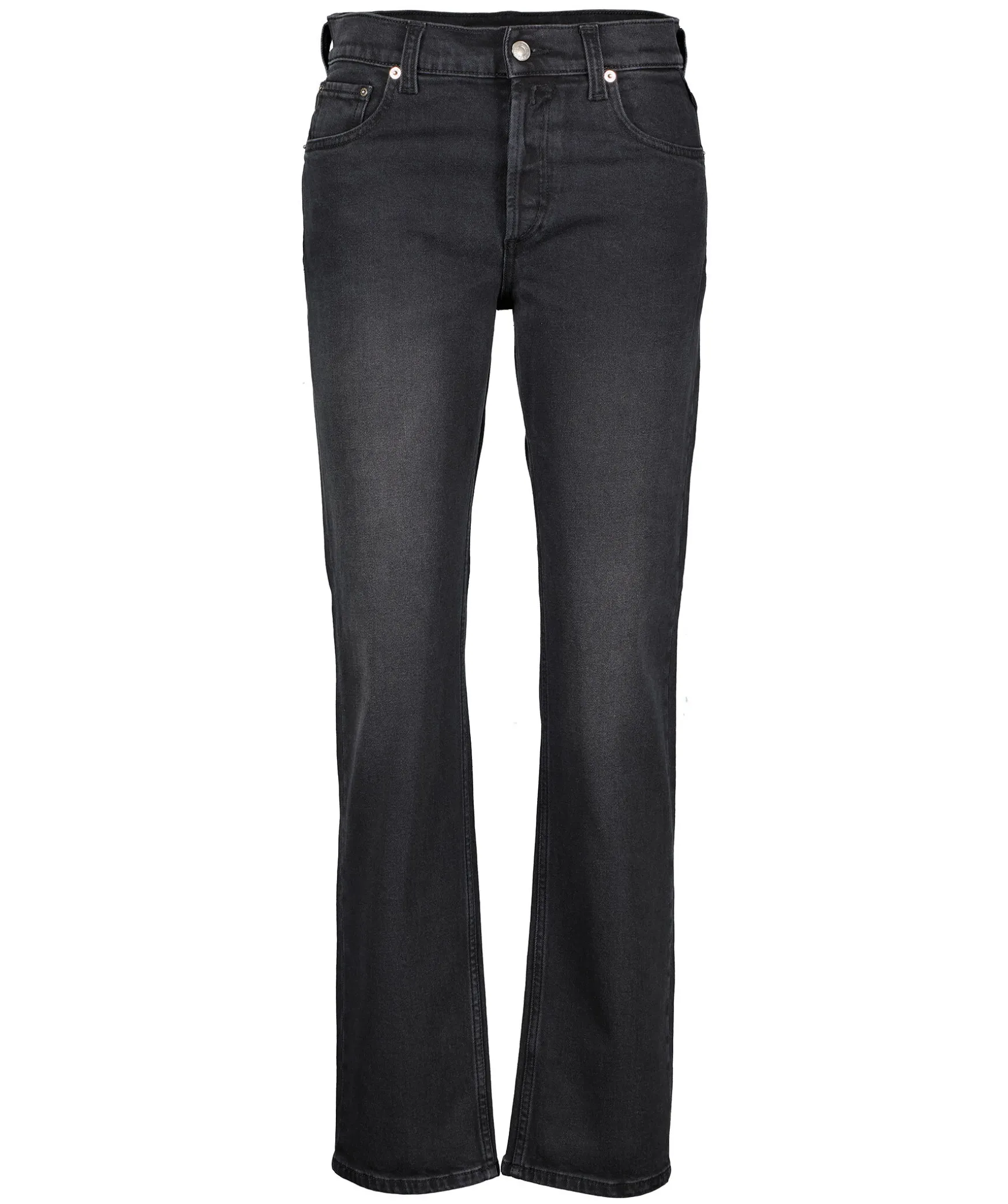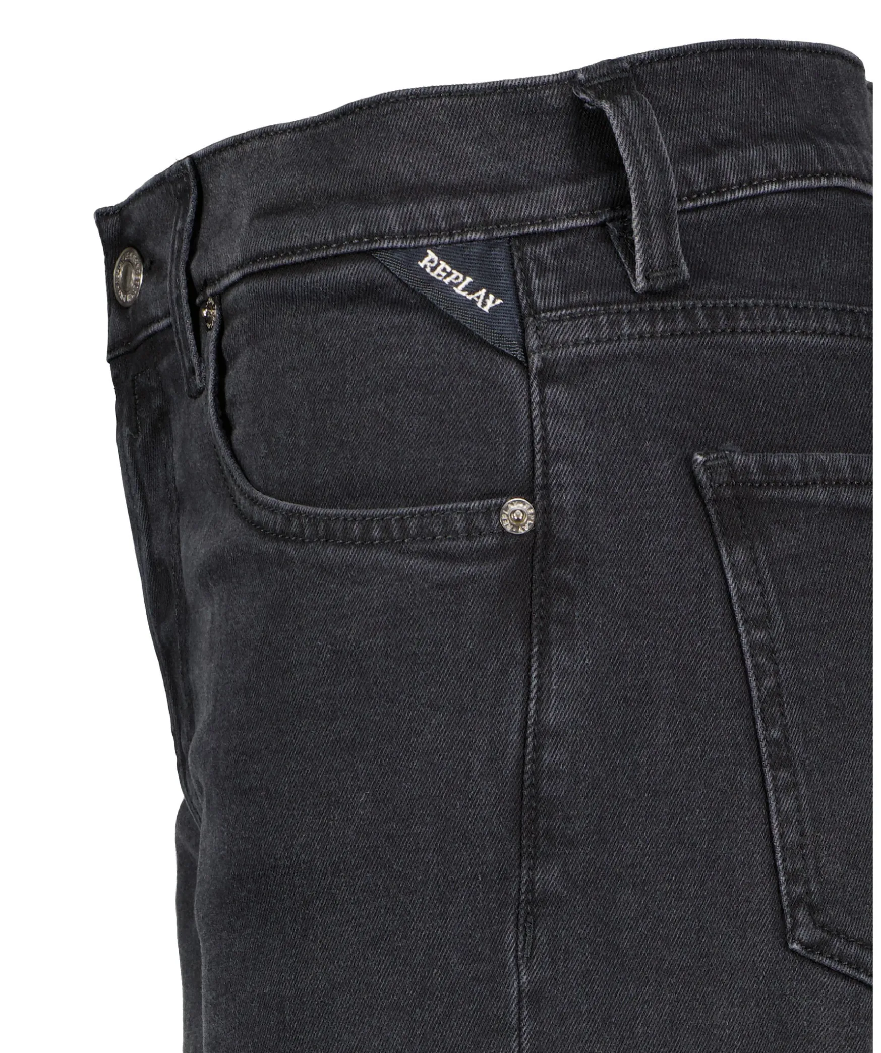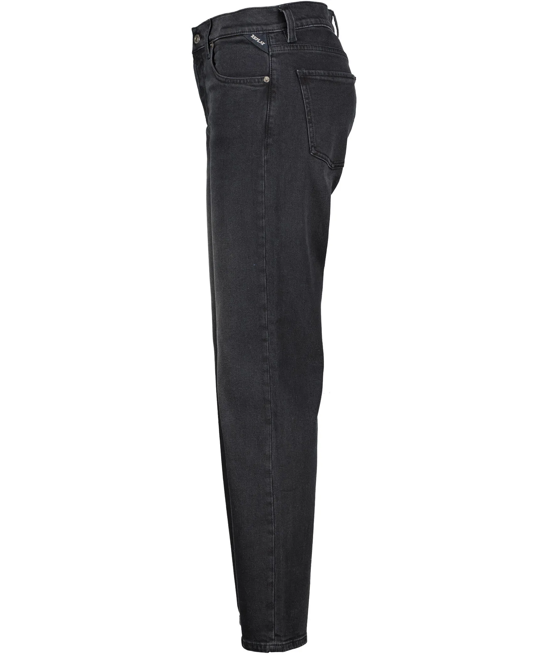 Svarta Hogmidjade Jeans Fran Replay. Rak Passform Med Raka Ben. Med Vintage Passform Ar Plagget Tillverkat Av 11 Oz Svart Overfargad Svart Komfortbomullsdenim Med En Mork Tvatton. De Fem Fickorna Kannetecknas Av Enzymbehandlingen. Knappning Med Knappar. Replay Logotyp Pa Ena Bakfickan Och Ena Framfickan.