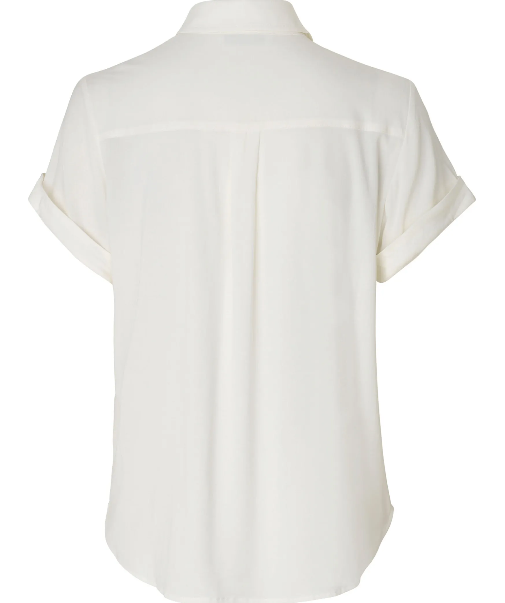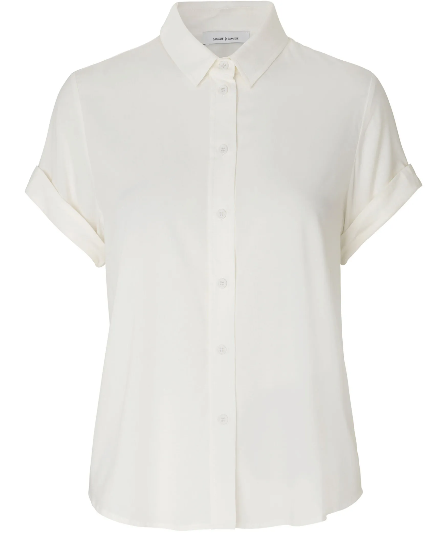 Vit Kortarmad Skjorta Fran Samsoe Samsoe. Stangs Framtill Med Knappar. Spetsig Krage. Uppvikta Armar. Tillverkad I Viskos Blandning.