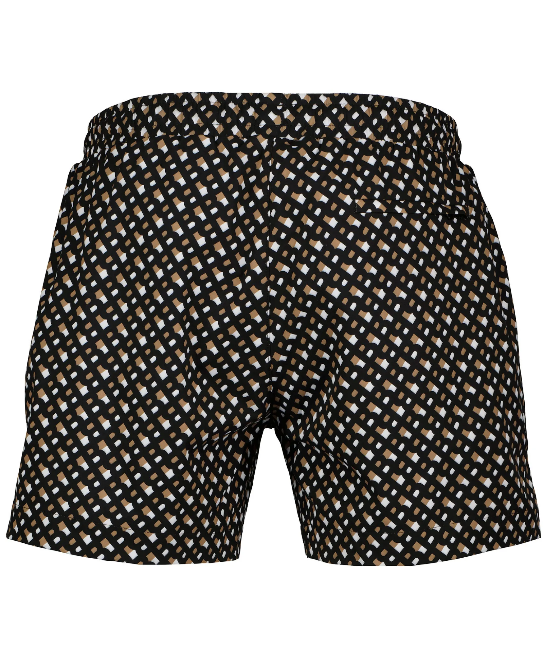 Monogrammonstrade Shorts I Vitt, Brunt Och Svart. Dragsko I Midjan Med Silverfargade Metalldetaljer.