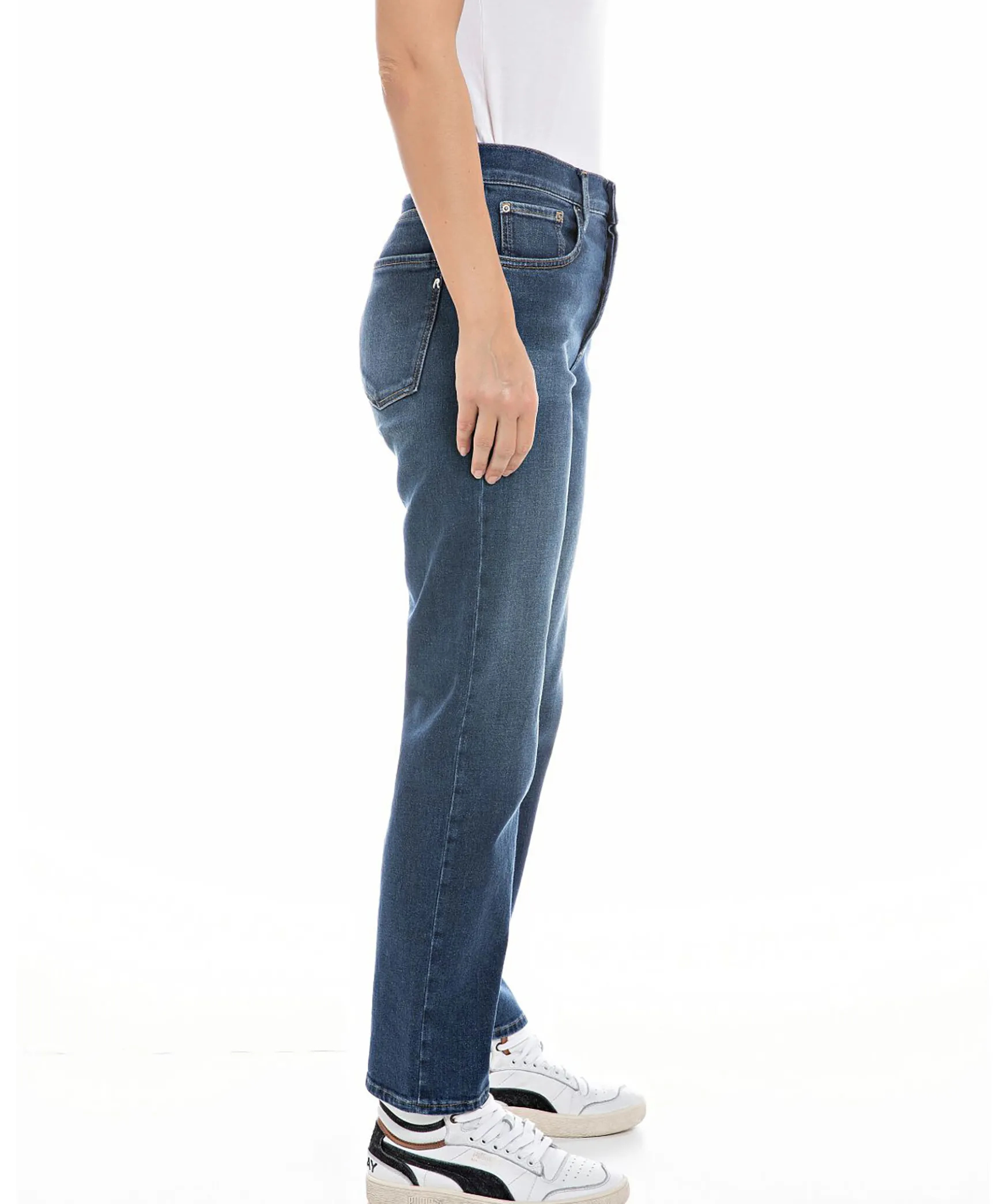 Jeans I Mellanblatvatt I Rak Modell Och Hogmidja Fran Replay. Jeansbyxan Ar I Femficksmodell. Plaggets Tyg Ar Fargat I En Naturlig Indigo Farg. Dragkedja Och Knappgylf. Innebenslangd Ar 29 Cm I Storlek 27’30. Midjematt: 27 Cm I Storlek 27’30.