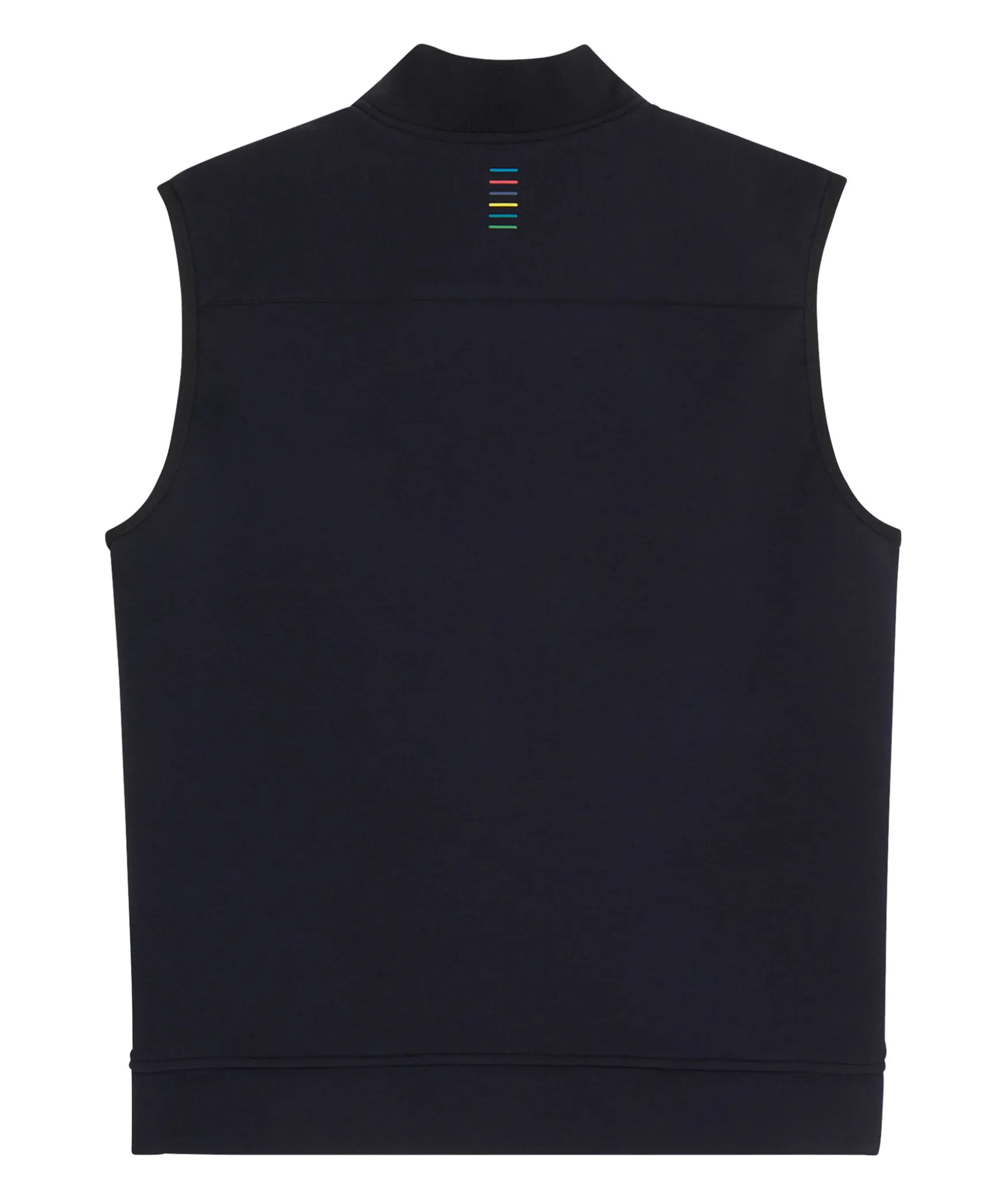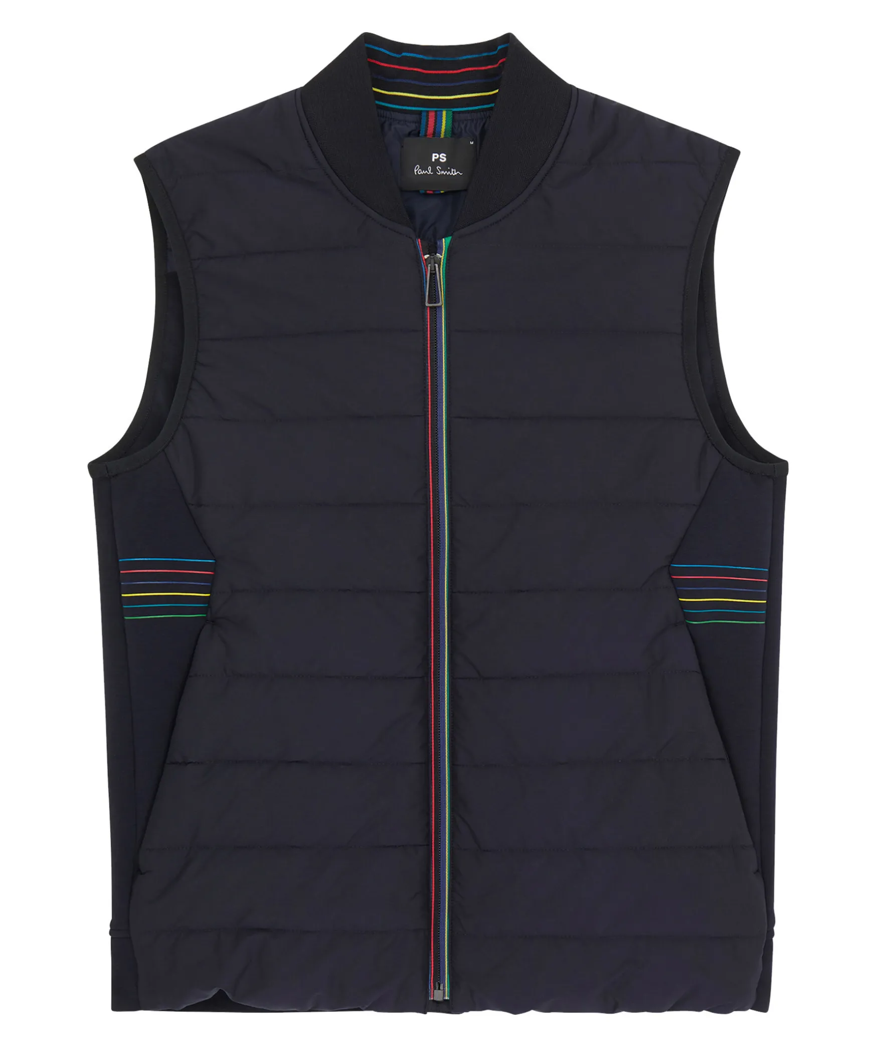 Marinbla Vast Med Polyester Fyllning Pa Framsidan For Extra Varme Fran Ps Paul Smith. Tonstickad Krage Och Baksida I Jerseytyg. Dragkedja Fram Med Fargglada Rander Och Tunna Fargglada Rander I Sidorna. Tva Framfickor Med Dold Dragkedja Och En Innerficka.