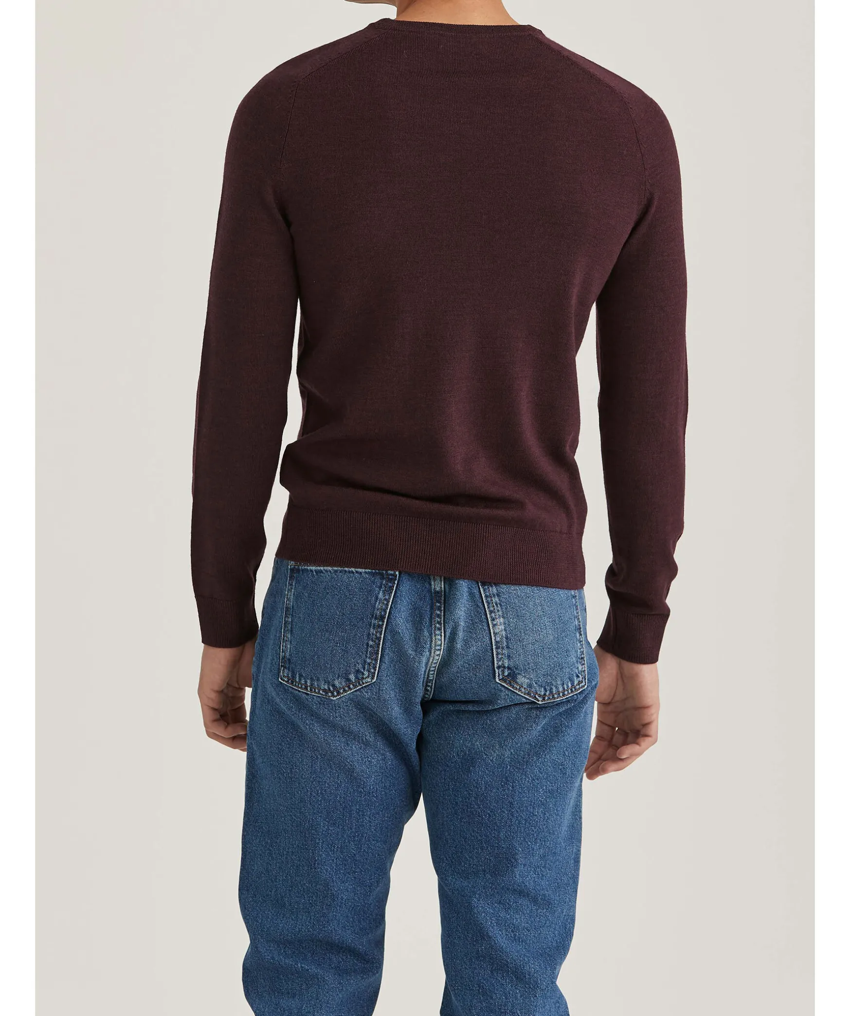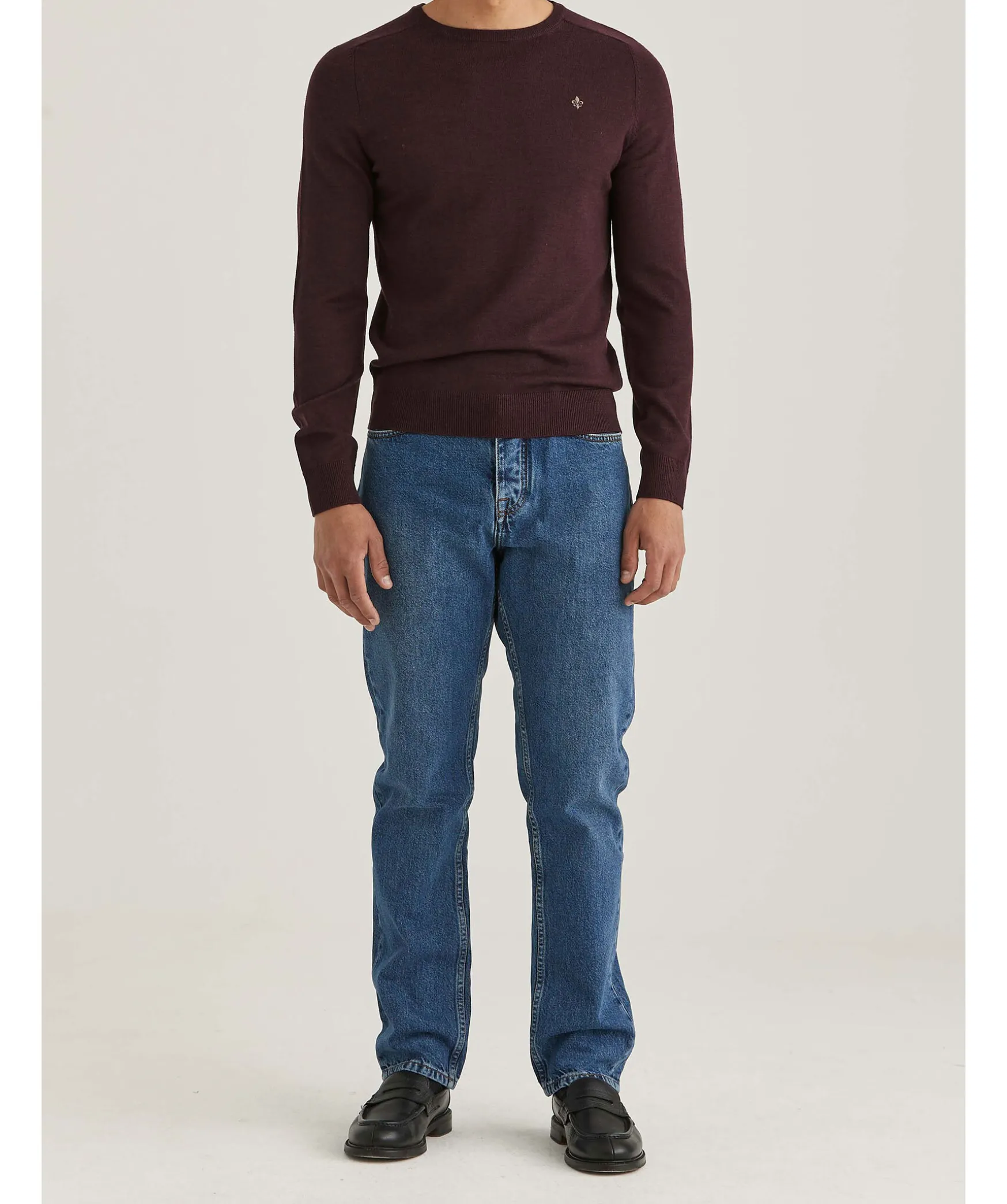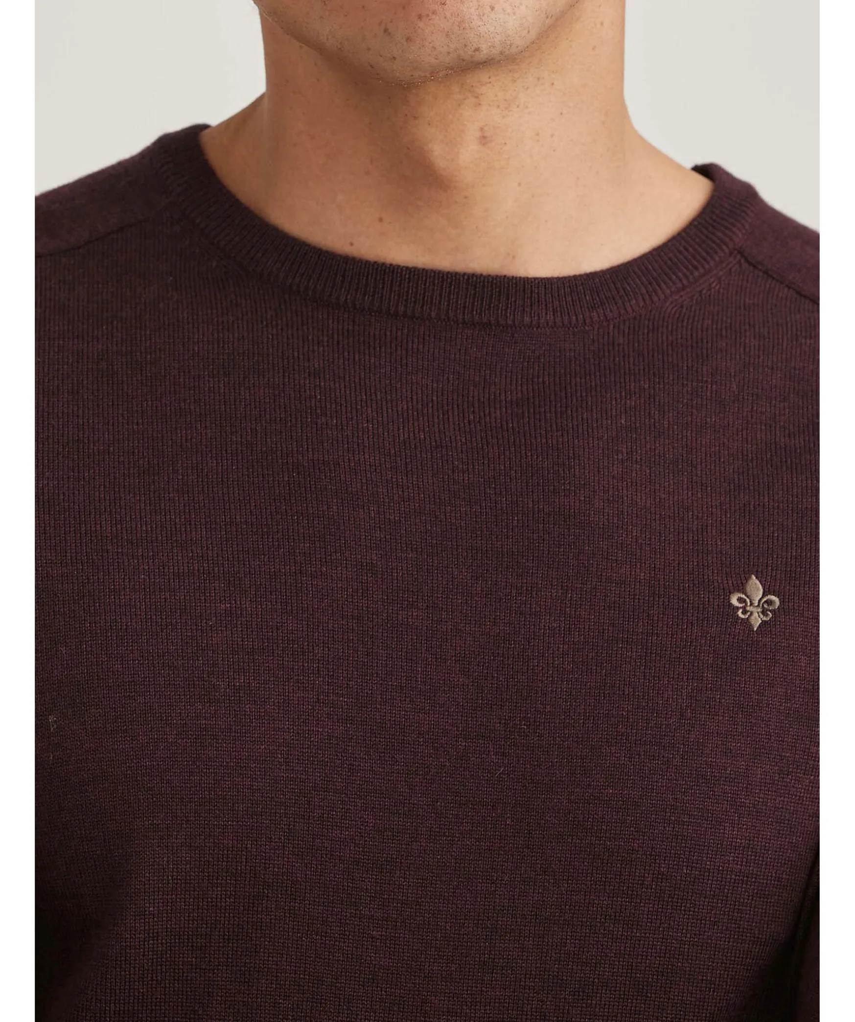 Vinrod Finstickad Pullover Fran Morris. Broderad Fransk Lilja Pa Brostet Och Ribbstickade Muddar. Gjord I 100% Merinoull. Smal Passform.