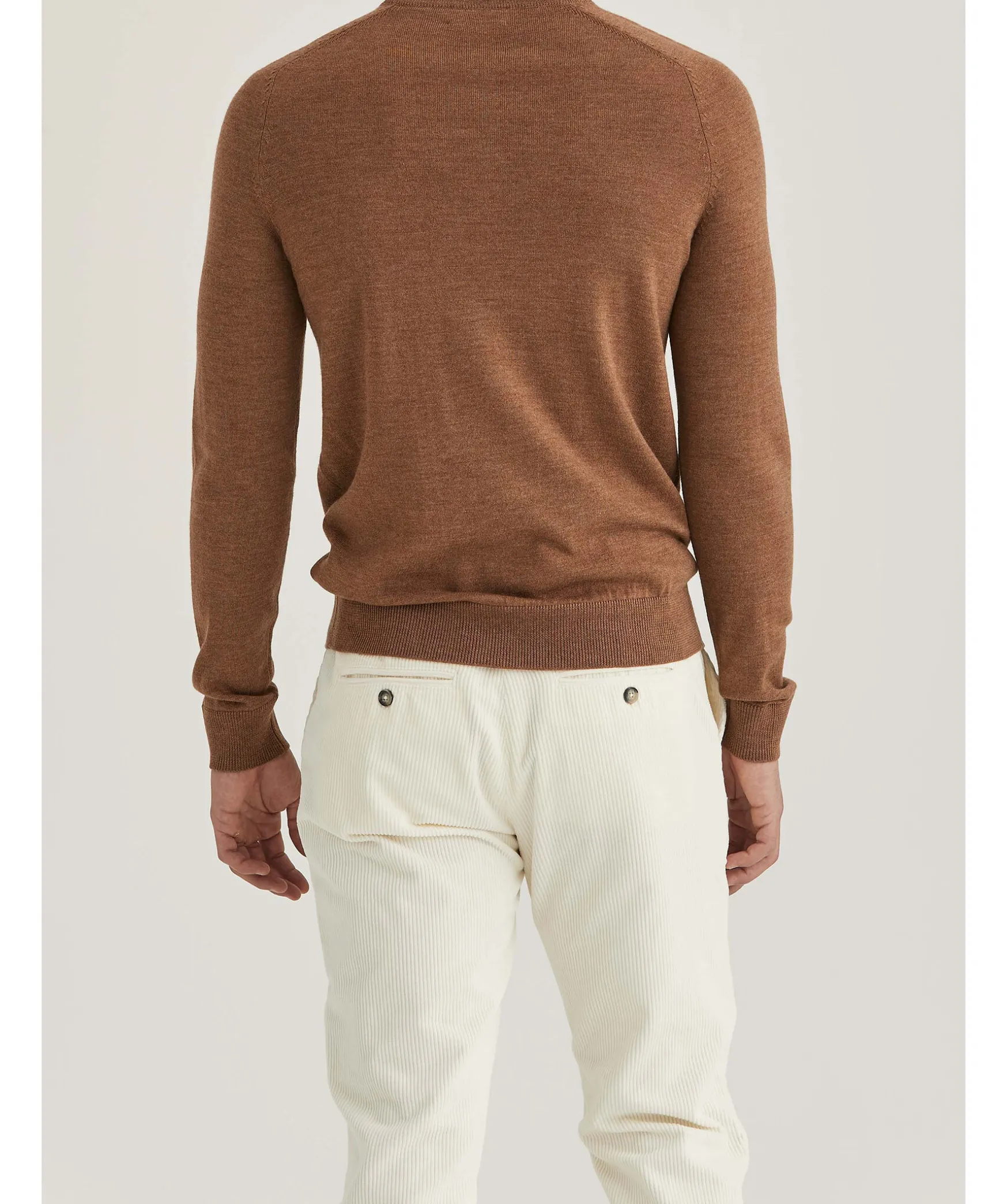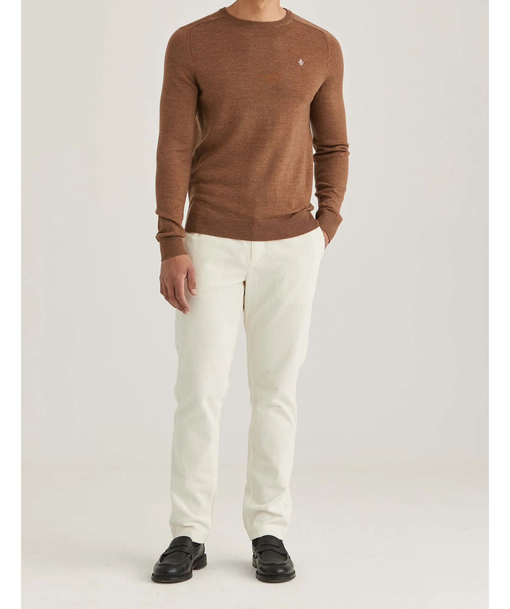 Beige Finstickad Pullover Fran Morris. Broderad Fransk Lilja Pa Brostet Och Ribbstickade Muddar. Gjord I 100% Merinoull. Smal Passform.