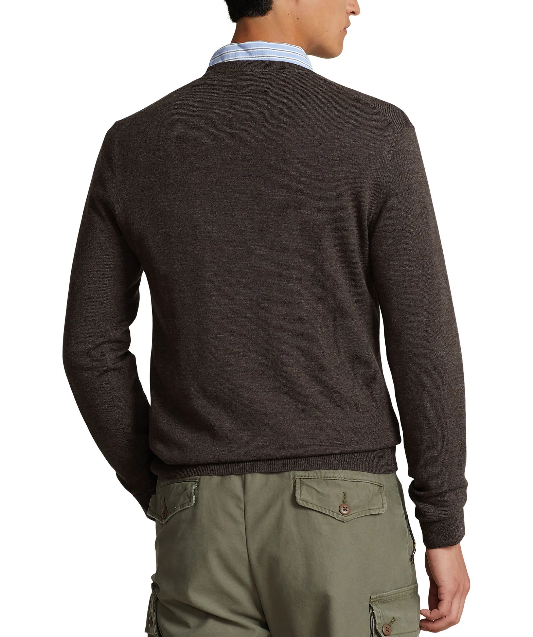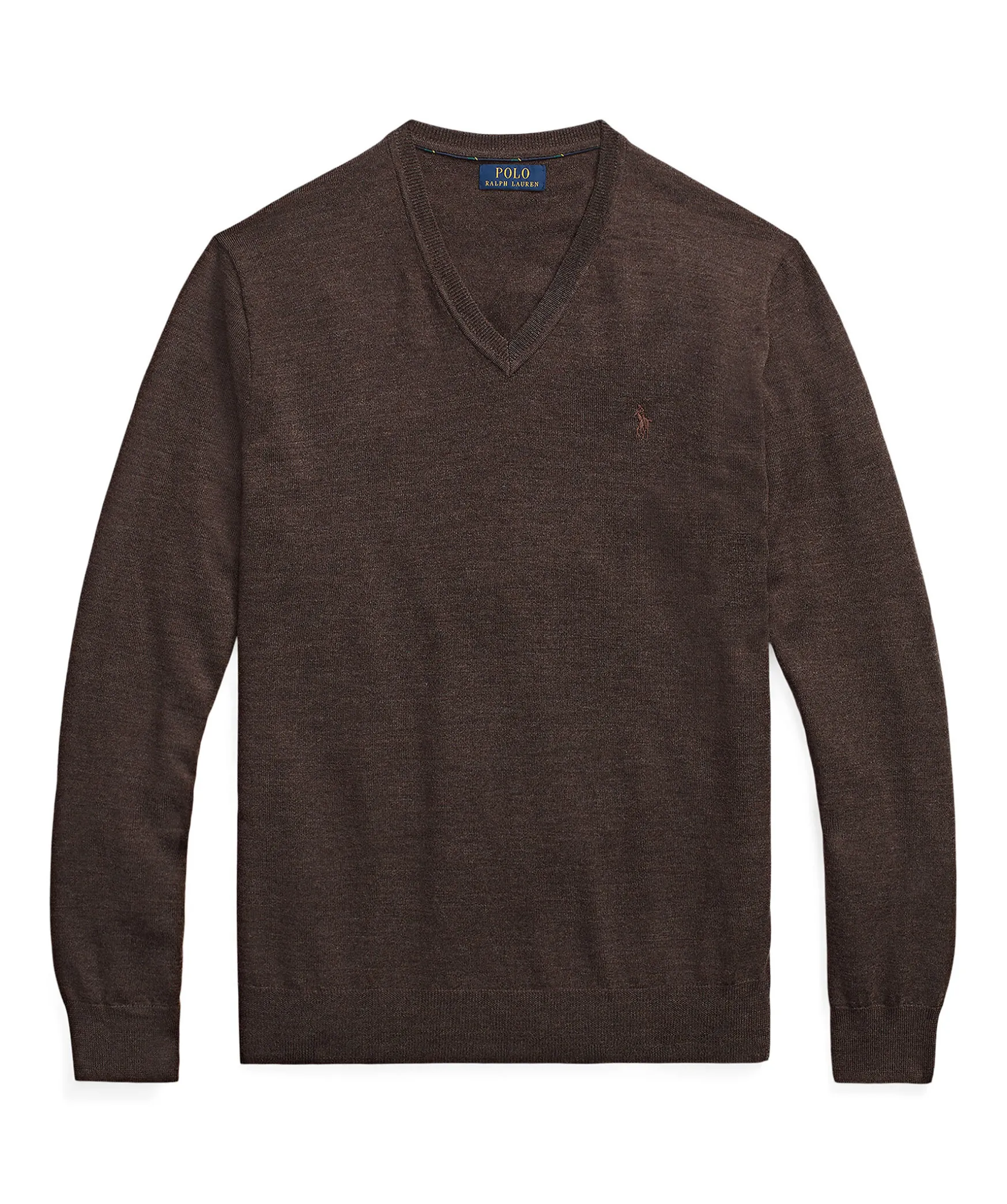 Brun, Finstickad Pullover Fran Polo Ralph Lauren. Tillverkad I Merinoull. Broderad Logotyp Pa Brostet, V-Ringning Fram Och Ribbade Muddar I Ringningen, Armslut Och Plaggslut. Slim Fit Passform.