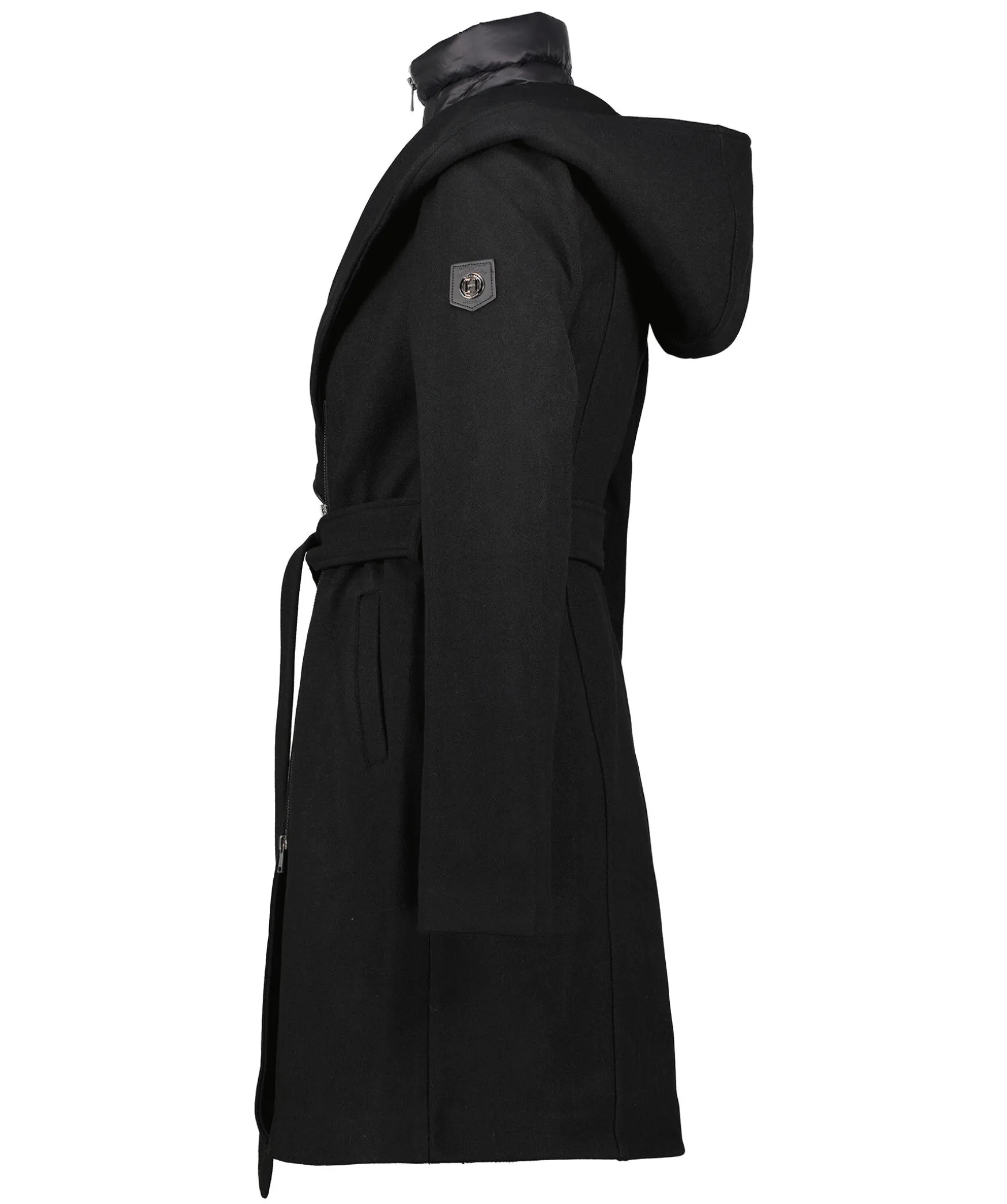 Svart Hybridkappa Med Huva Fran Hollies. Tillverkad I Polyester. Jackan Har Aven Ett Tillhorande, Avtagbart Balte For En Mer Fitted Look. Stangs Med Tva Dragkedjor Framtill. Patch Logotyp Pa Vanster Arm.