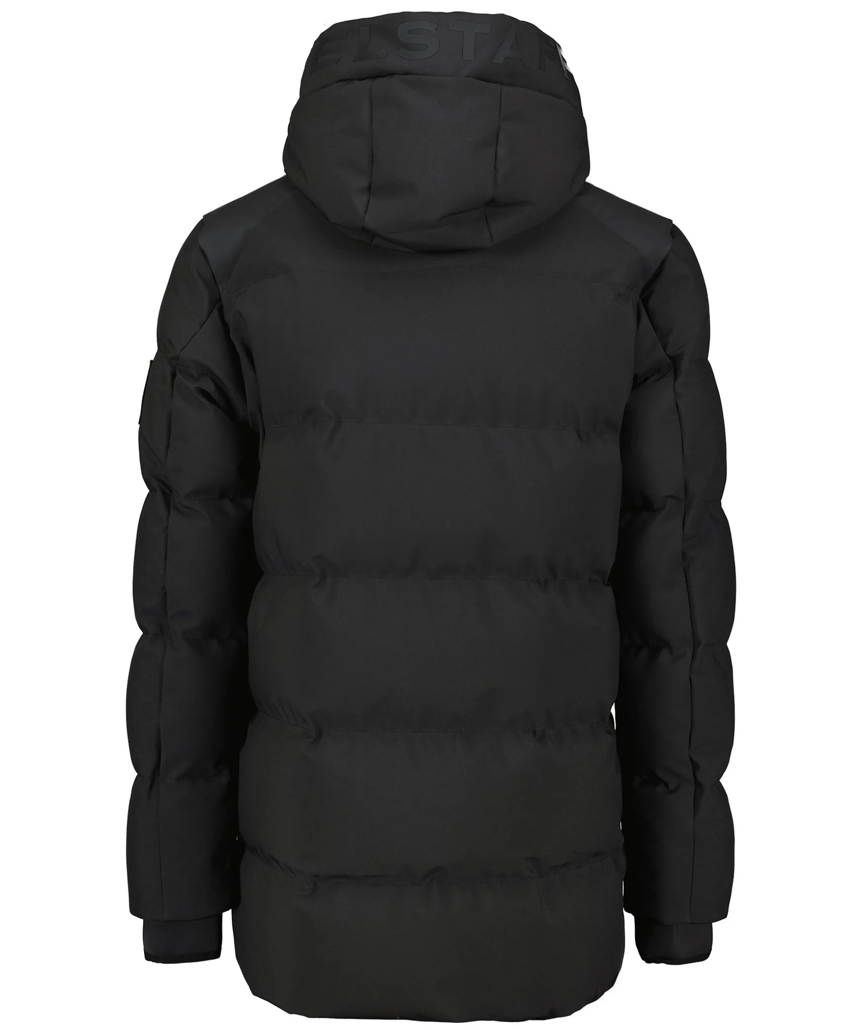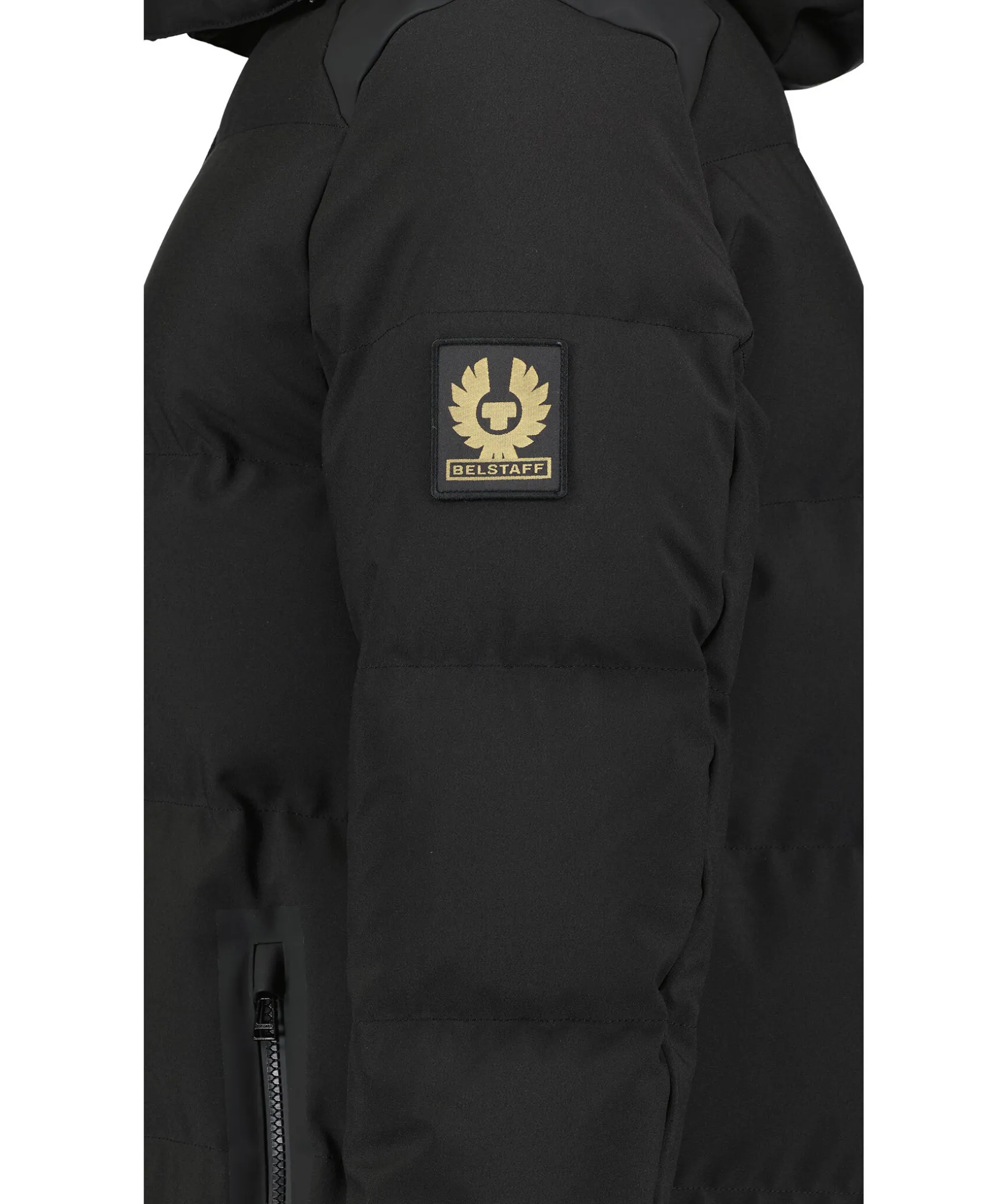Svart Dunjacka Fran Belstaff. Stangs Framtill Med Tvavagsdragkedja. Tva Fickor Framtill Som Stangs Med Dragkedja, Innerficka Som Stangs Med Dragkedja. Patch Med Logotyp Pa Vanster Arm. Avtagbar Luva. Dragsko Vid Jackslut. Elastisk Mudd Med Hal For Tummen Vid Armslut. Band Med Stansad Logotyp Langst Med Dragkedjan.