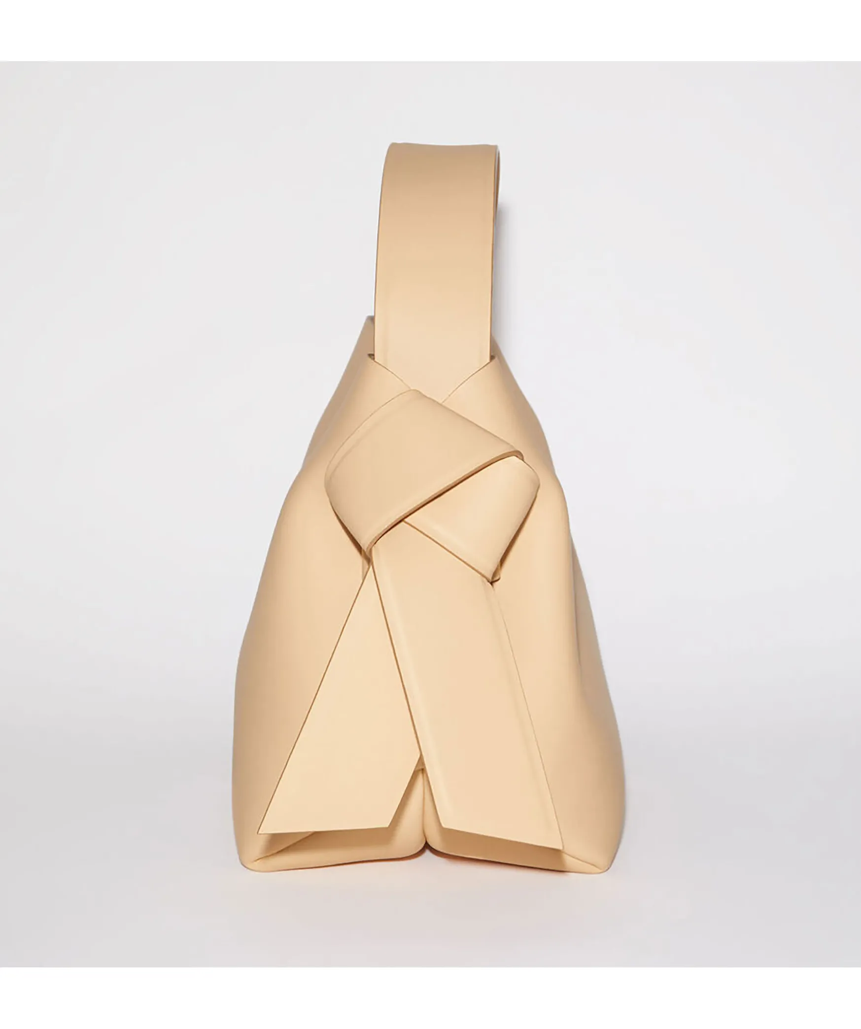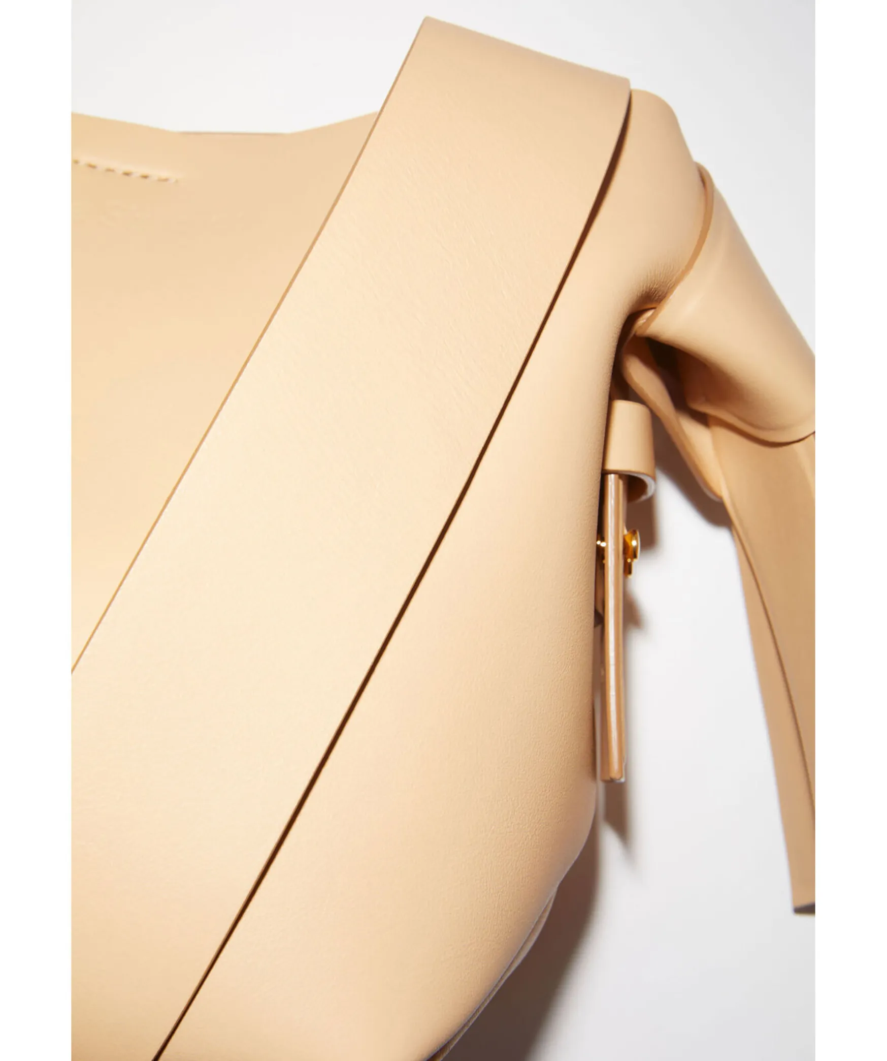 Beige Mini-Axelvaska Fran Acne Studios. Tillverkad Av Lader Och Ar Prydd Med Tvinnade Musubi-Knutar Pa Varje Sida, Inspirerad Av Traditionella Japanska Obi-Bagar. Kompletterad Med Ett Fack Med Dragkedja I Mitten Och En Diskret Magnetisk Stangning. Axelband, Invandig Blixtlasfack Med Markeslina. Praglad Acne Studios Logotyp. Skyddsdammpase Ingar. Gjord I Italien. Matt: 21,5 Cm X 20,5 Cm X 15,5 Cm. Remmatt: 130 Cm Full Langd.