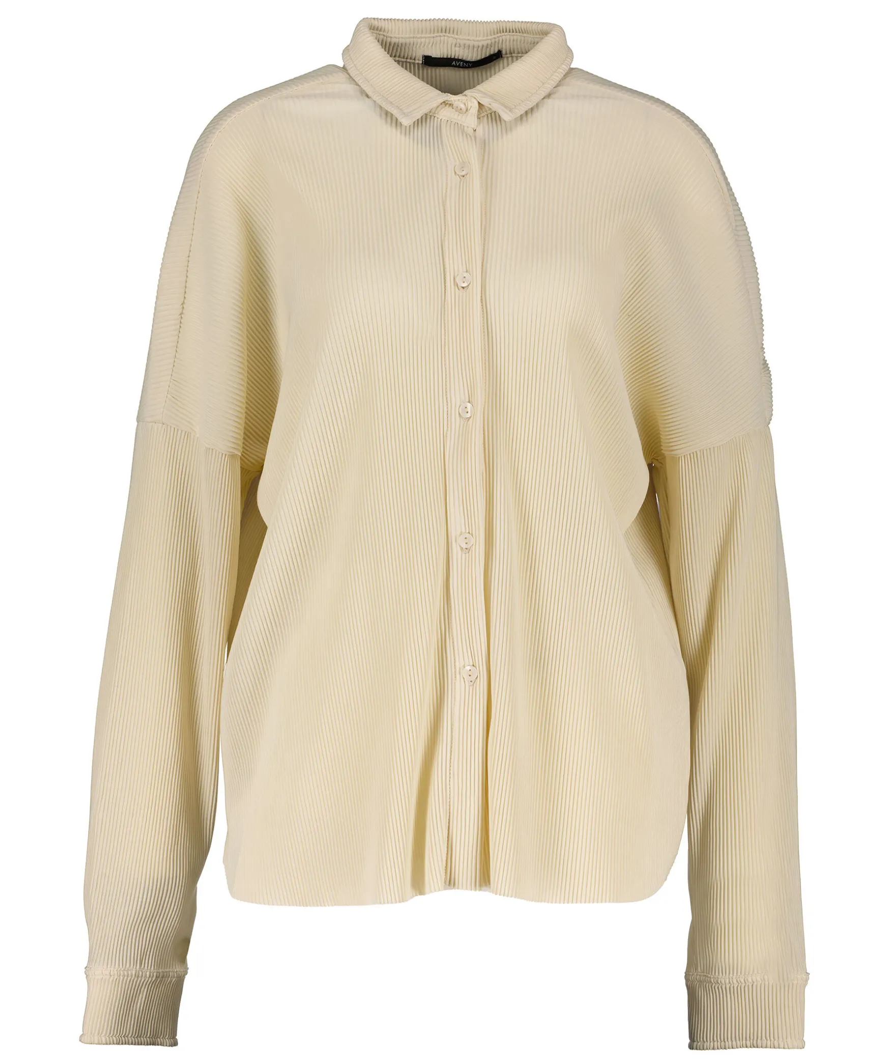 Beige, Ribbad Skjorta Fran Aveny. Tillverkad I 100% Atervunnen Polyester. Perfekt For Var Och Sommar. Stangs Med Knappar I Framtill.