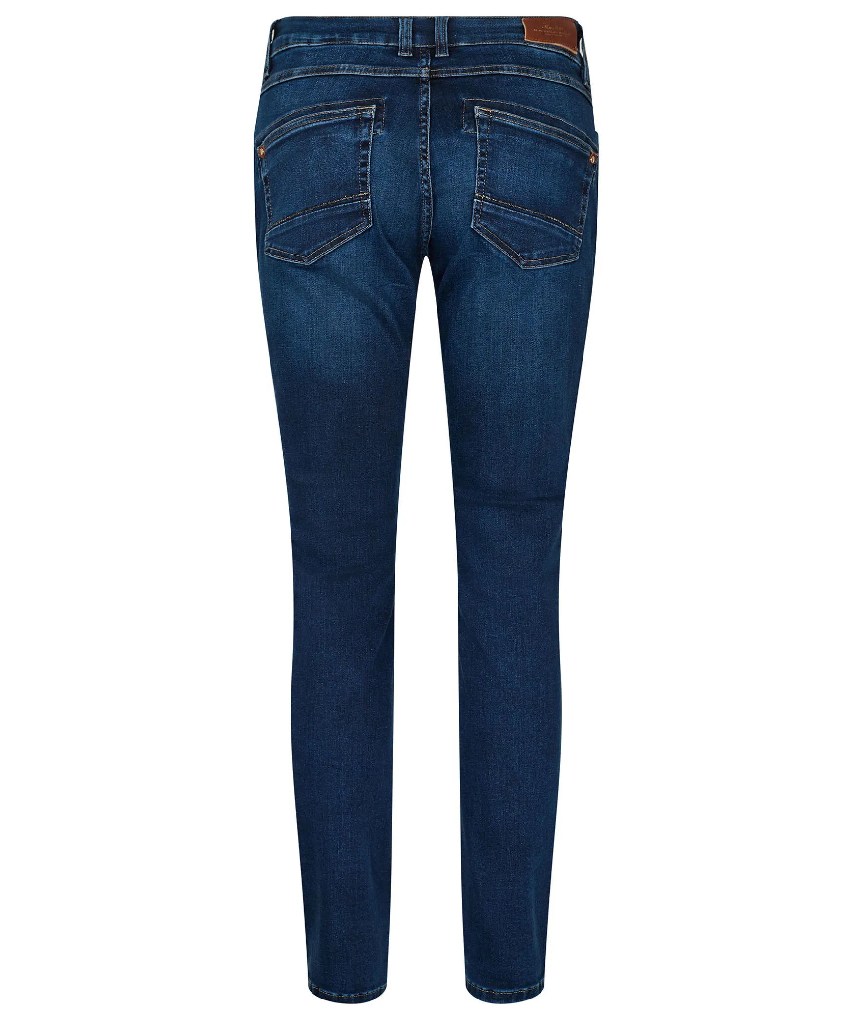 Morkblaa Jeans Fran Mos Mosh. De Ar Gjorda I En Morkbla Tvatt Och Designade Med Avsmalnande Ben, Och En Hog/Medelhog Midja Gjord For Att Sitta Lagt Pa Hoften For En Sval Vridning Eller Dras Upp Pa Plats For Mer Sofistikering. Balteshallor I Midjan. Tillverkad I En Stretchig Bomullsblandning.