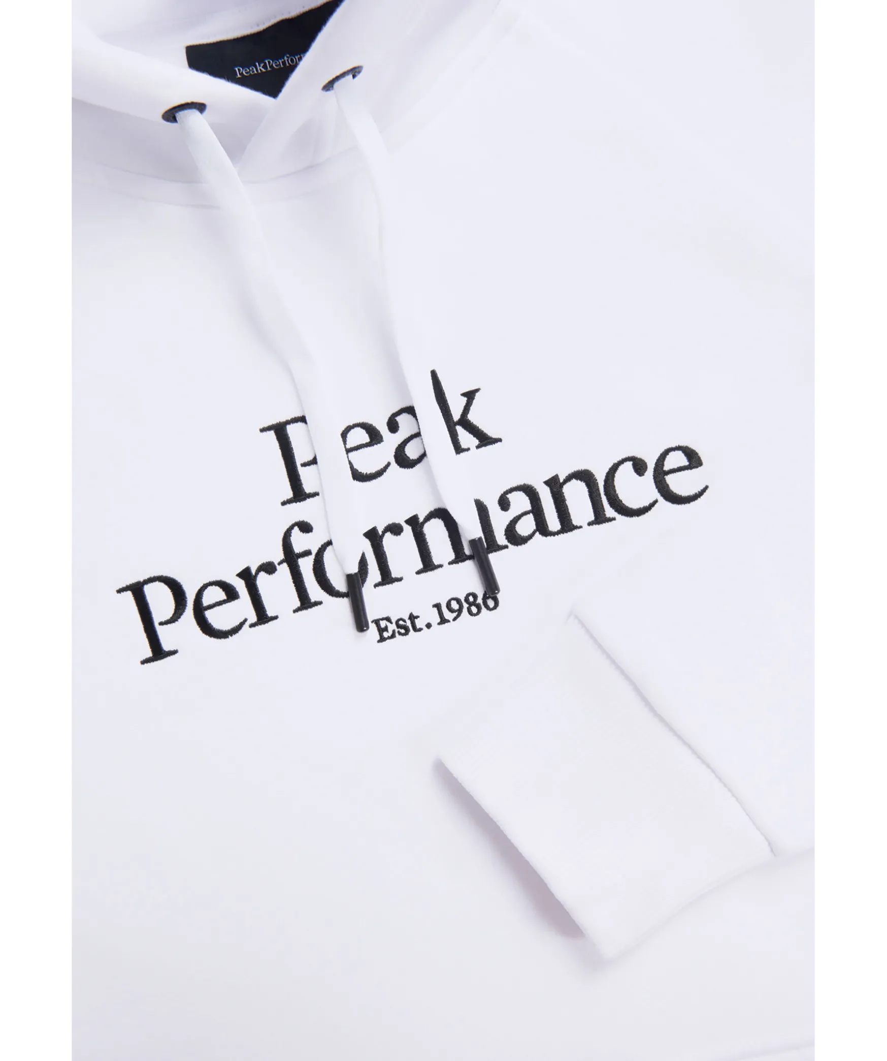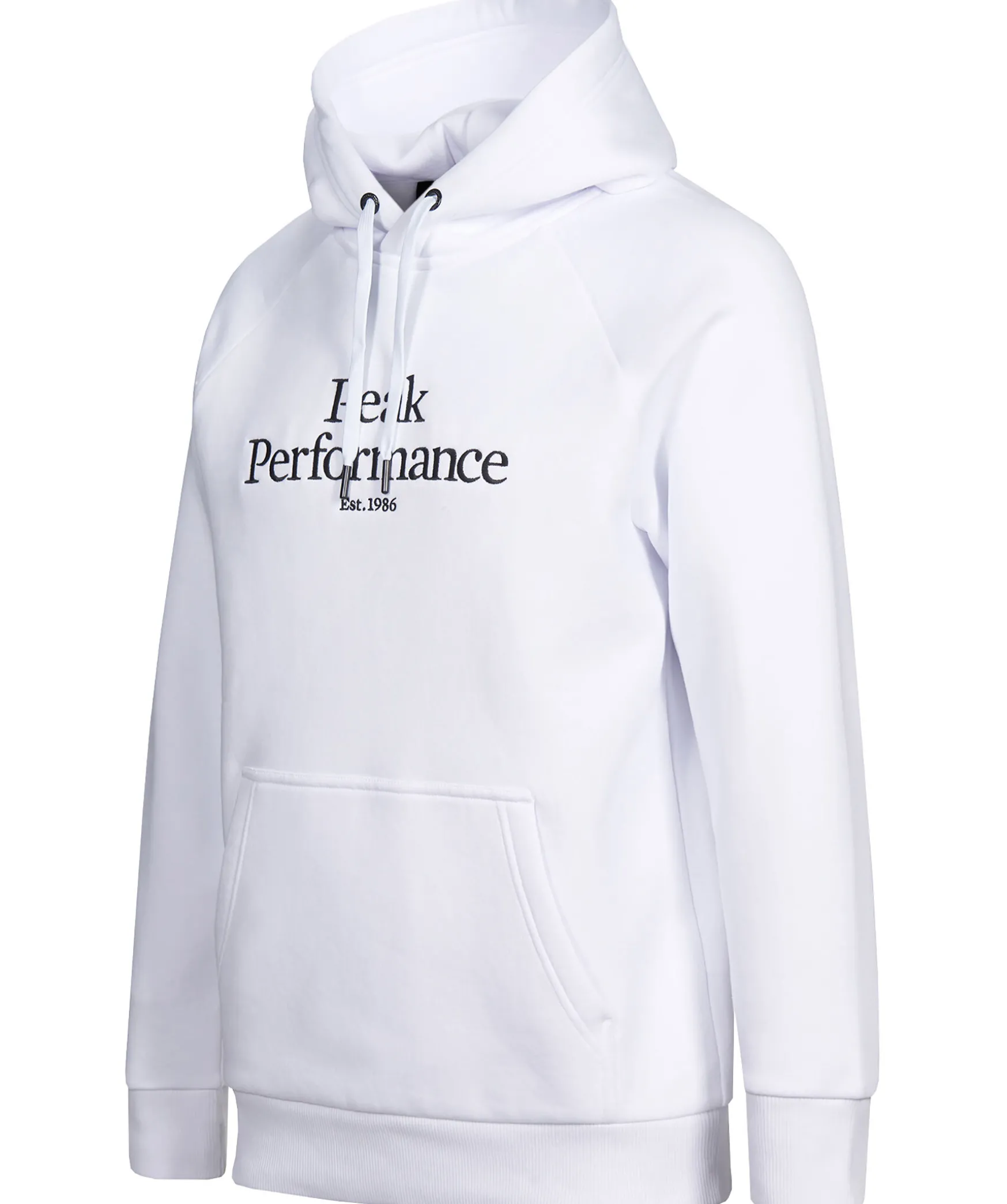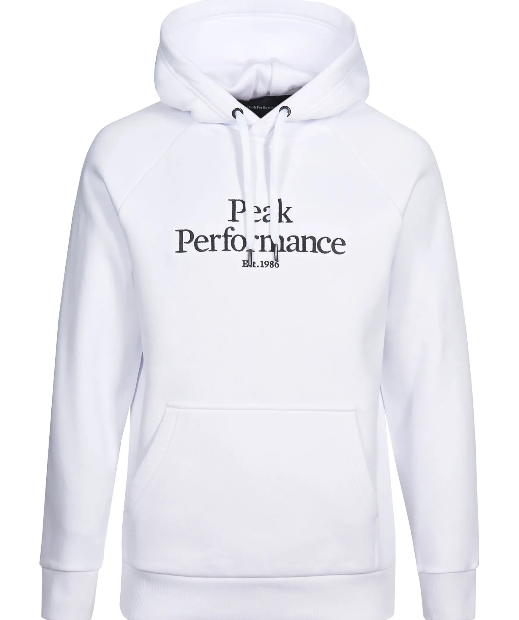 Vit Hoodie Med Snorning I Luvan Fran Peak Performance. Tillverkad I Bomullsmix, Har En Broderad Logga Pa Brostet, Kanguruficka Och Ribbade Muddar.