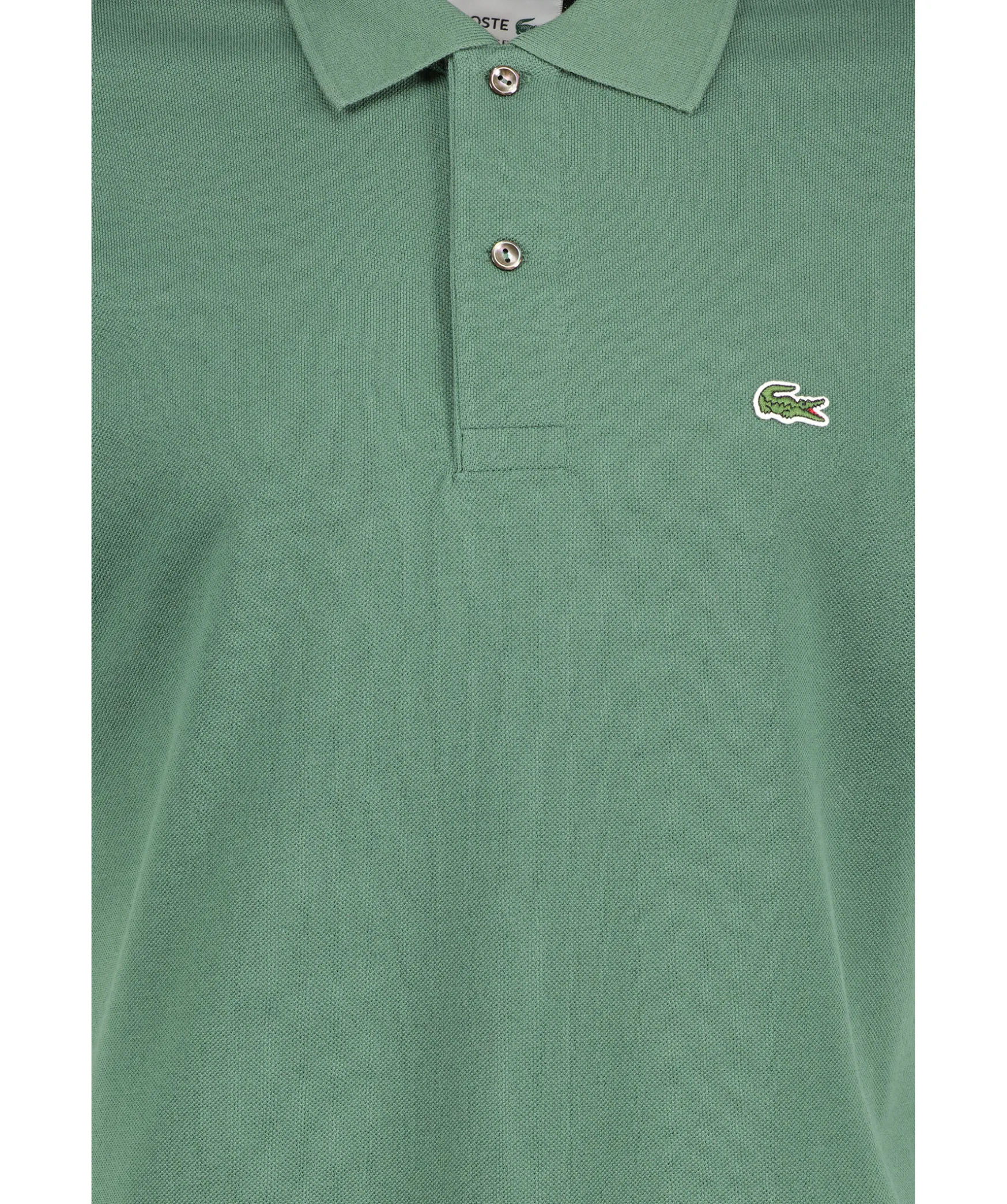 Gron Piketroja Fran Lacoste. Tillverkad I 100% Bomull. Broderad Logotyp Pa Brostet, Tva Knappar Fram, Spetsig Krage Och Korta Slitsar I Sidorna.