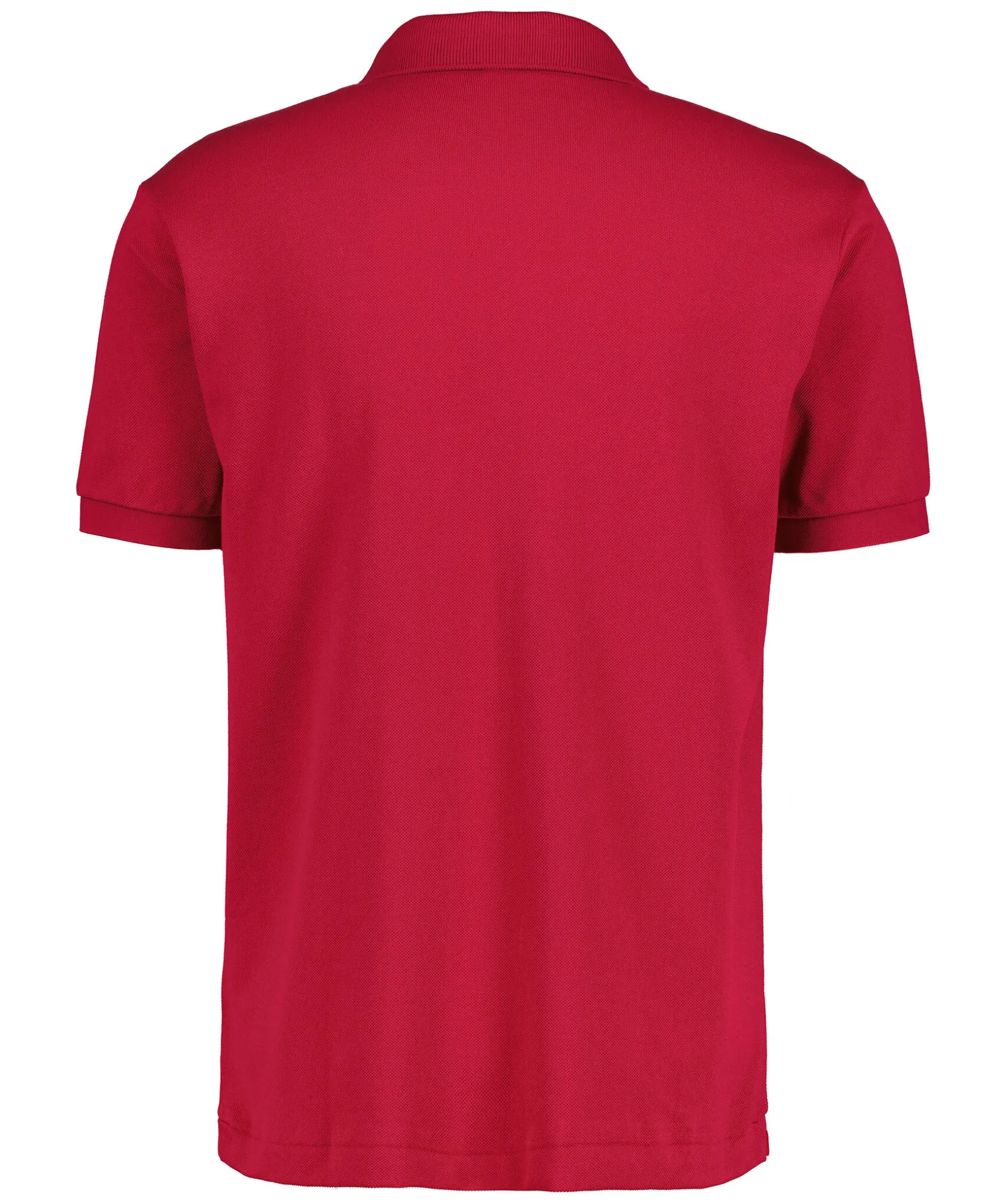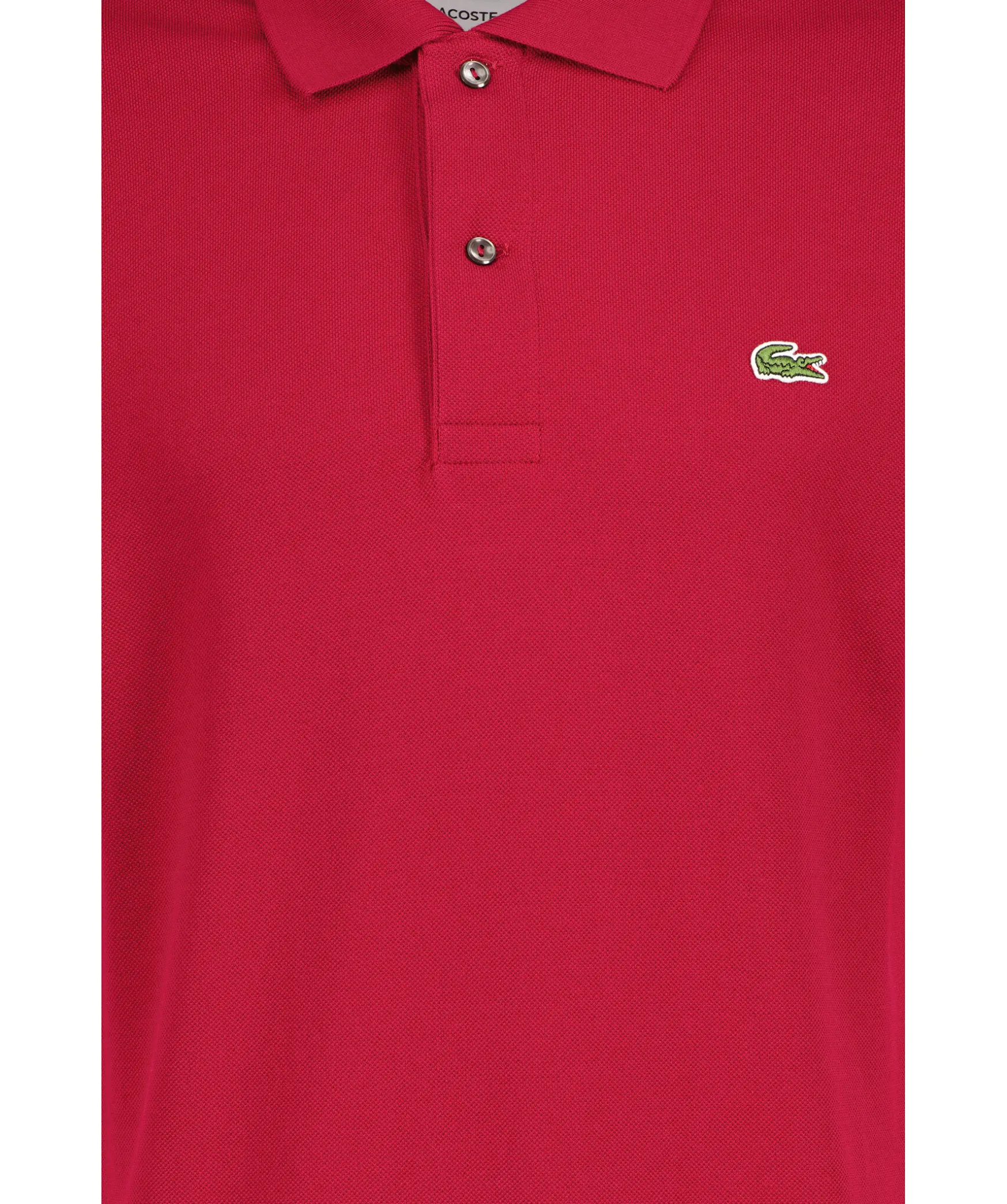 Rod Piketroja Fran Lacoste. Tillverkad I 100% Bomull. Broderad Logotyp Pa Brostet, Tva Knappar Fram, Spetsig Krage Och Korta Slitsar I Sidorna.