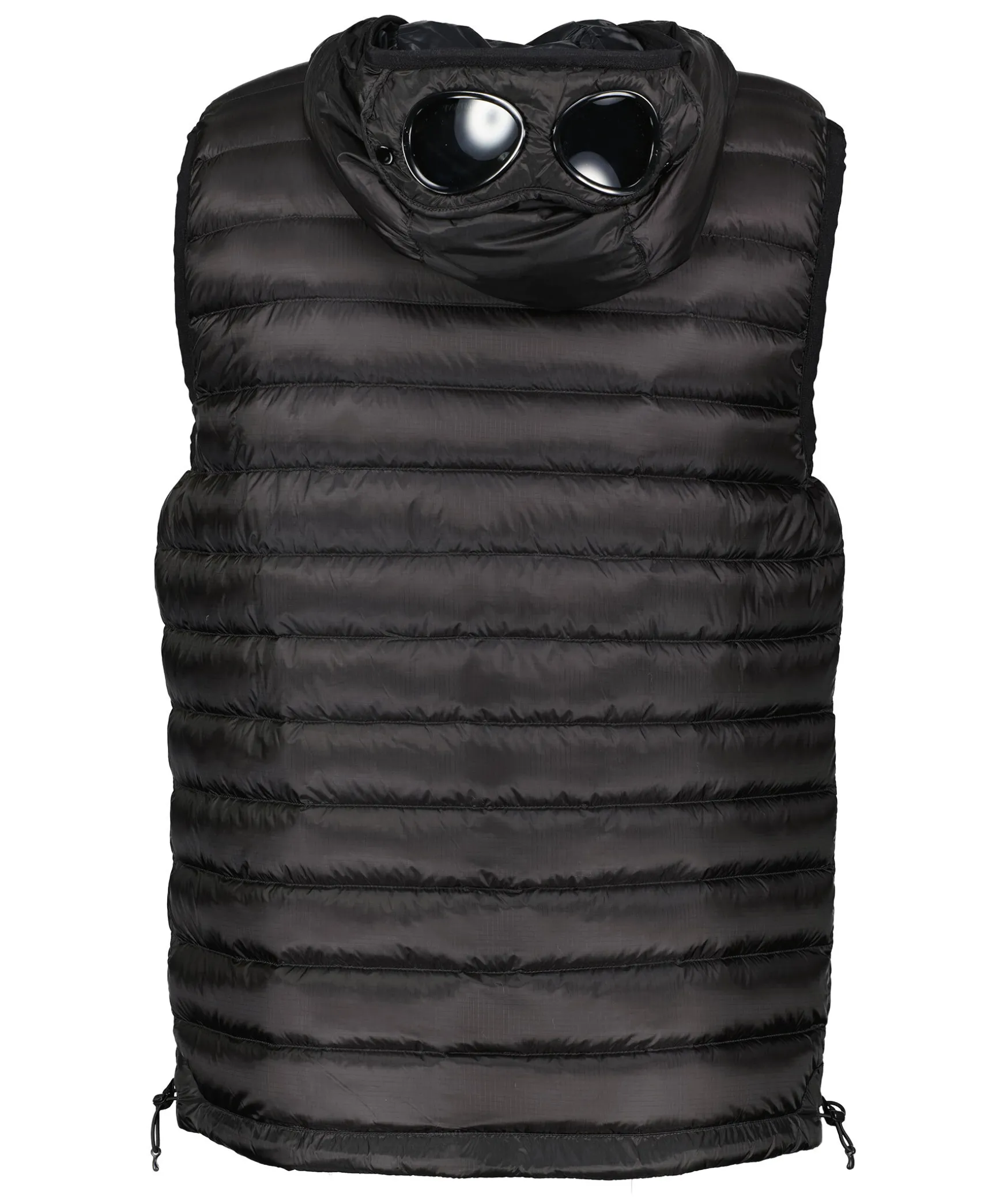 Svart Dunvast Med Luva Fran C.P Company. Ytter- Och Innertyg I 100% Polyamid, Fylld Med 95% Dun Och 5% Fjader. Tva Stora Framfickor Med Dolda Dragkedjor Och En Innerficka. Vasten Stangs Med Tvavagsdragkedja. Dragsko I Plaggslut Och Hals. Luvan Har Svarta Goggles Och Kan Knappas Hela Vagen Med Tryckknappar.