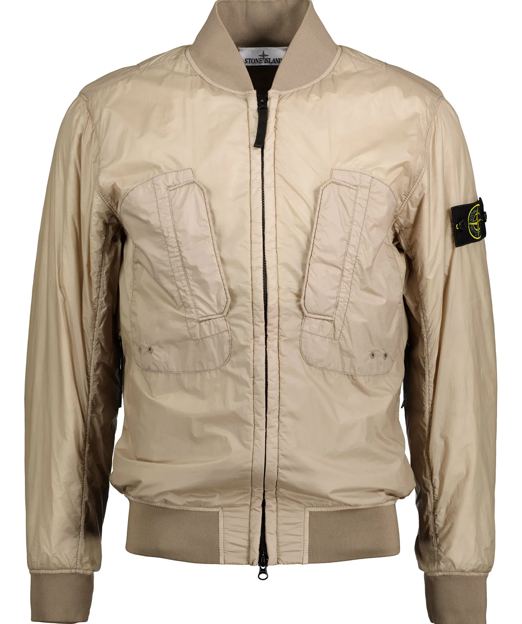 Beige Bomberjacka Fran Stone Island. Tva Brostfickor Med Lock Som Stangs Med En Tryckknapp. Stangs Framtill Med Svart Tvavagsdragkedja. Avtagbar Patch Med Logotyp Pa Vanster Arm. Ribbad Mudd I Krage, Armslut Och Plaggslut. Tillverkad I Ett Hallbart Tyg Som Skyddar Mot Vind.