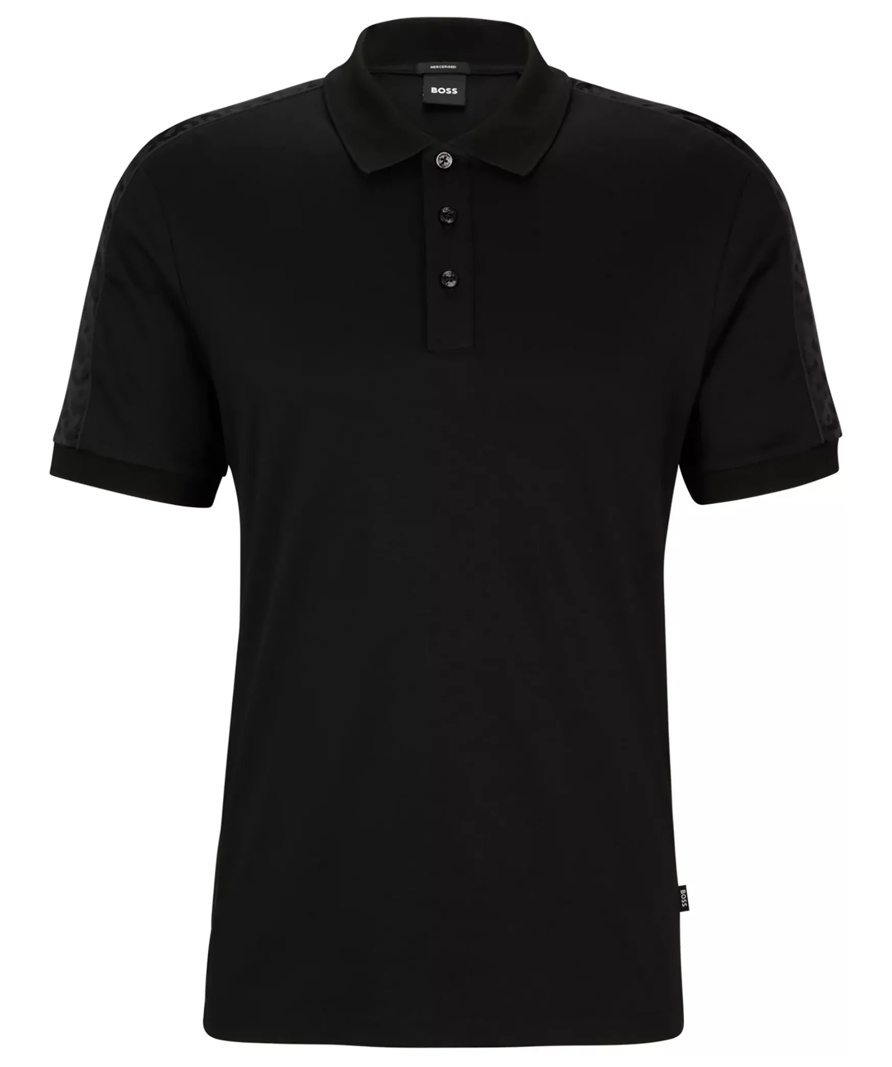 Svart Kortarmad Piketroja Fran Boss Black. Denna Moderna Piketroja Har Tonala Monogramdetaljer Pa Armarna Och Ar Tillverkad I Ren Bomull Som Har Merceriserats For Okad Mjukhet. Den Vanliga Passformen Ger En Enkel Siluett.